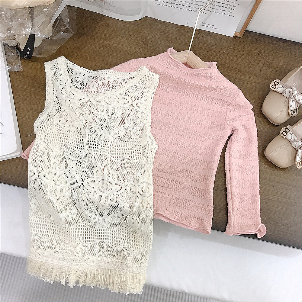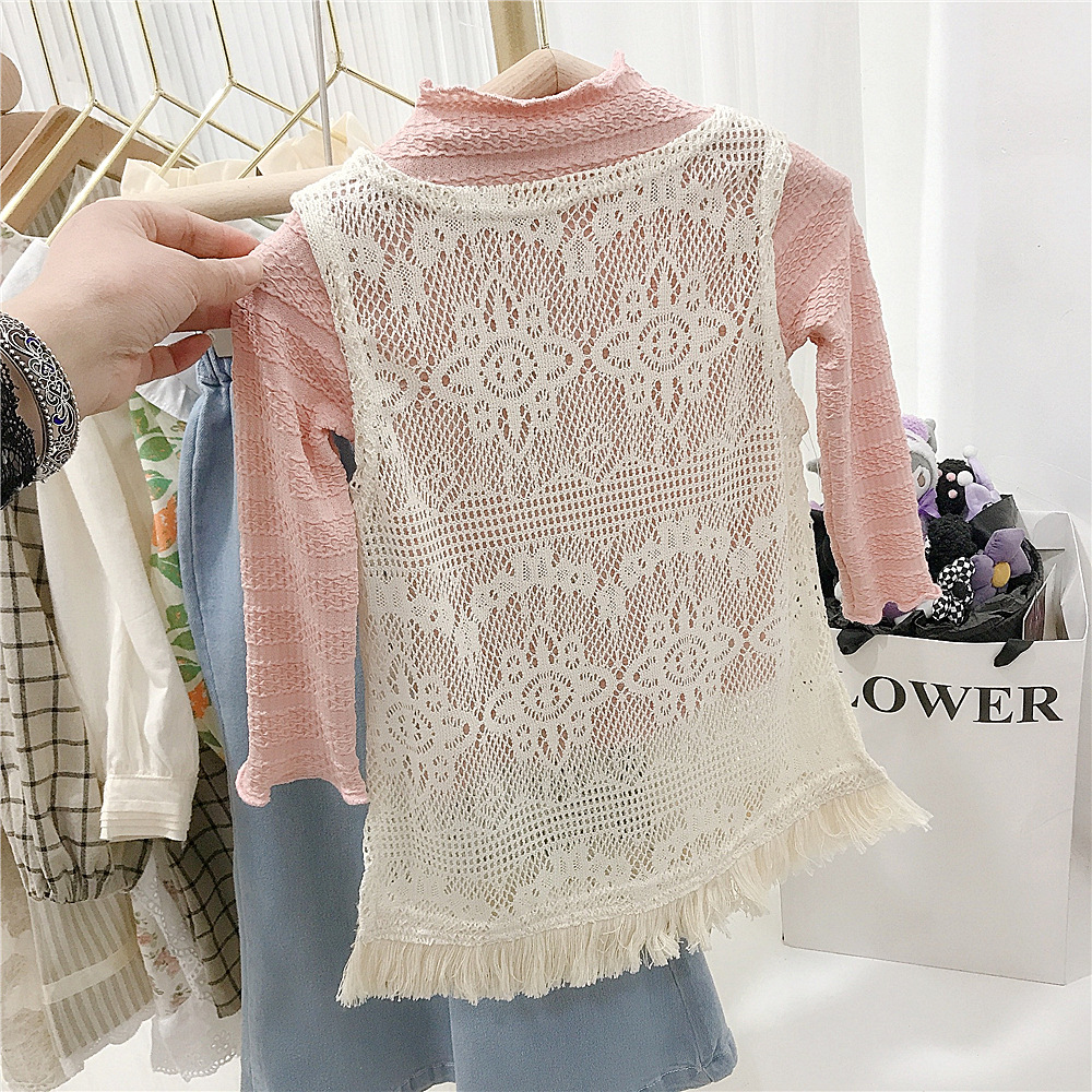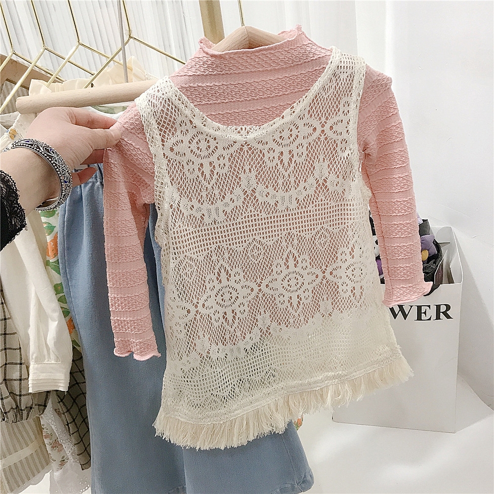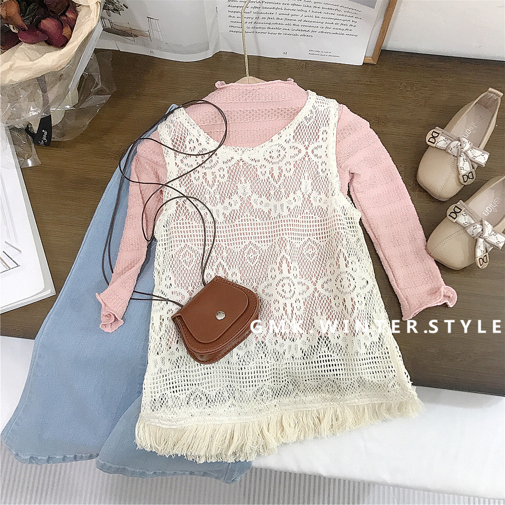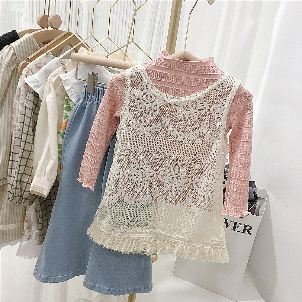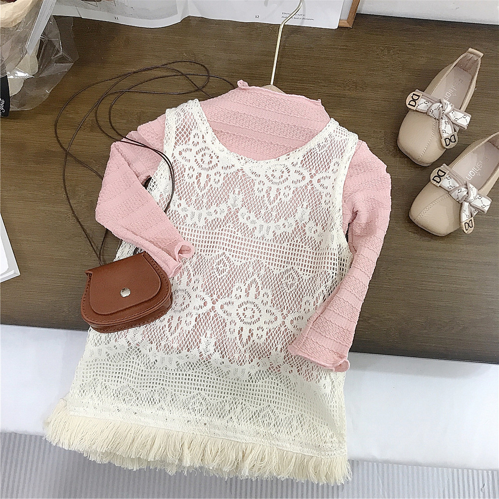 소녀 유행 어린이 레이스 중공 조끼 원피스 봄 서양식 다재다능한 원피스 달콤한 세트 대외 무역스토어 가기