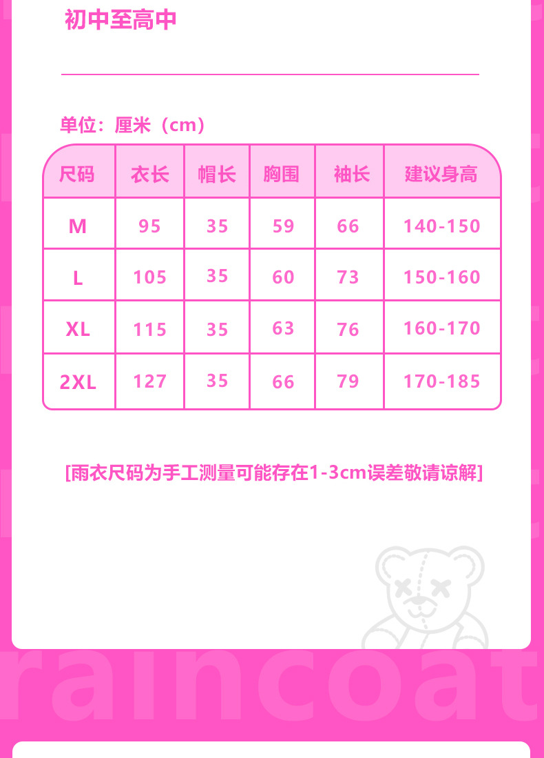 중학생 학생 배낭 비옷이 길어진 배낭 비옷 보이지 않는 책가방 위치 더블 브림 반사 곰