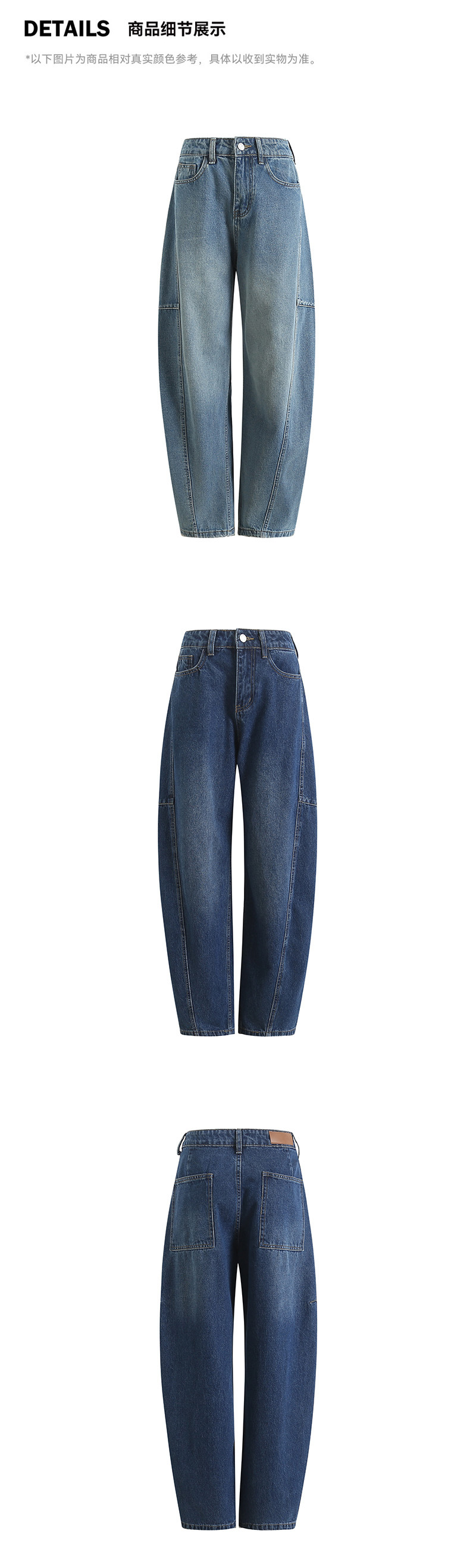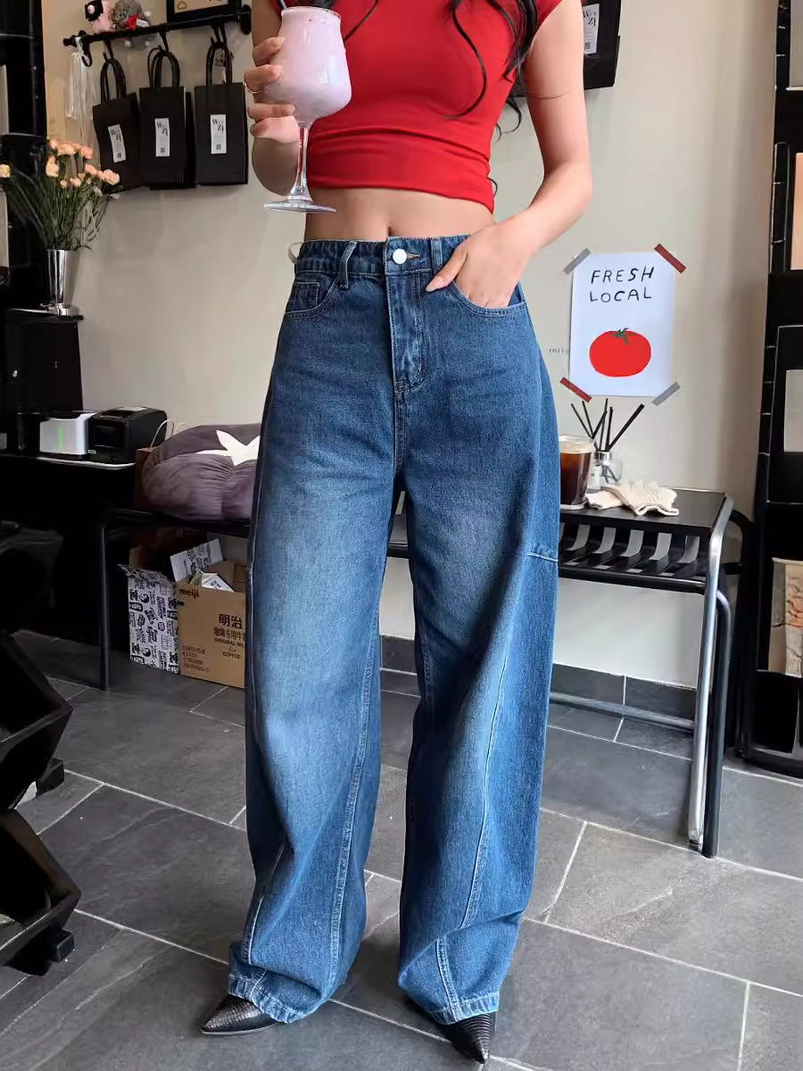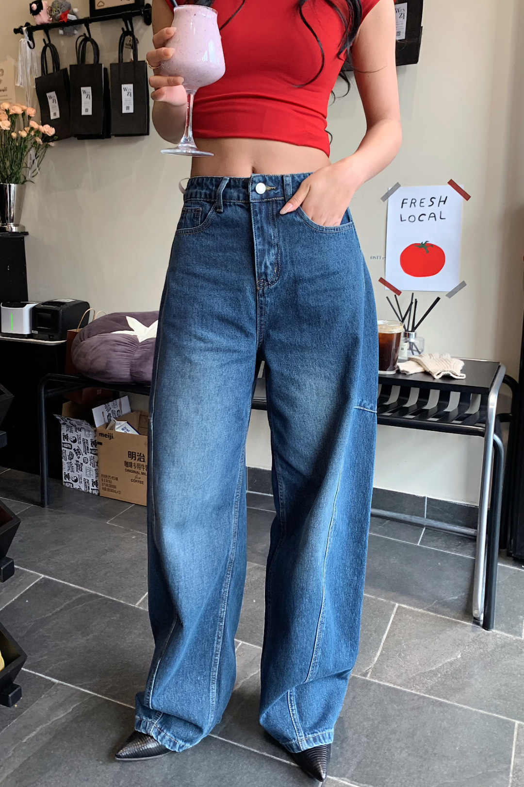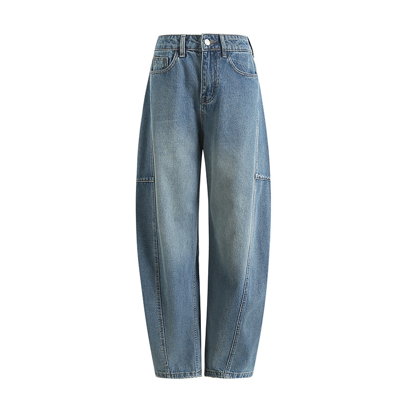 다재다능한 슬리밍 유행 개척자 빛 해체 분할 탄젠트 느슨한 곡선 고치 청바지 여성용 바나나 바지 4001스토어 가기