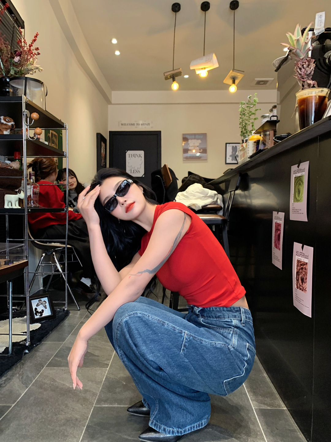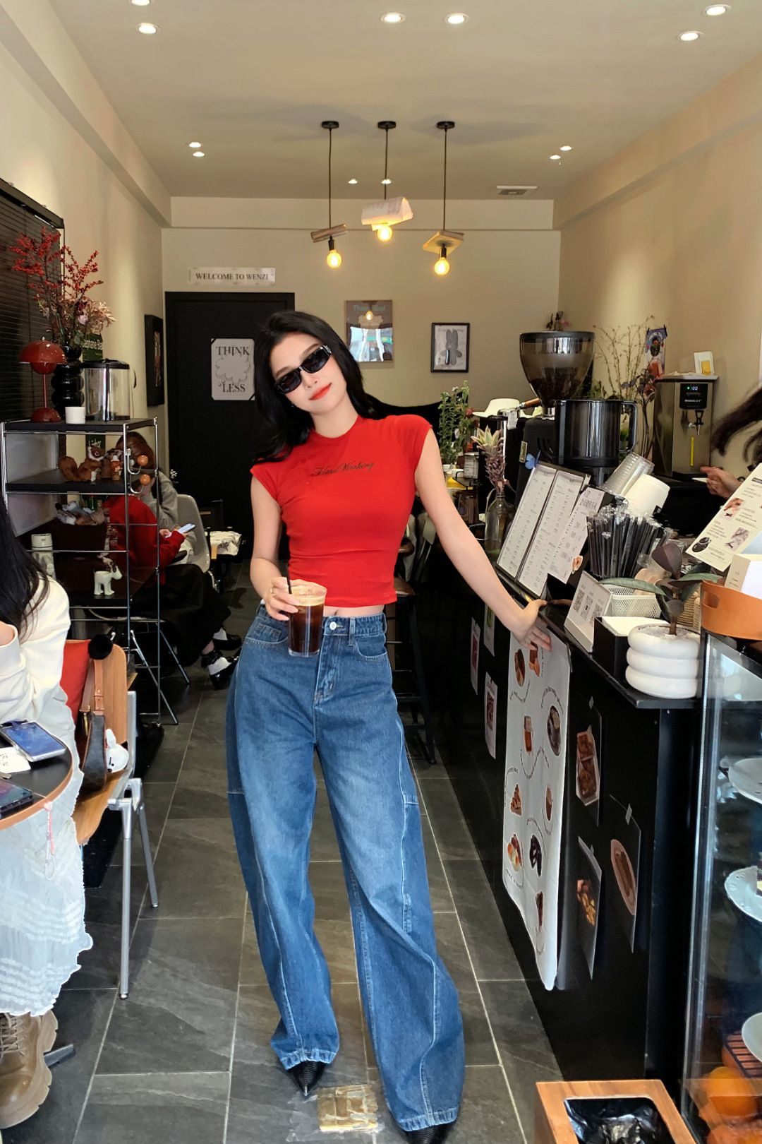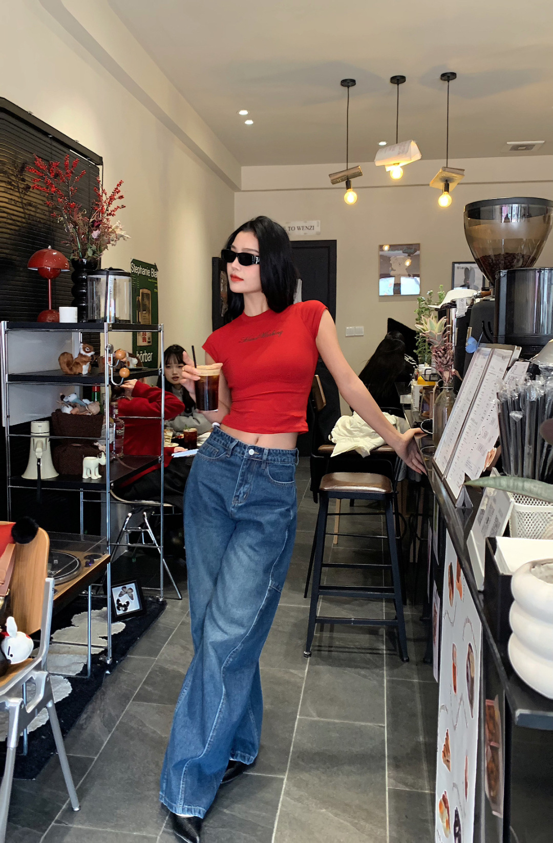 다재다능한 슬리밍 유행 개척자 빛 해체 분할 탄젠트 느슨한 곡선 고치 청바지 여성용 바나나 바지 4001스토어 가기