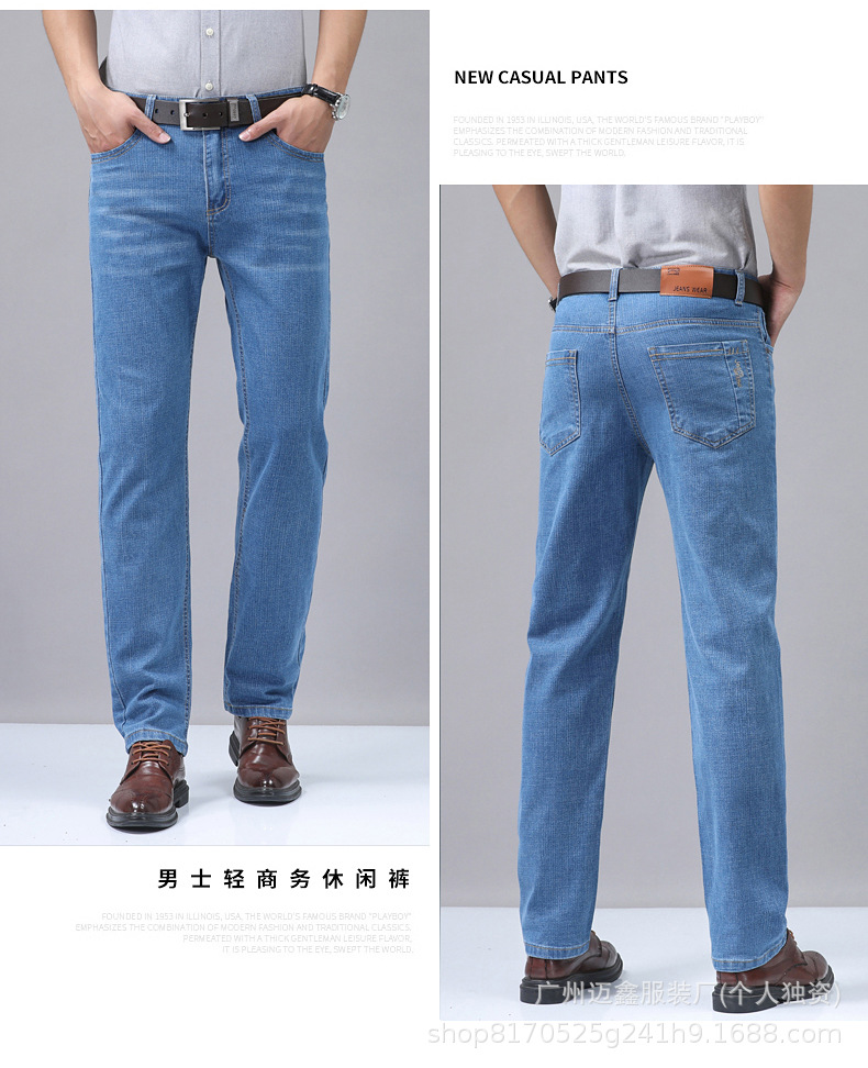 Maixin 봄과 여름 남성 청바지 남성 탄성 느슨한 스트레이트 캐주얼 바지 작업 내마모성 긴 바지 도매 대외 무역스토어 가기