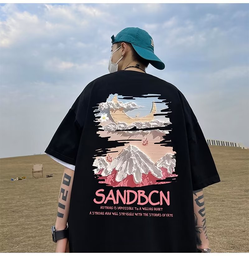 미국식 반소매 티셔츠 남성용 여름 트렌디 한 학생 헤비 코튼 패션 브랜드 플러스 사이즈 반소매 티셔츠 옷스토어 가기