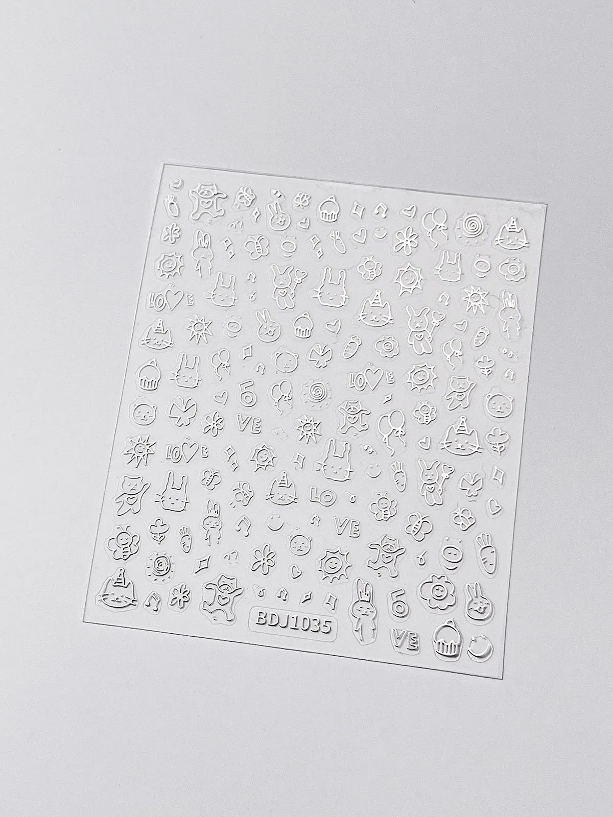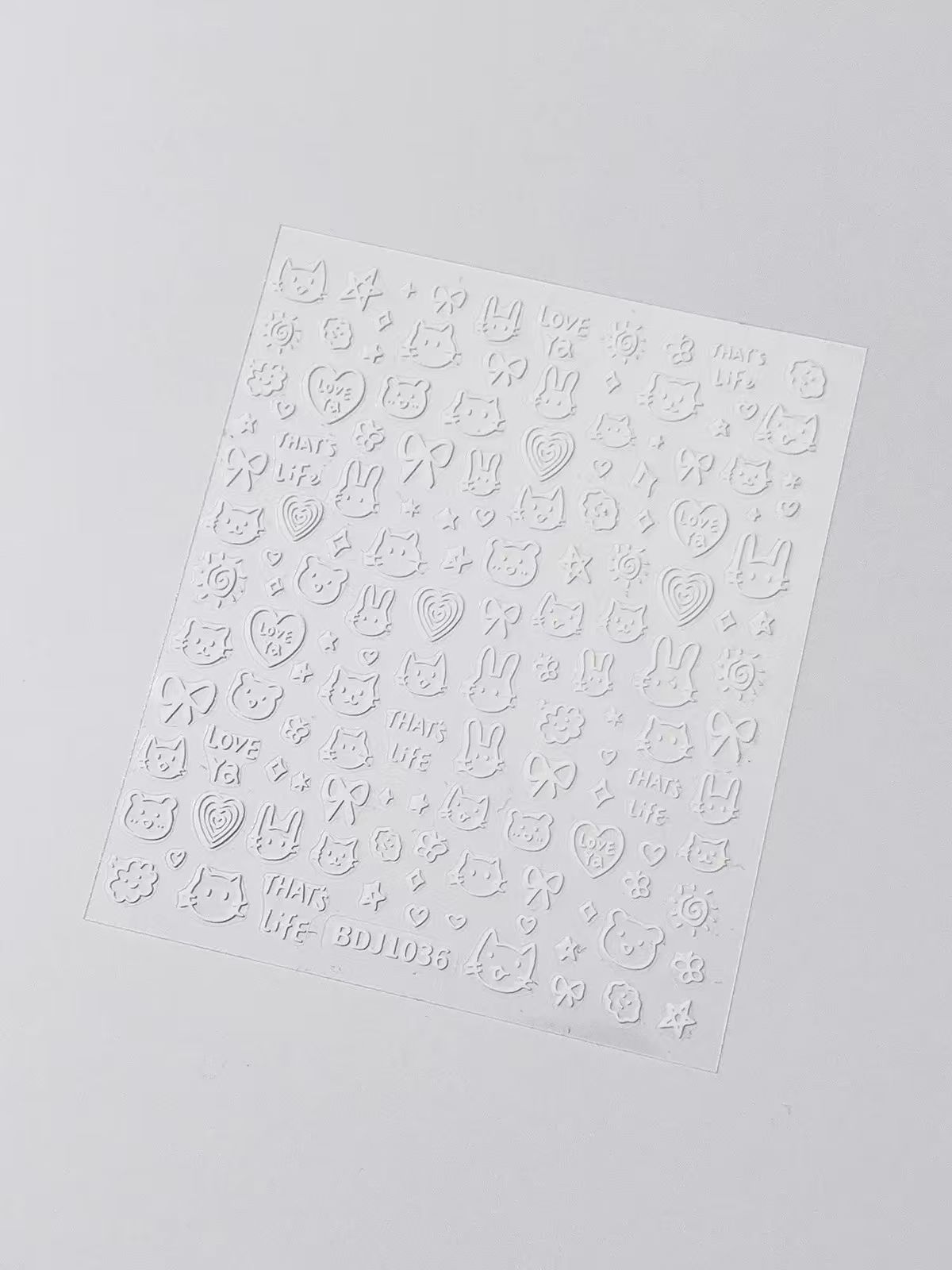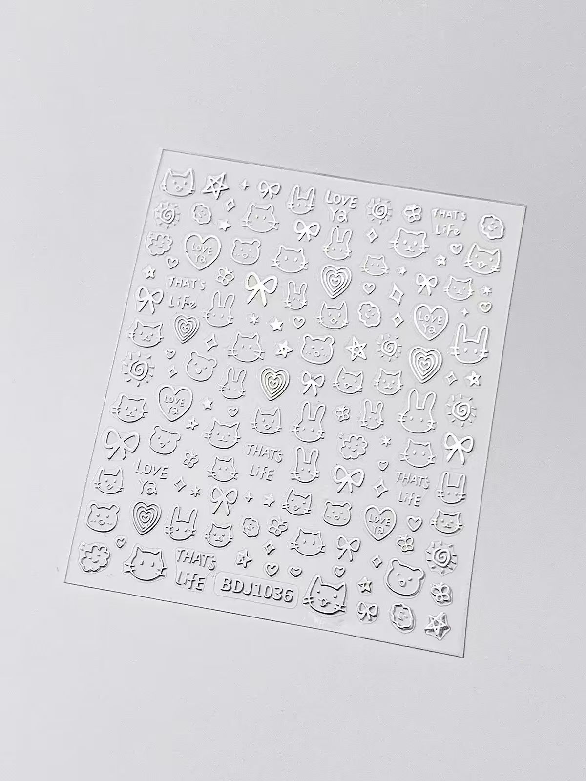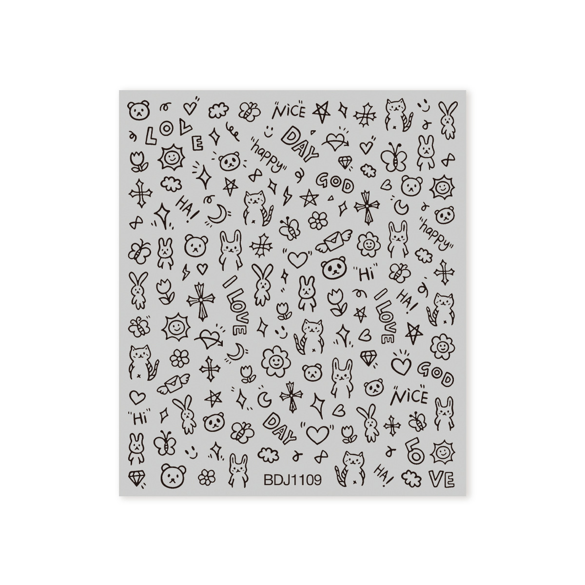 인기있는 온라인 인기있는 귀여운 네일 스티커 낙서 작은 동물 꽃 나비 패턴 얇은 거친 3 차원 네일 스티커 도매