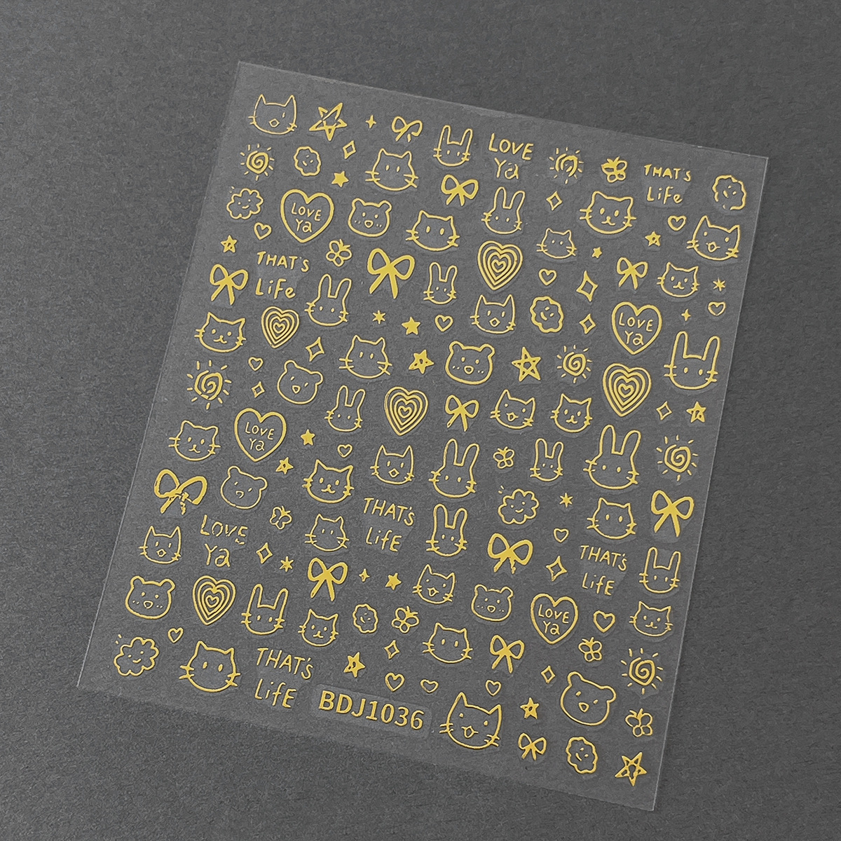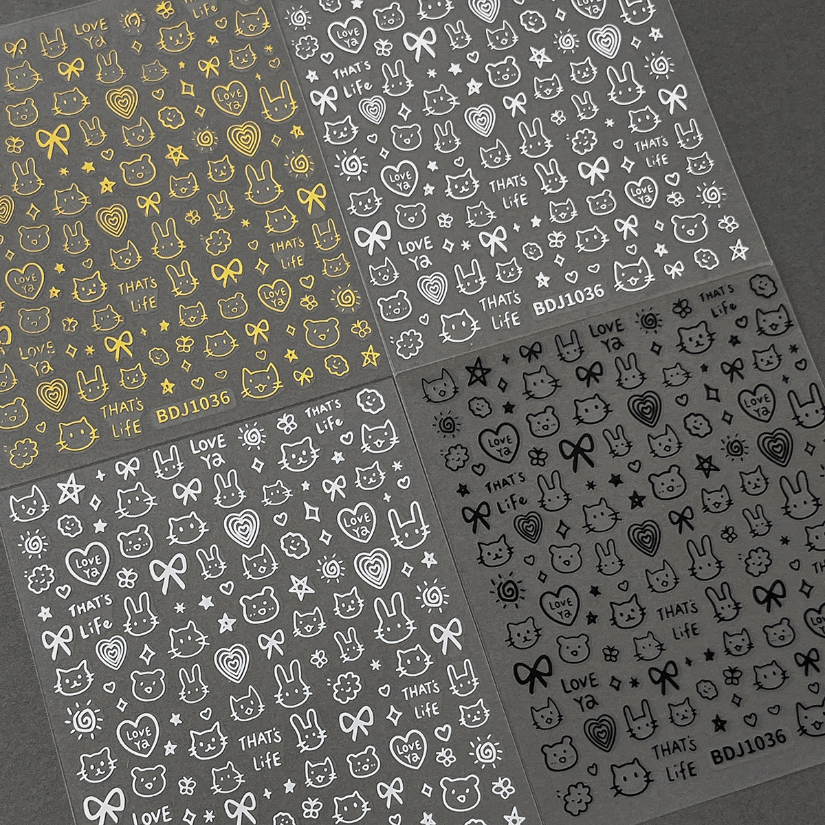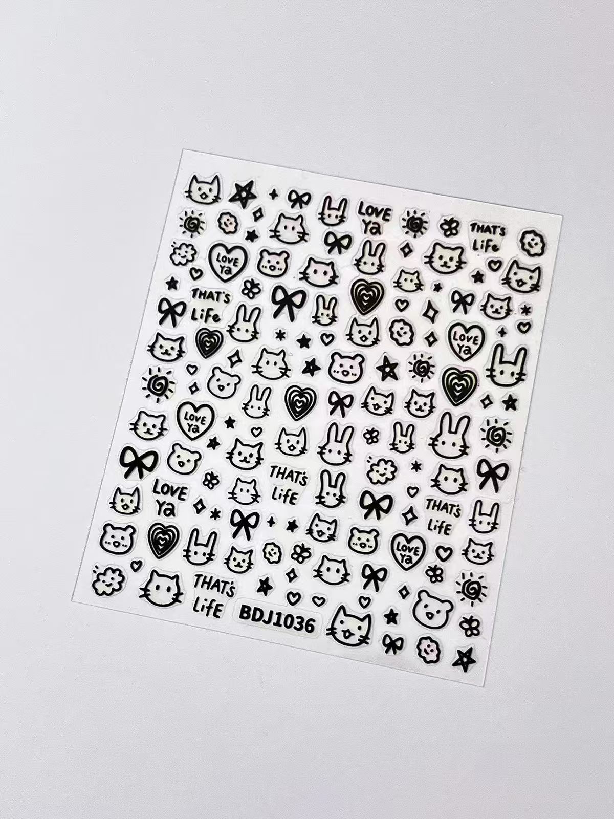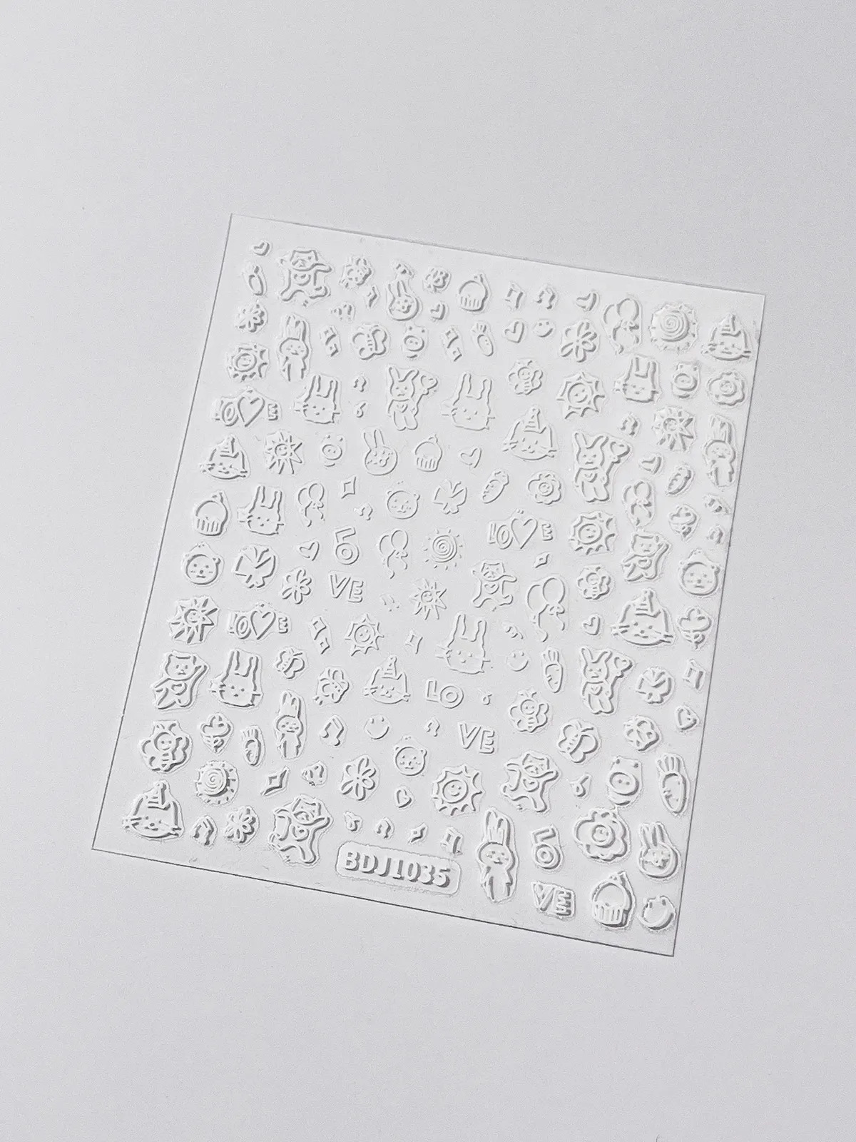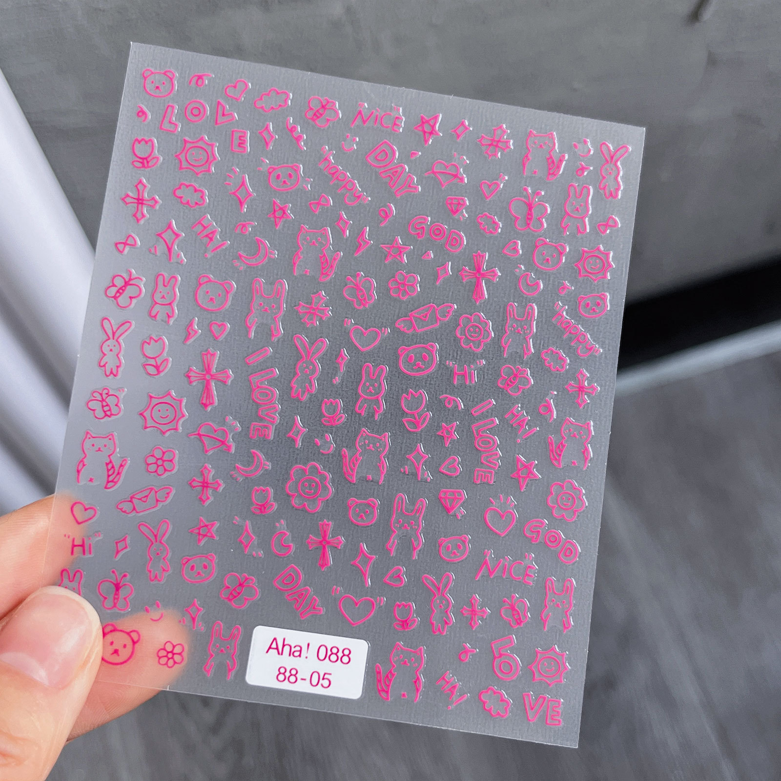 인기있는 온라인 인기있는 귀여운 네일 스티커 낙서 작은 동물 꽃 나비 패턴 얇은 거친 3 차원 네일 스티커 도매