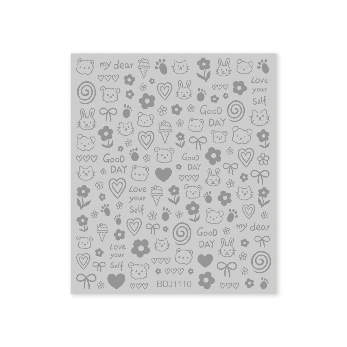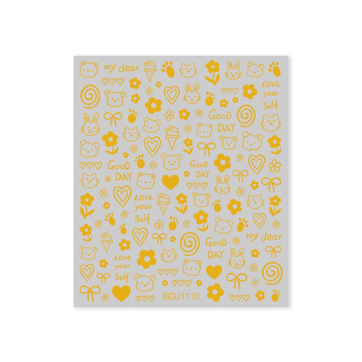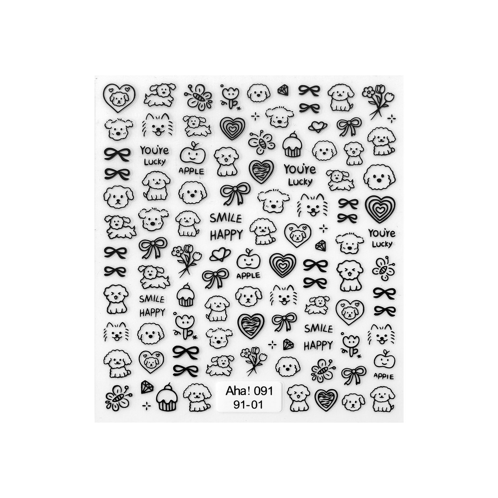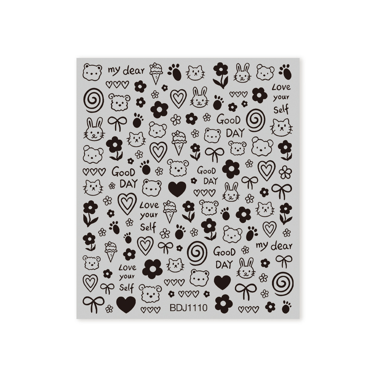 인기있는 온라인 인기있는 귀여운 네일 스티커 낙서 작은 동물 꽃 나비 패턴 얇은 거친 3 차원 네일 스티커 도매