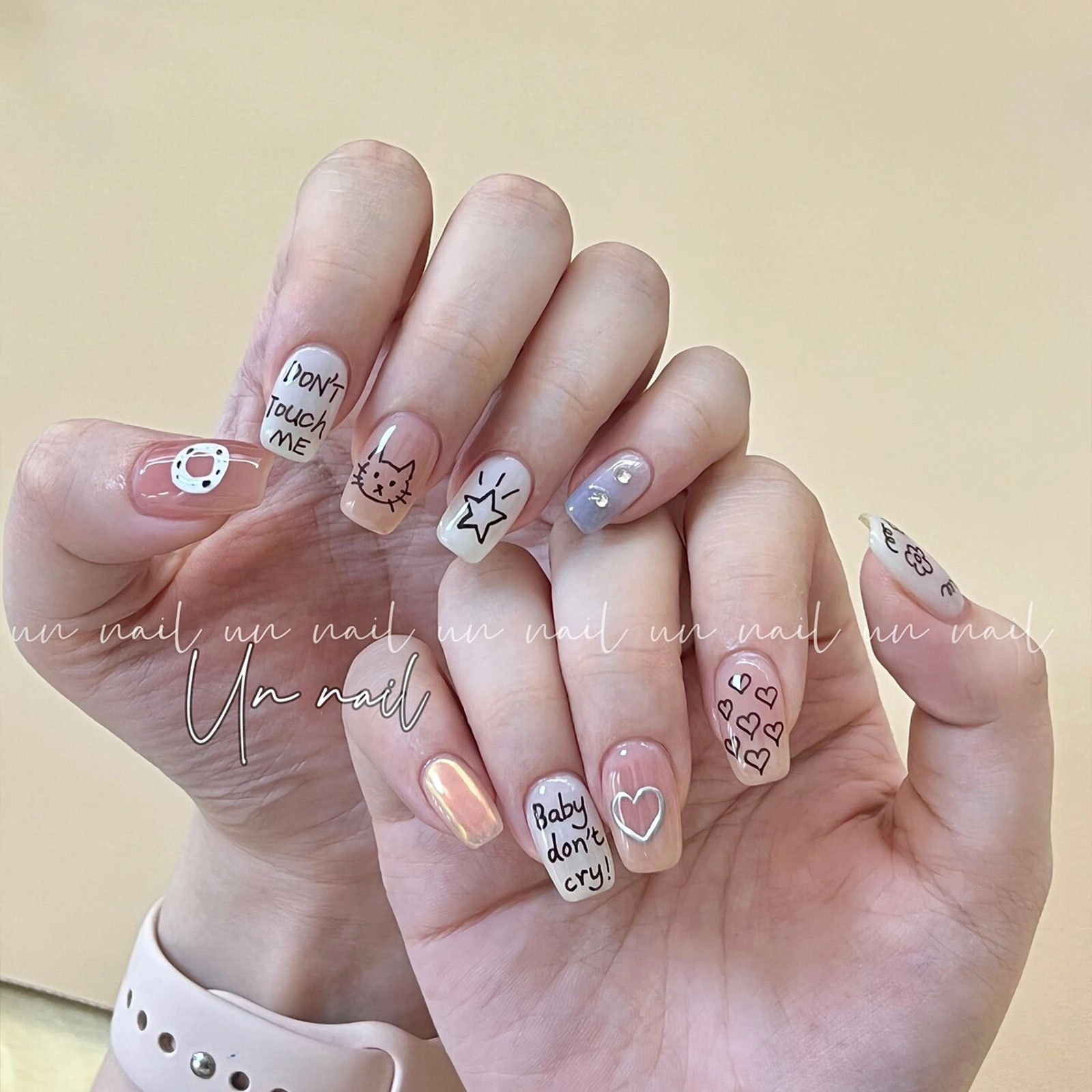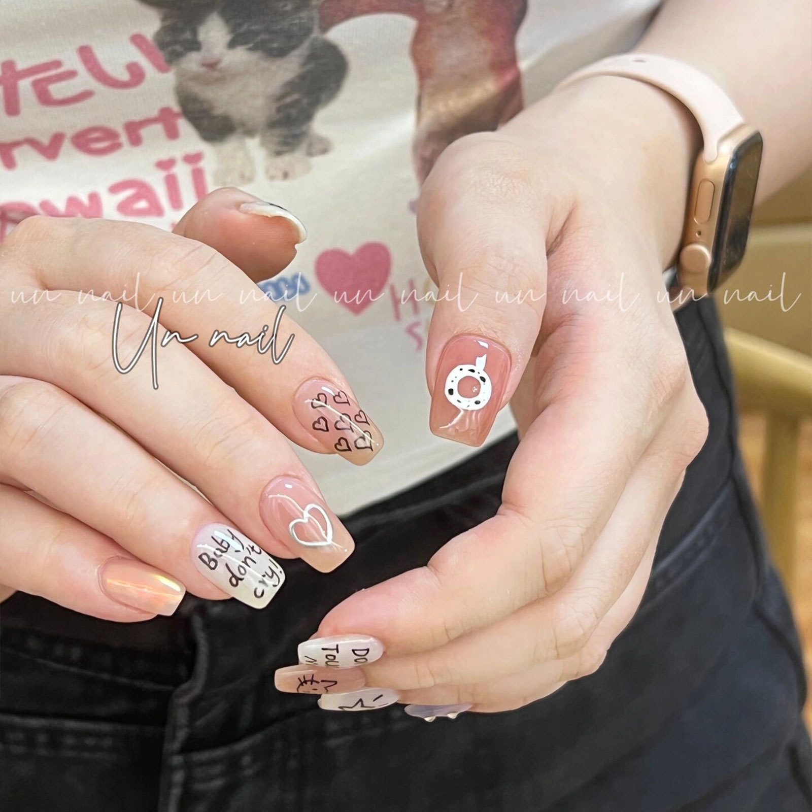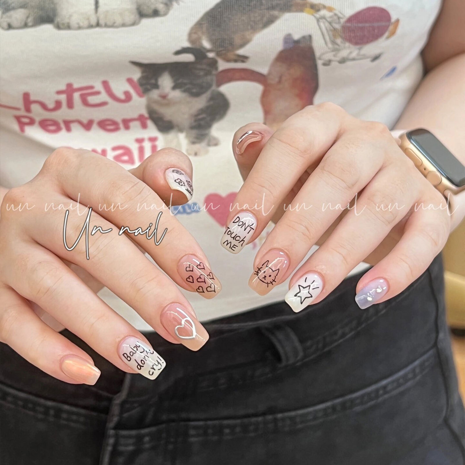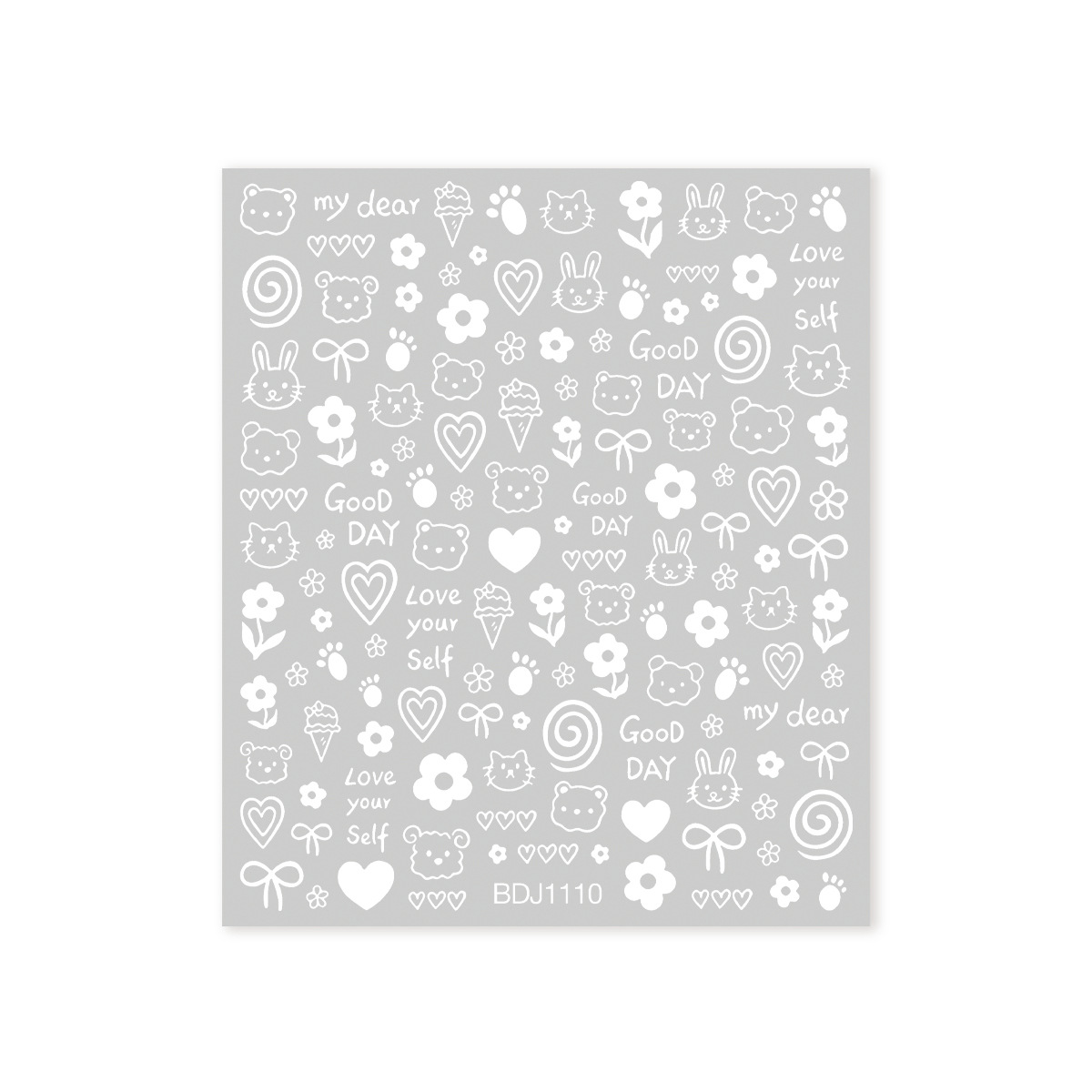 인기있는 온라인 인기있는 귀여운 네일 스티커 낙서 작은 동물 꽃 나비 패턴 얇은 거친 3 차원 네일 스티커 도매