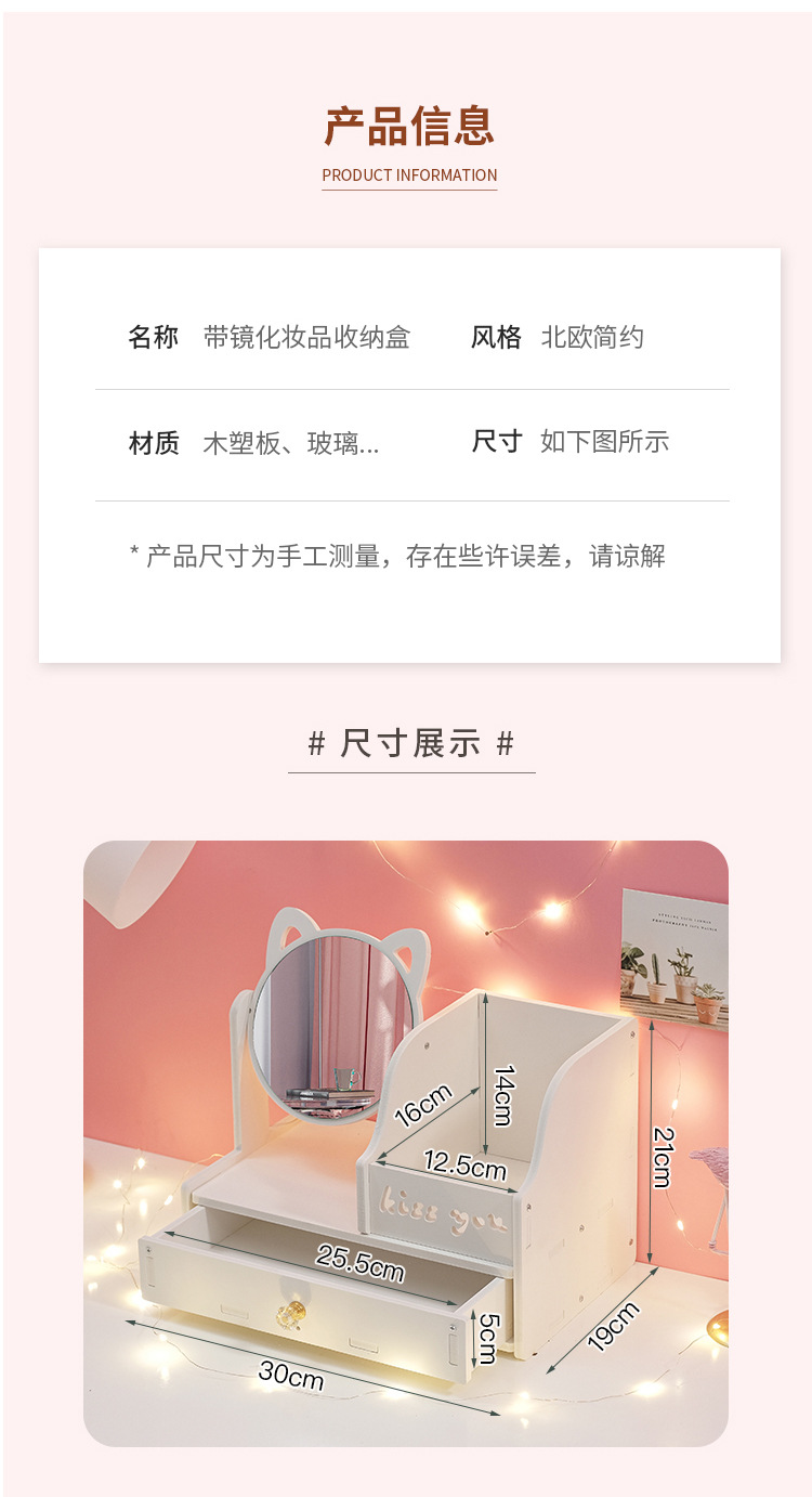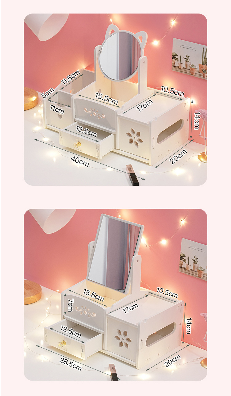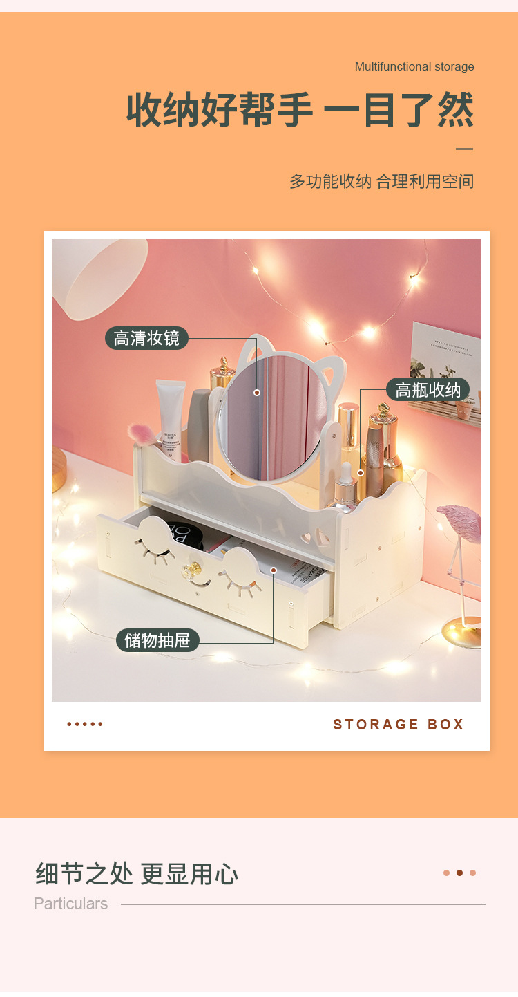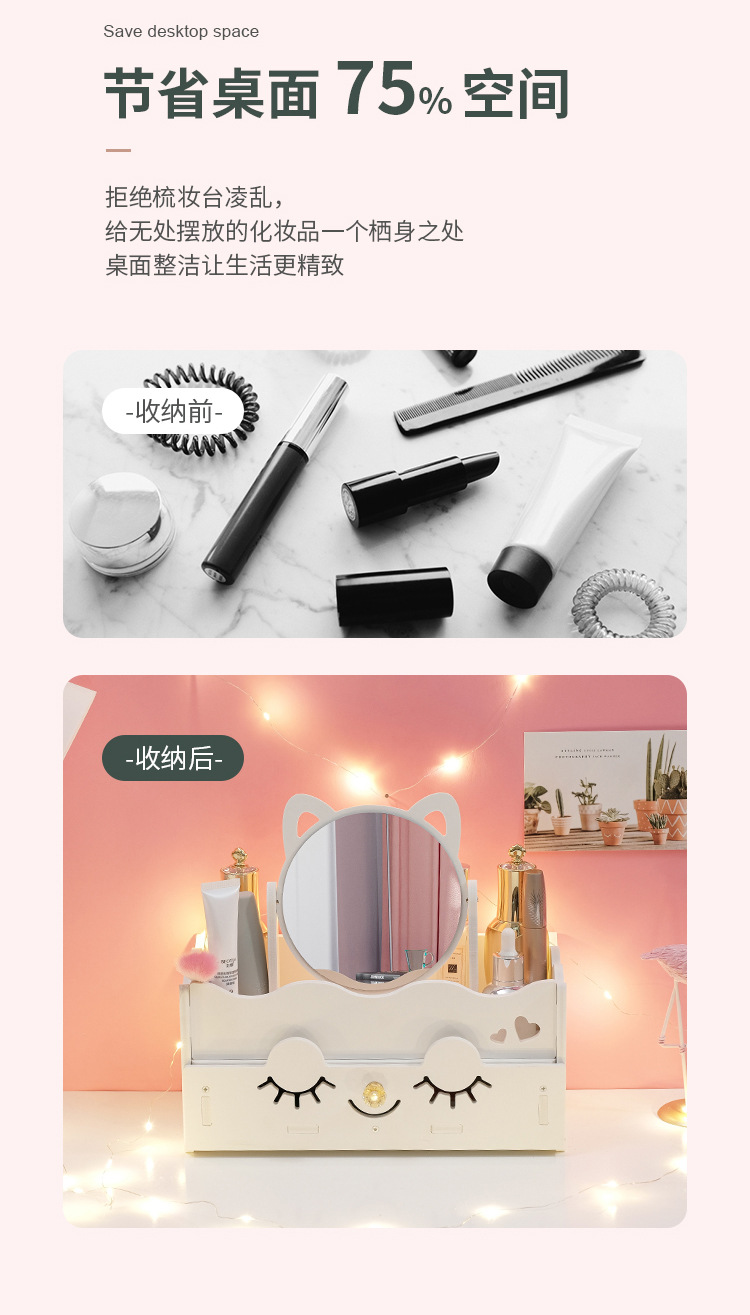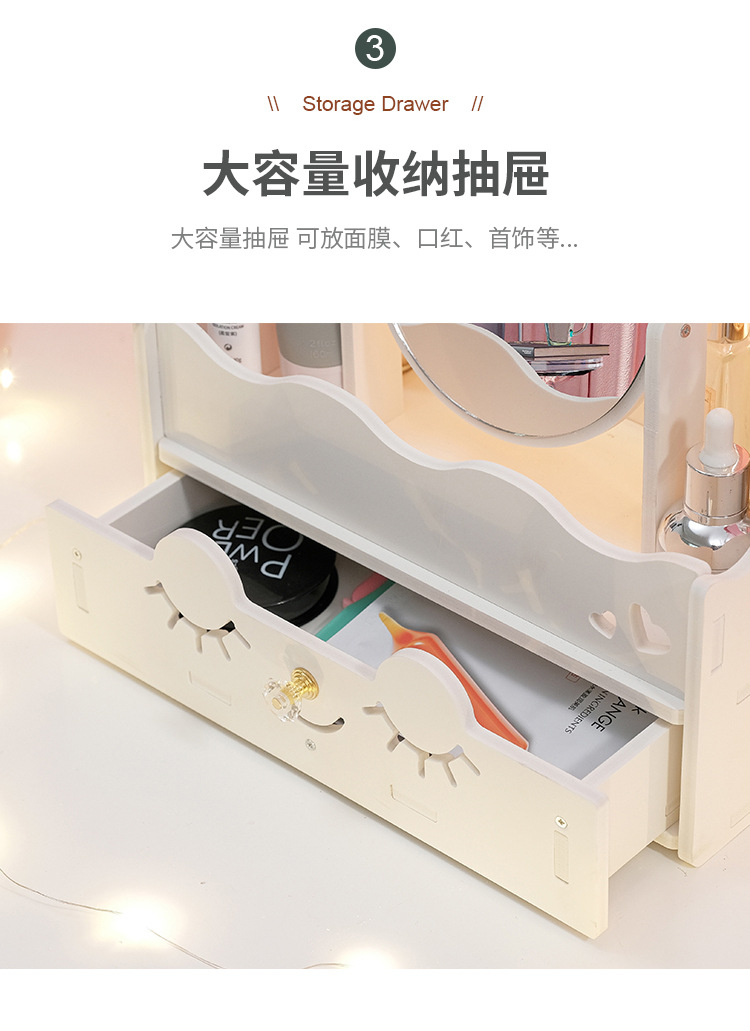 데스크탑 화장품 거울 스킨 케어 선반 립스틱 보석 상자 기숙사 드레싱 테이블 서랍 화장품 보관 상자