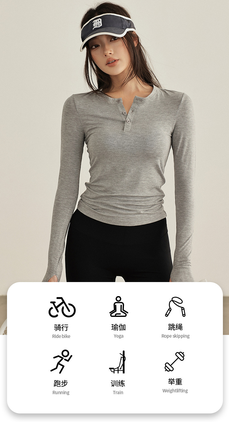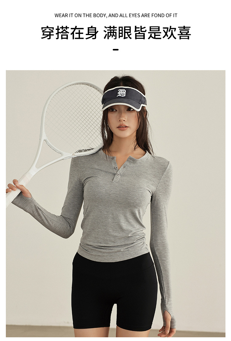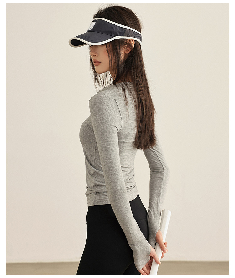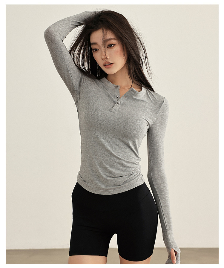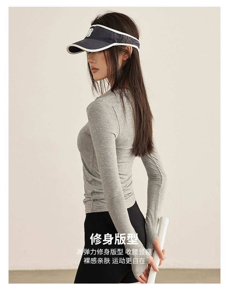 요가 옷 여성 봄과 여름 긴팔 티셔츠 그레이 슬림 핏 슬리밍 달리기 필라테스 훈련 옷 피트니스 스포츠 티셔츠스토어 가기