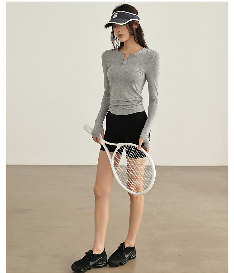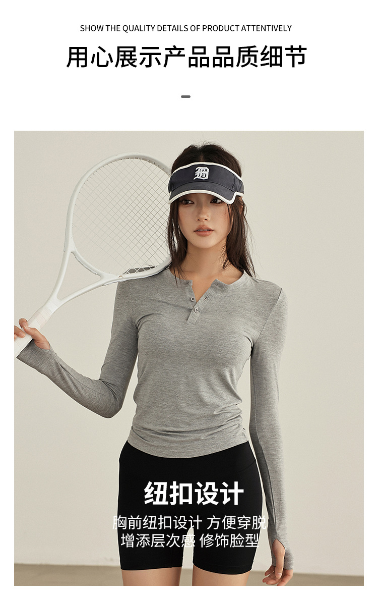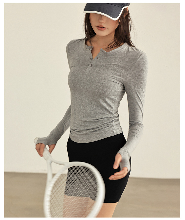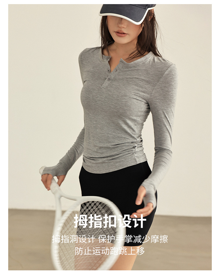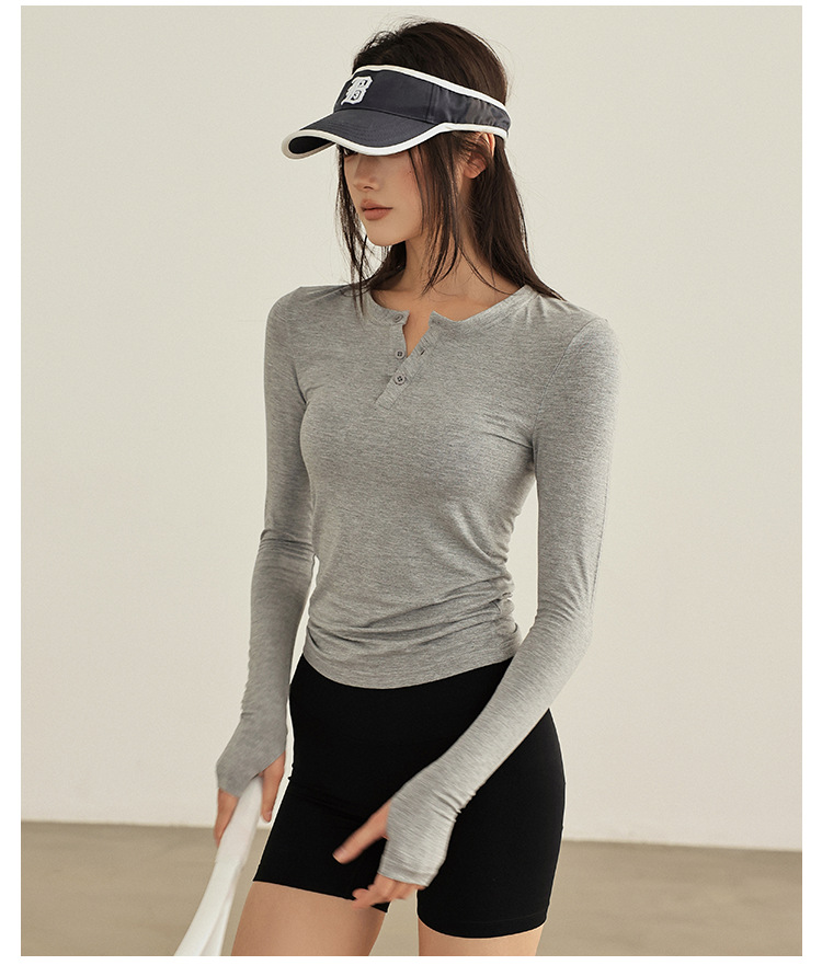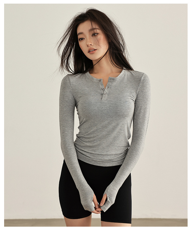 요가 옷 여성 봄과 여름 긴팔 티셔츠 그레이 슬림 핏 슬리밍 달리기 필라테스 훈련 옷 피트니스 스포츠 티셔츠스토어 가기