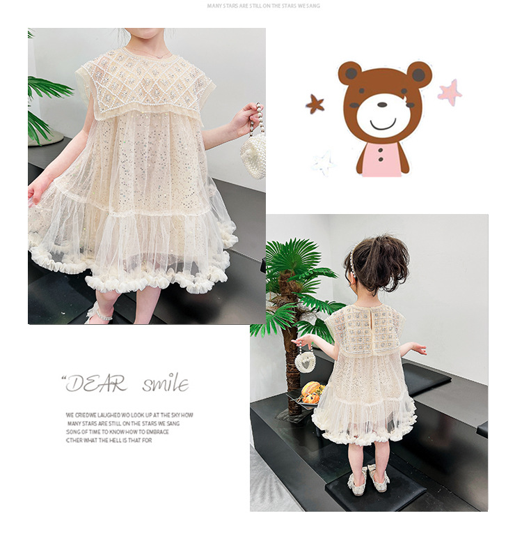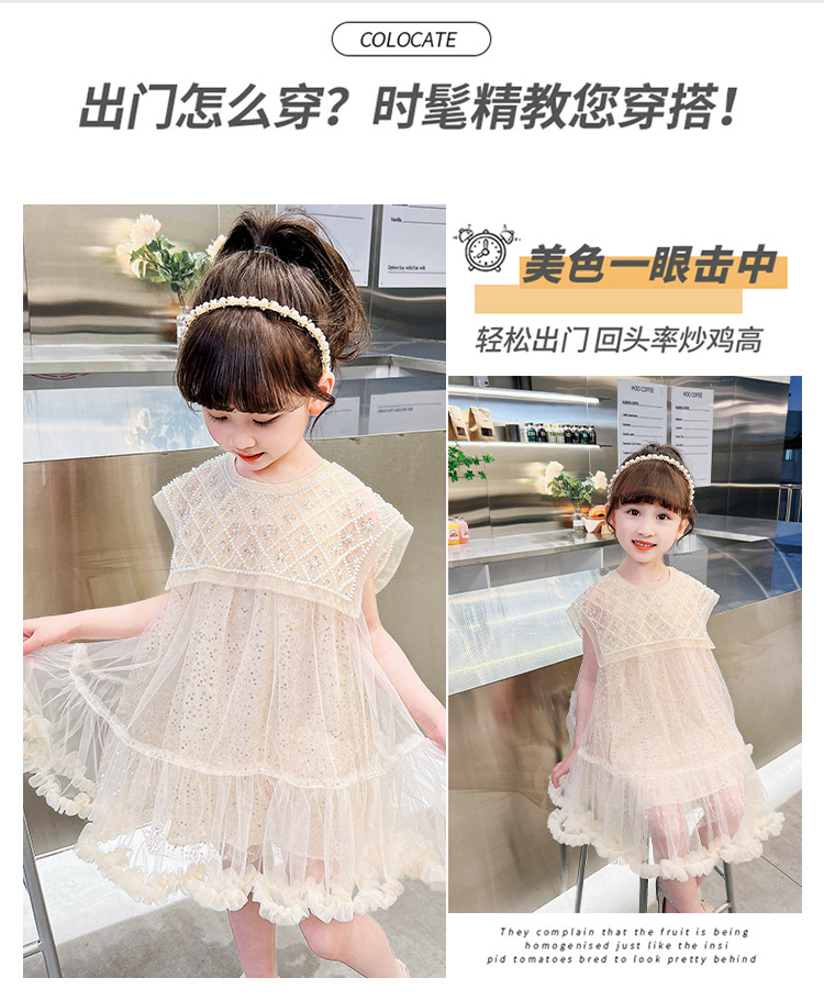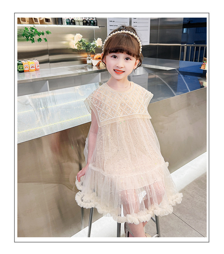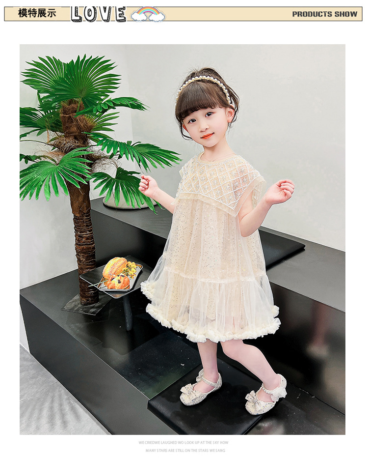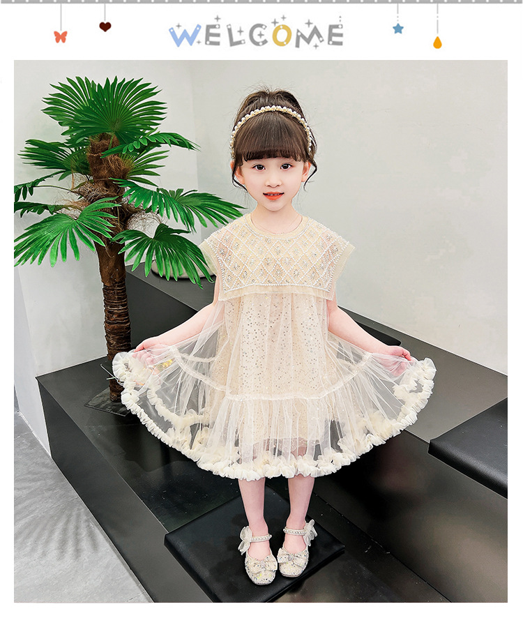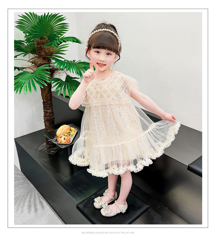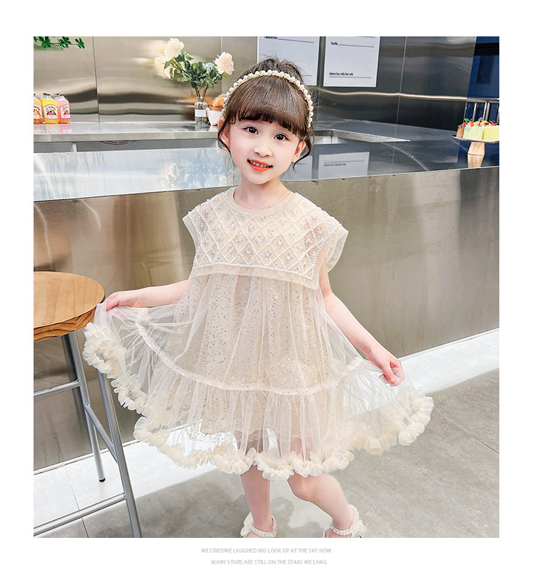 여름 소녀의 대형 스윙 중공업 진주 스팽글 거즈 원피스 공주 원피스 원피스 소녀의 원피스 투투 원피스 공연스토어 가기