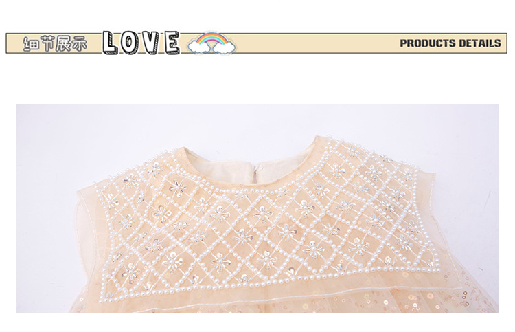 여름 소녀의 대형 스윙 중공업 진주 스팽글 거즈 원피스 공주 원피스 원피스 소녀의 원피스 투투 원피스 공연