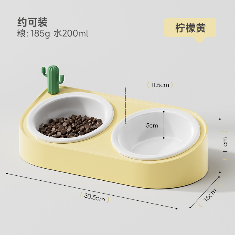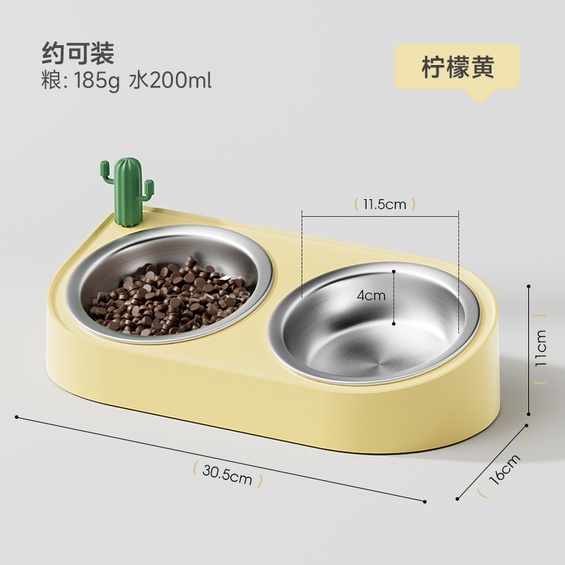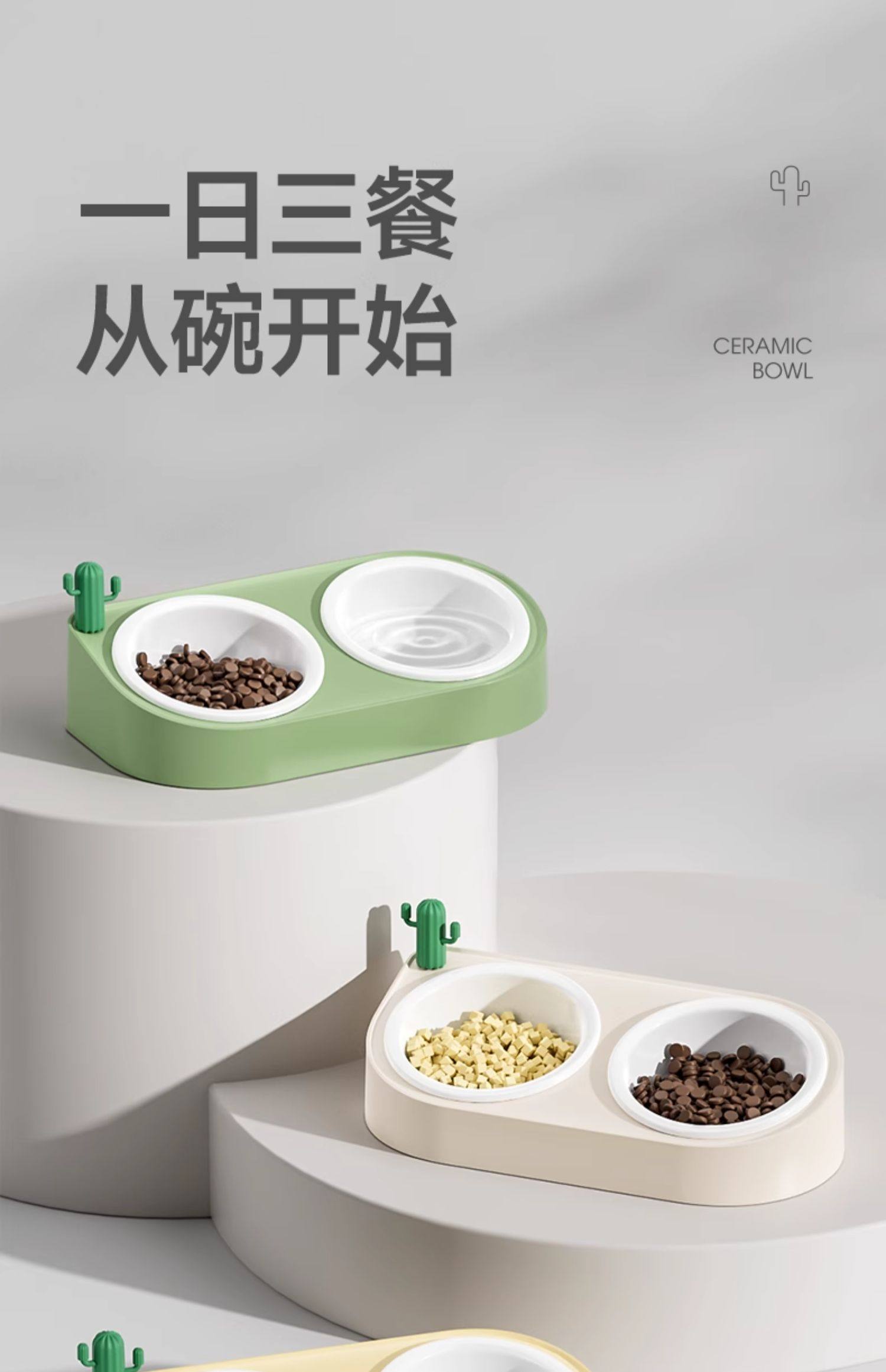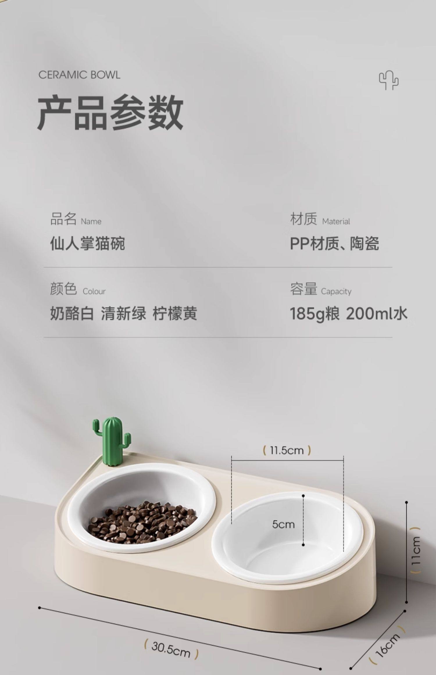 【品名】:HOOPET 仙人掌双碗(不锈钢款/陶瓷款)-(黄色/绿色/米色)