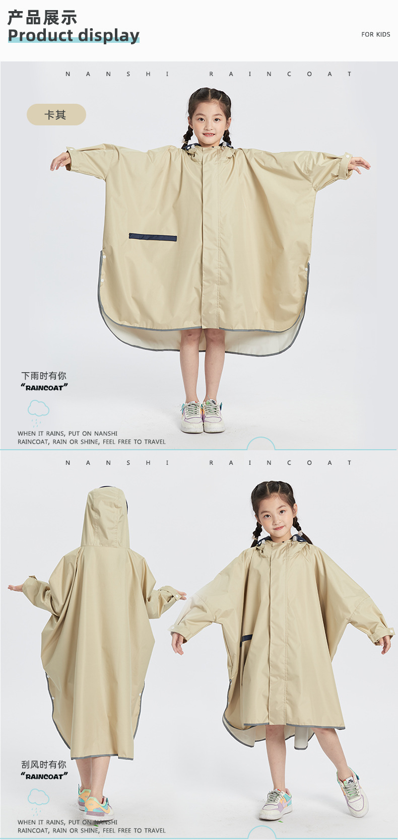 케이프 스타일 어린이 비옷 소년 소녀 초등학교 학생 학교 가방 위치 방수 승마 판초 사용자 정의스토어 가기