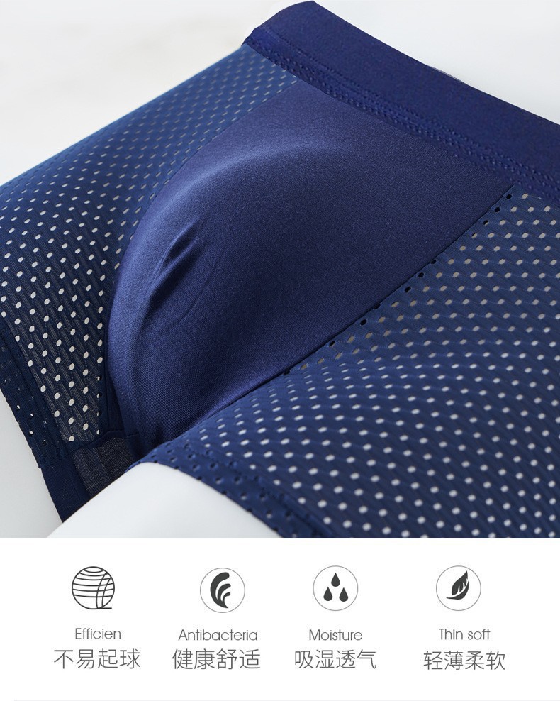 남자 아이스 실크 복서 브리프 원활한 메쉬 남성 복서 반바지 여름 얇은 통기성 시원한 느낌 복서 반바지 도매스토어 가기