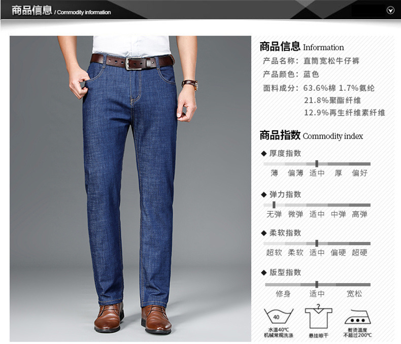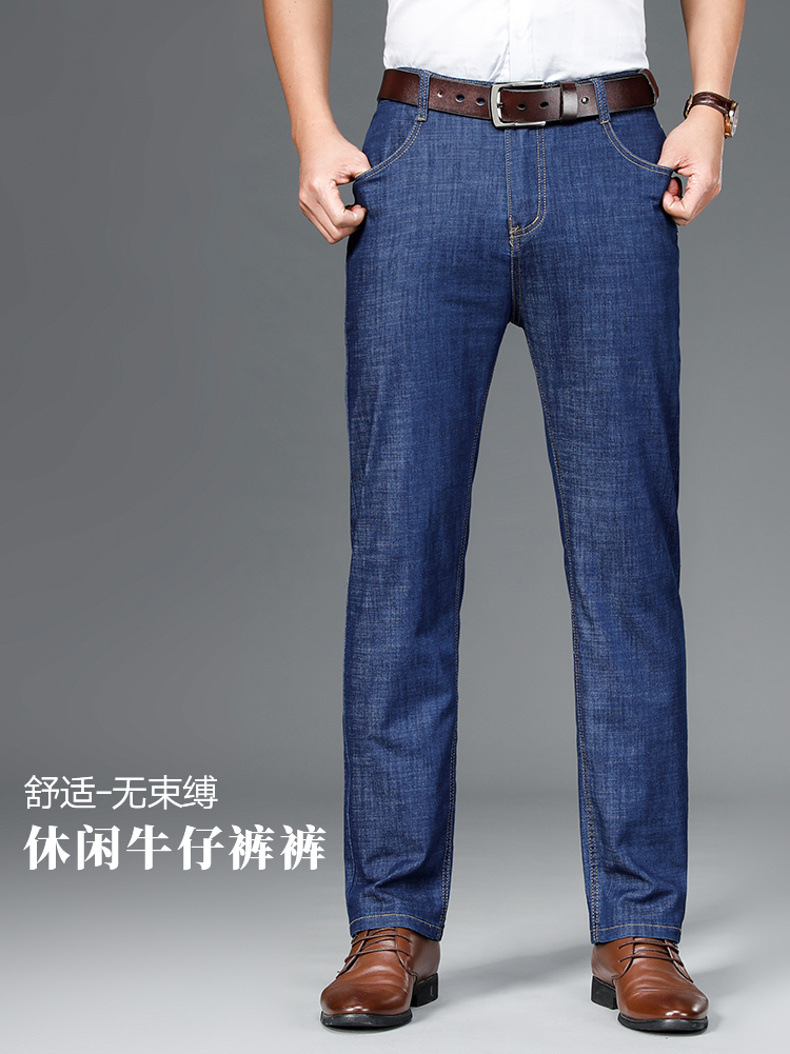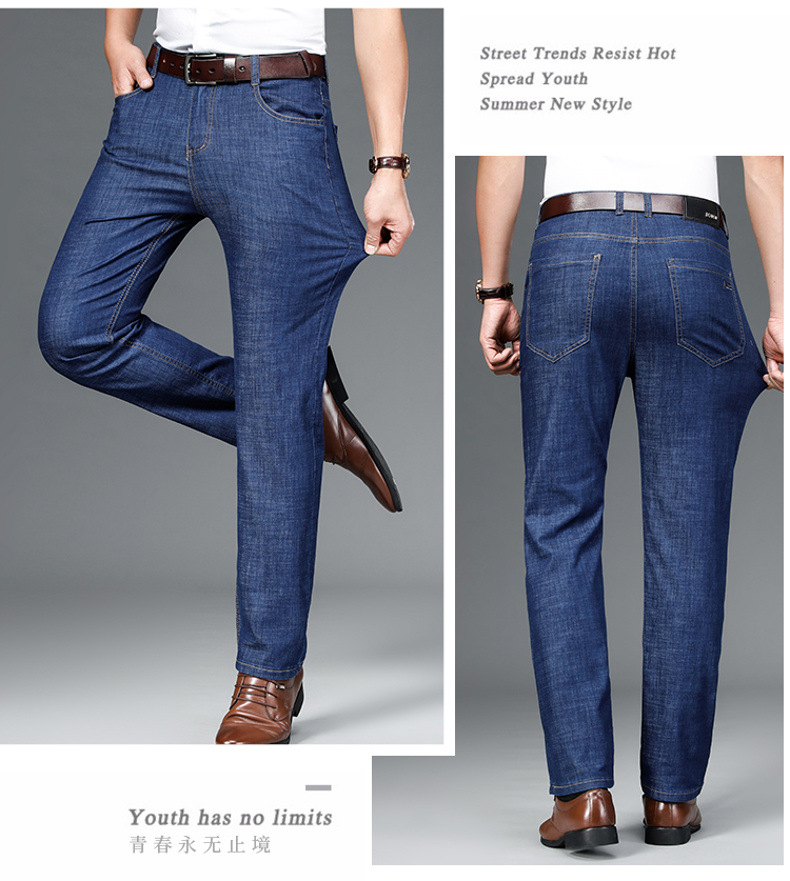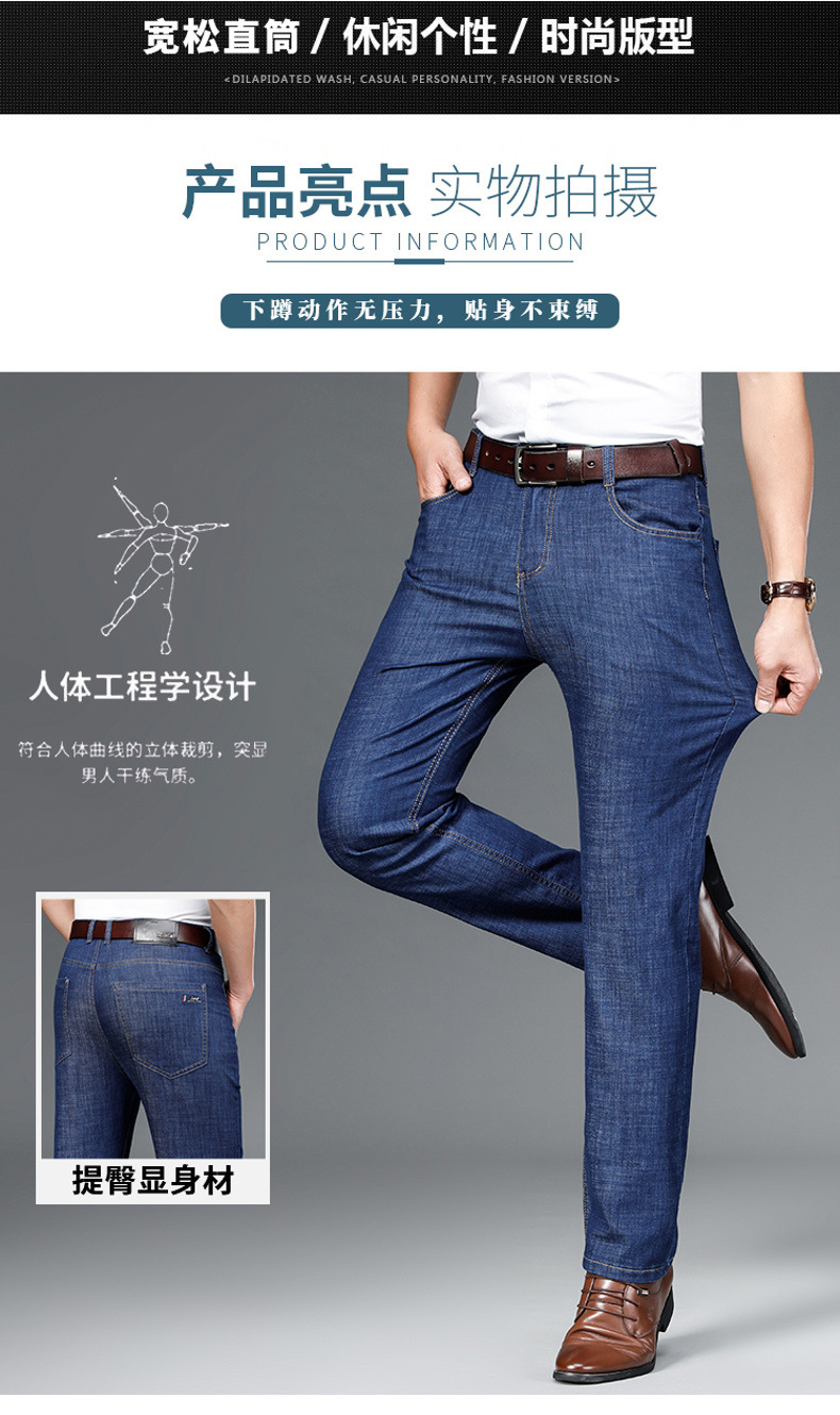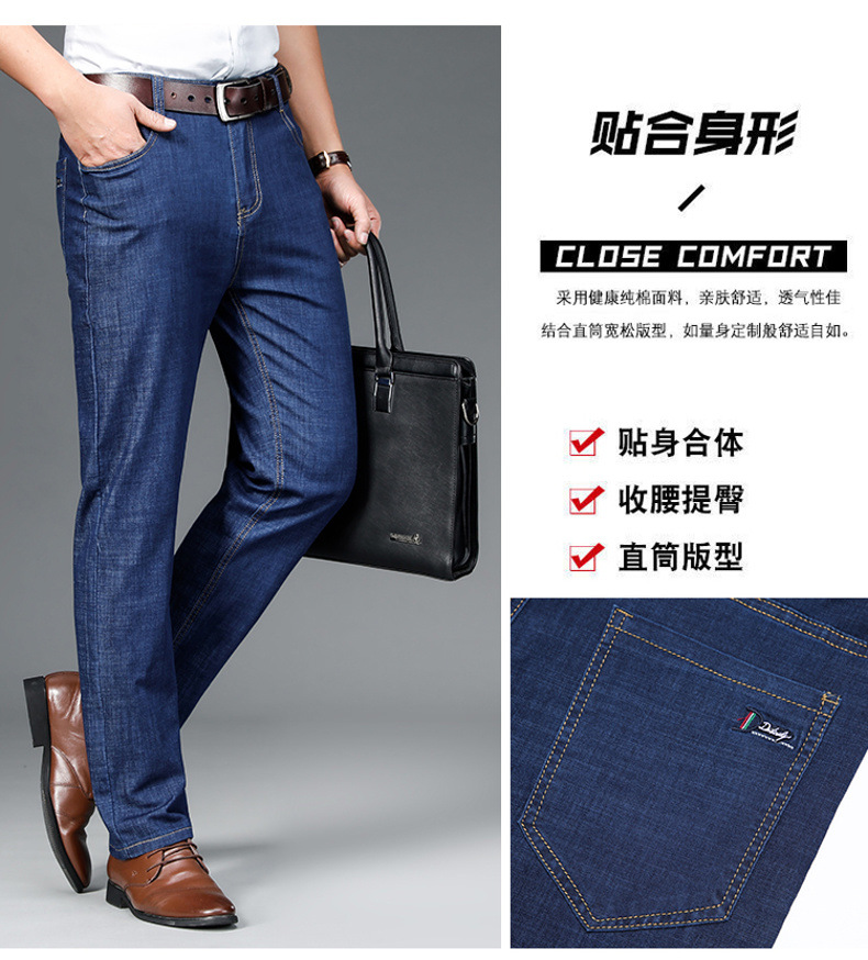 남성 스트레이트 청바지 봄과 여름 얇은 스트레치 데님 바지 느슨한 긴 바지 남성 비즈니스 캐주얼 바지스토어 가기