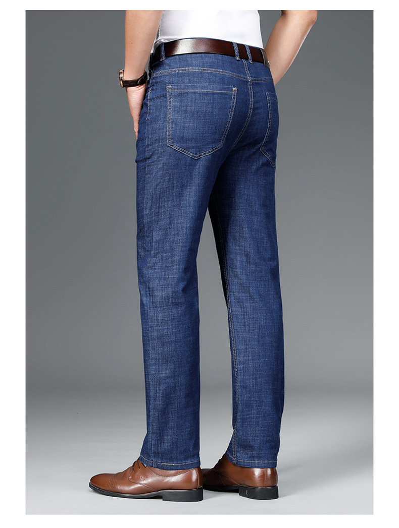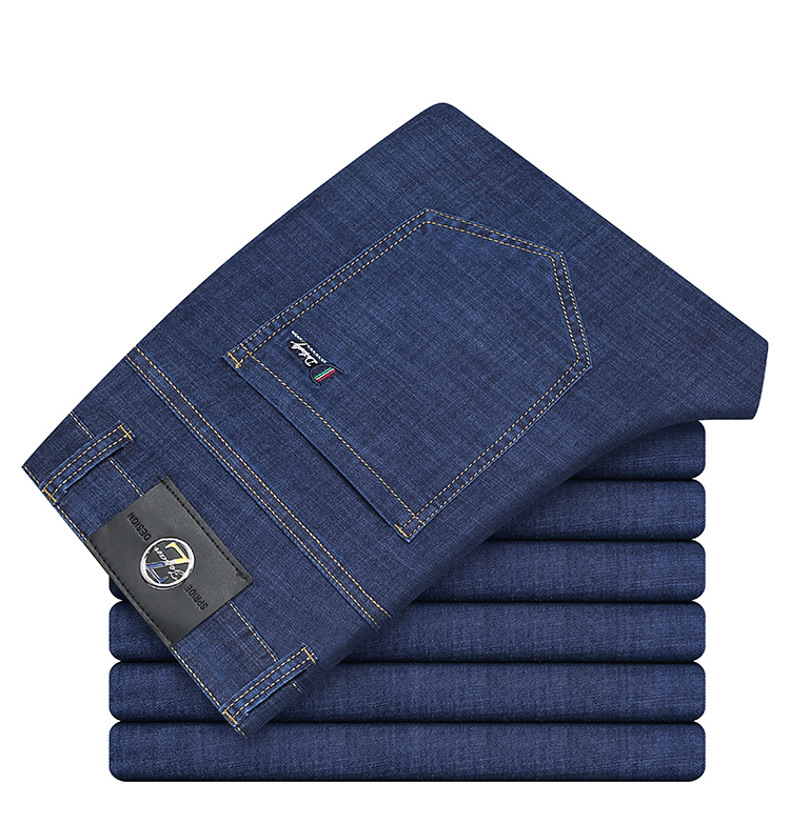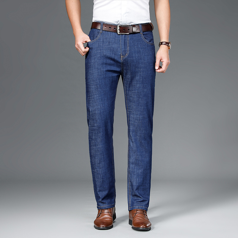 남성 스트레이트 청바지 봄과 여름 얇은 스트레치 데님 바지 느슨한 긴 바지 남성 비즈니스 캐주얼 바지