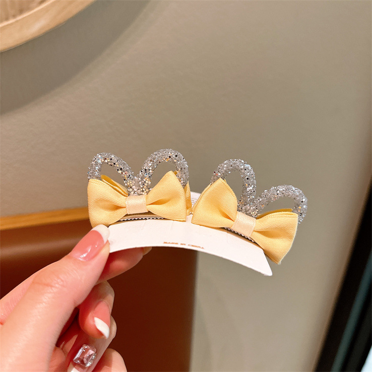 새로운 어린이 직물 더블 레이어 활 머리핀 귀여운 소녀 공주 입체 토끼 귀 쌍 머리핀 머리 장식