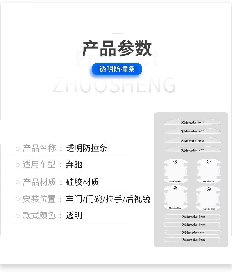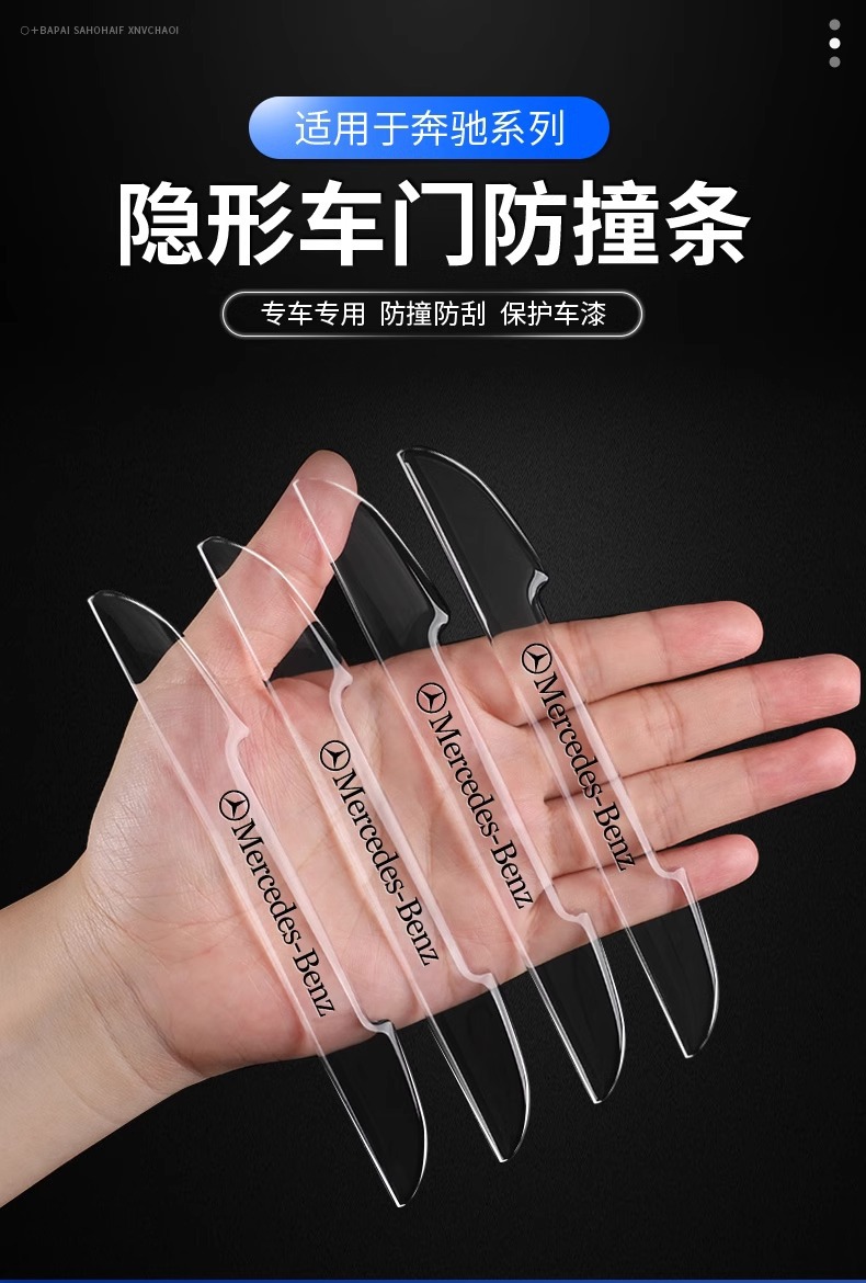 적용 가능한 메르세데스-벤츠 자동차 도어 범퍼 스트립 E/C/클래스 도어 핸들 보호 GLB/GLC 바디 투명 보호 스티커 장식