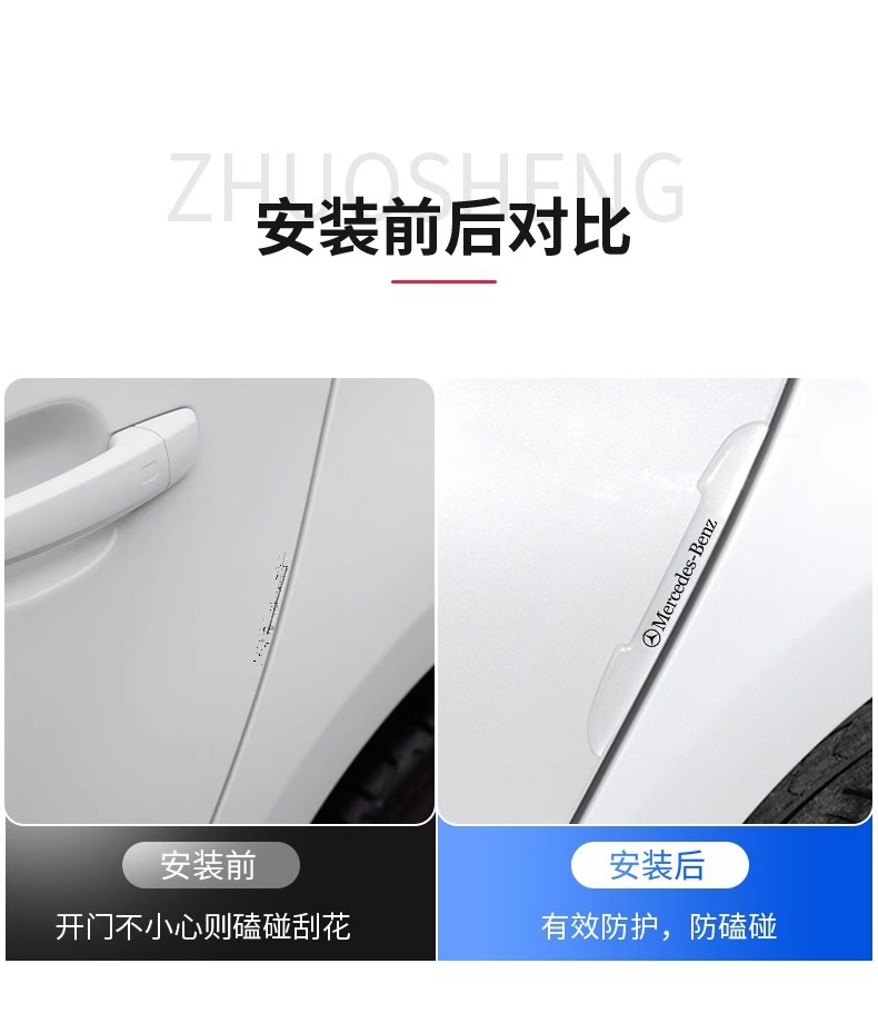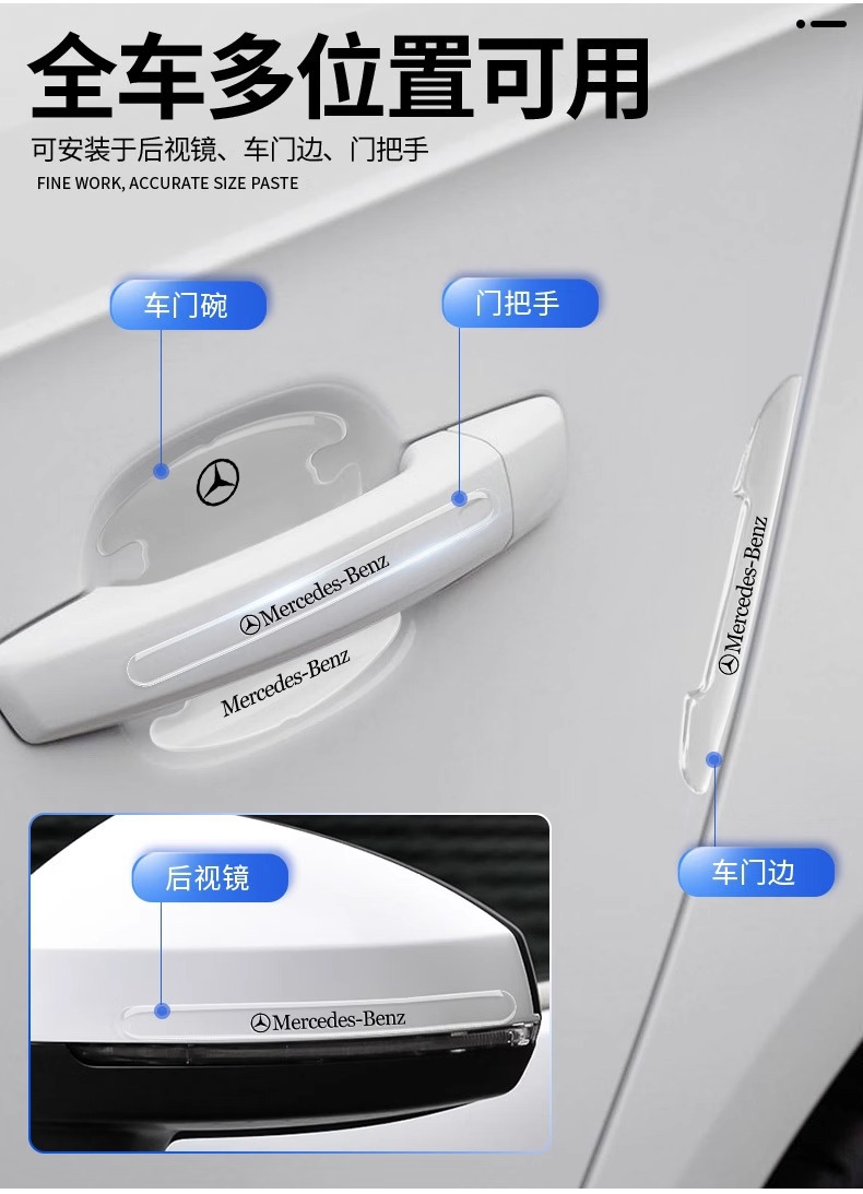 적용 가능한 메르세데스-벤츠 자동차 도어 범퍼 스트립 E/C/클래스 도어 핸들 보호 GLB/GLC 바디 투명 보호 스티커 장식스토어 가기