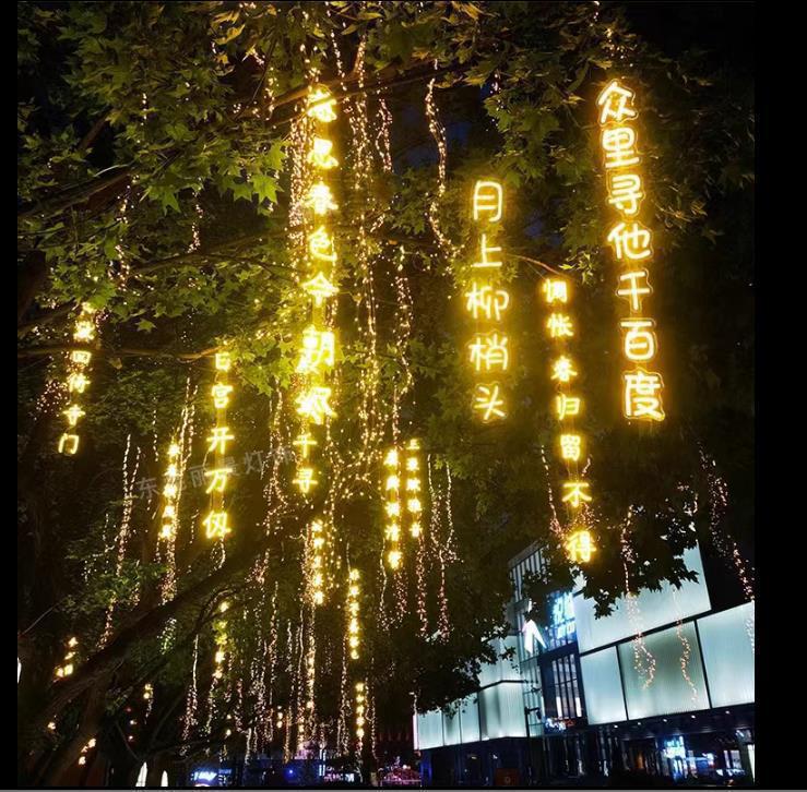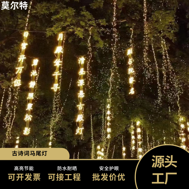 야외 방수 고전시 조명 네온 글자 조명 말꼬리 조명 축제 장식 분위기 조명 나무에 걸리는 시 조명