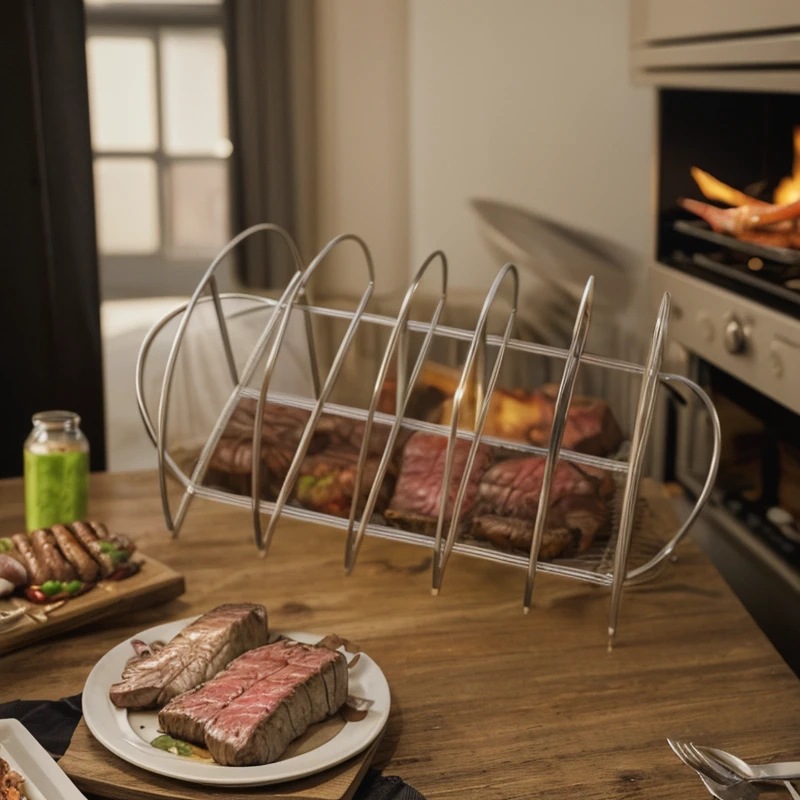 세미 클 스테인레스 스틸 430 스테이크 랙 야외 토마 호크 양고기 갈비 랙 캠핑 구운 리브 랙 BBQ 아메리칸 그릴