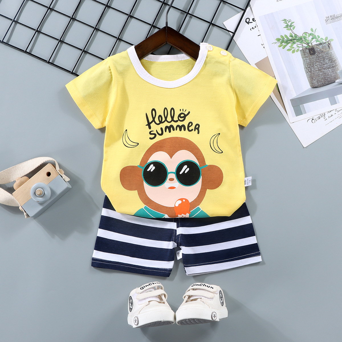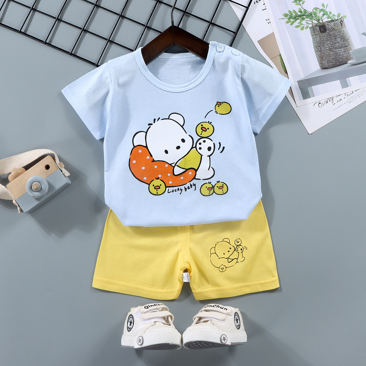 어린이 반팔 세트 코튼 보이즈 티셔츠 아기 여름 아동복 소녀 반바지 아기 의류 여름 도매