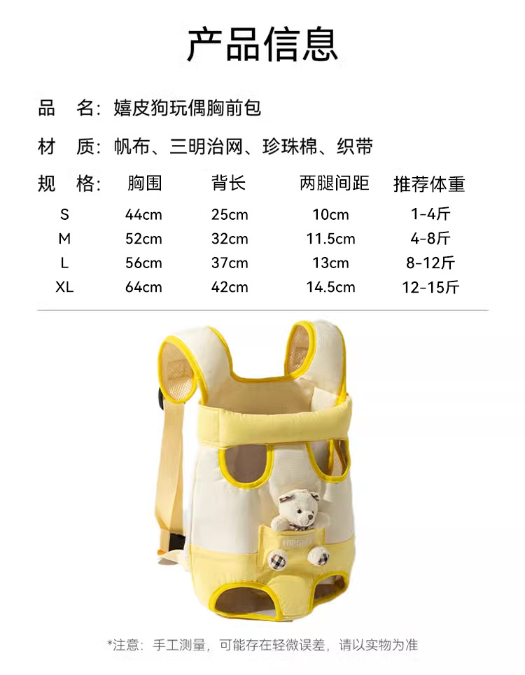 봄과 여름 만화 귀여운 곰 개 가슴 가방 고양이 가방 외출 가방 개 배낭 개 산책 가방 애완 동물 중소형 개