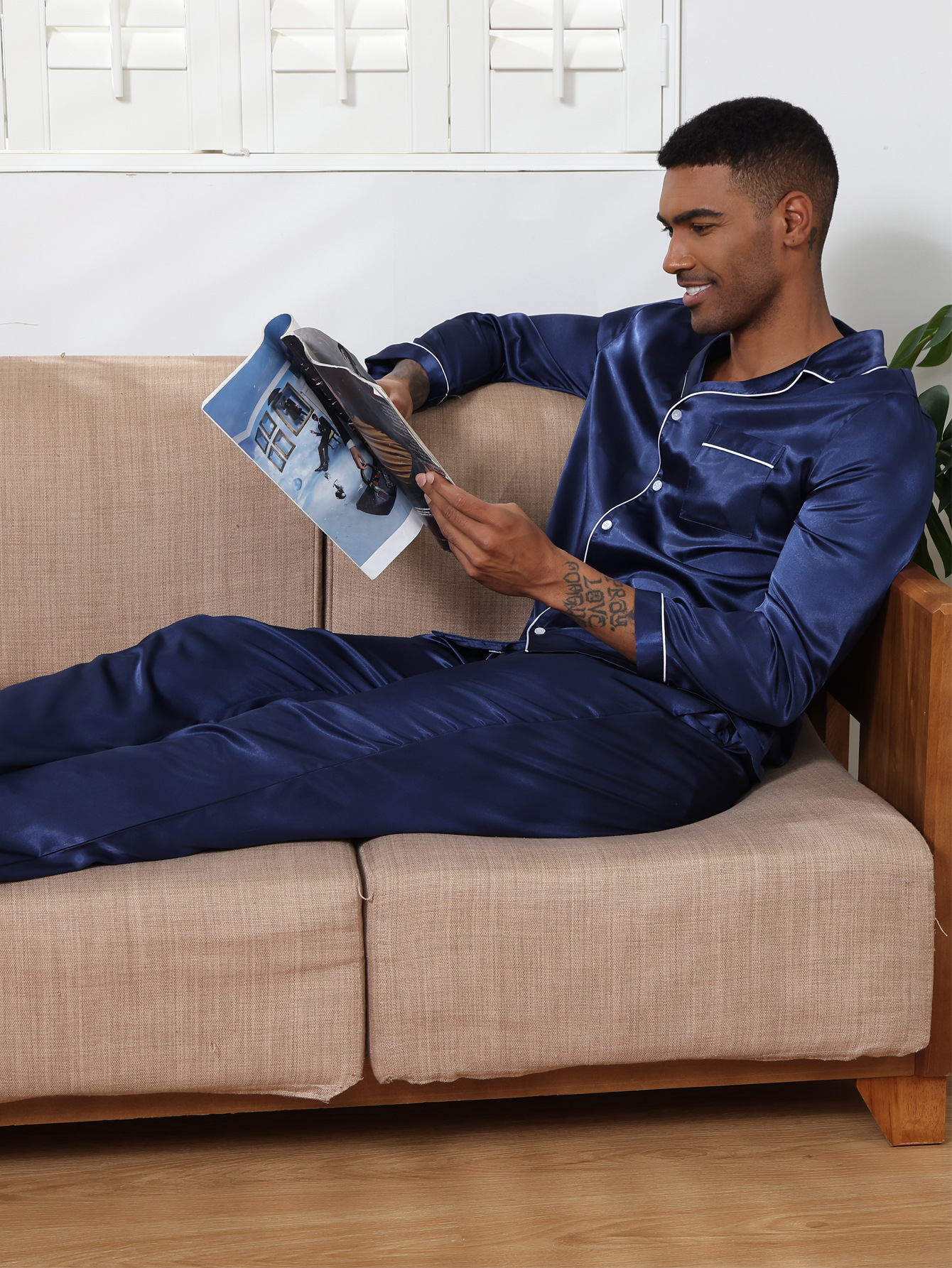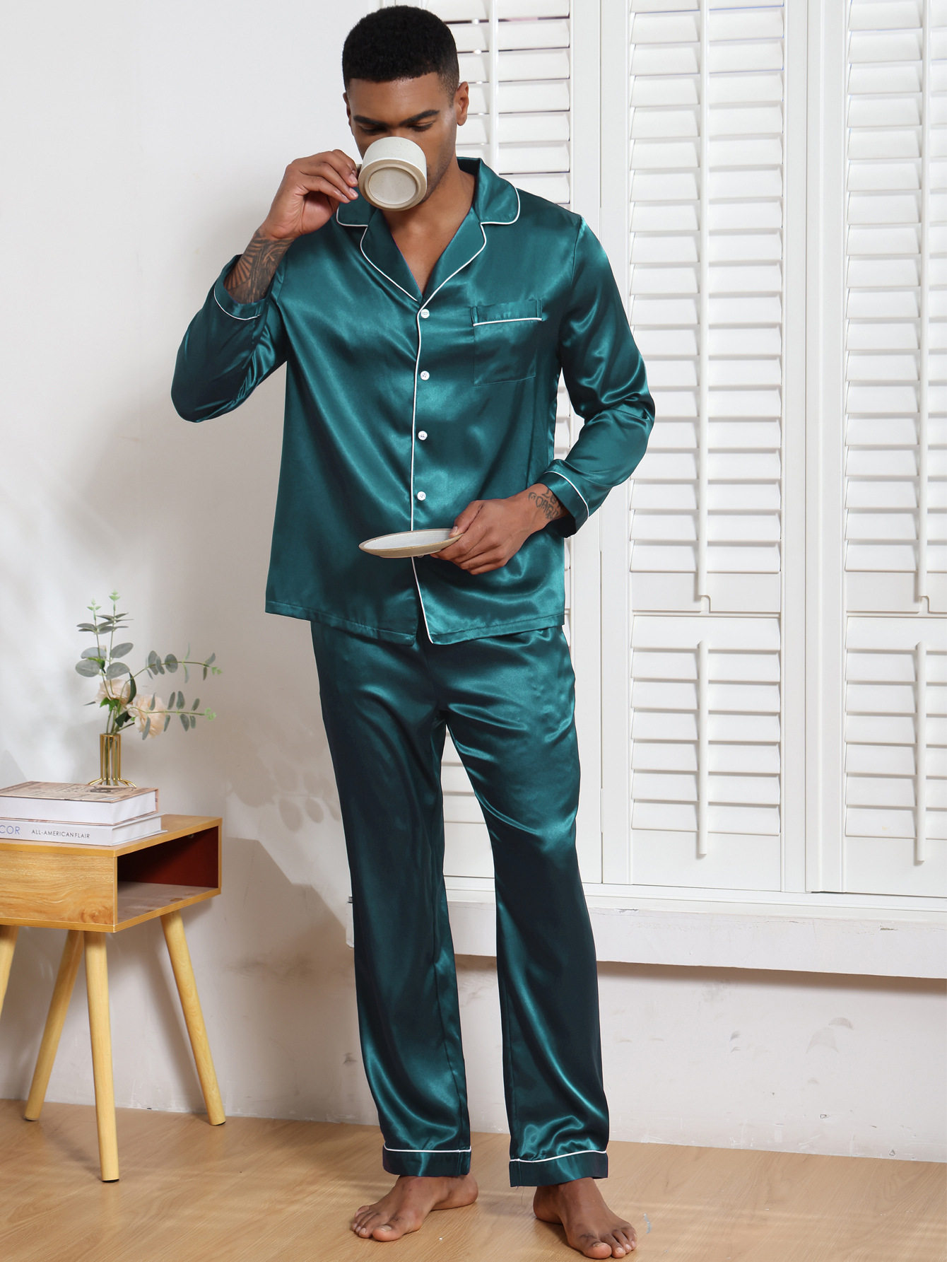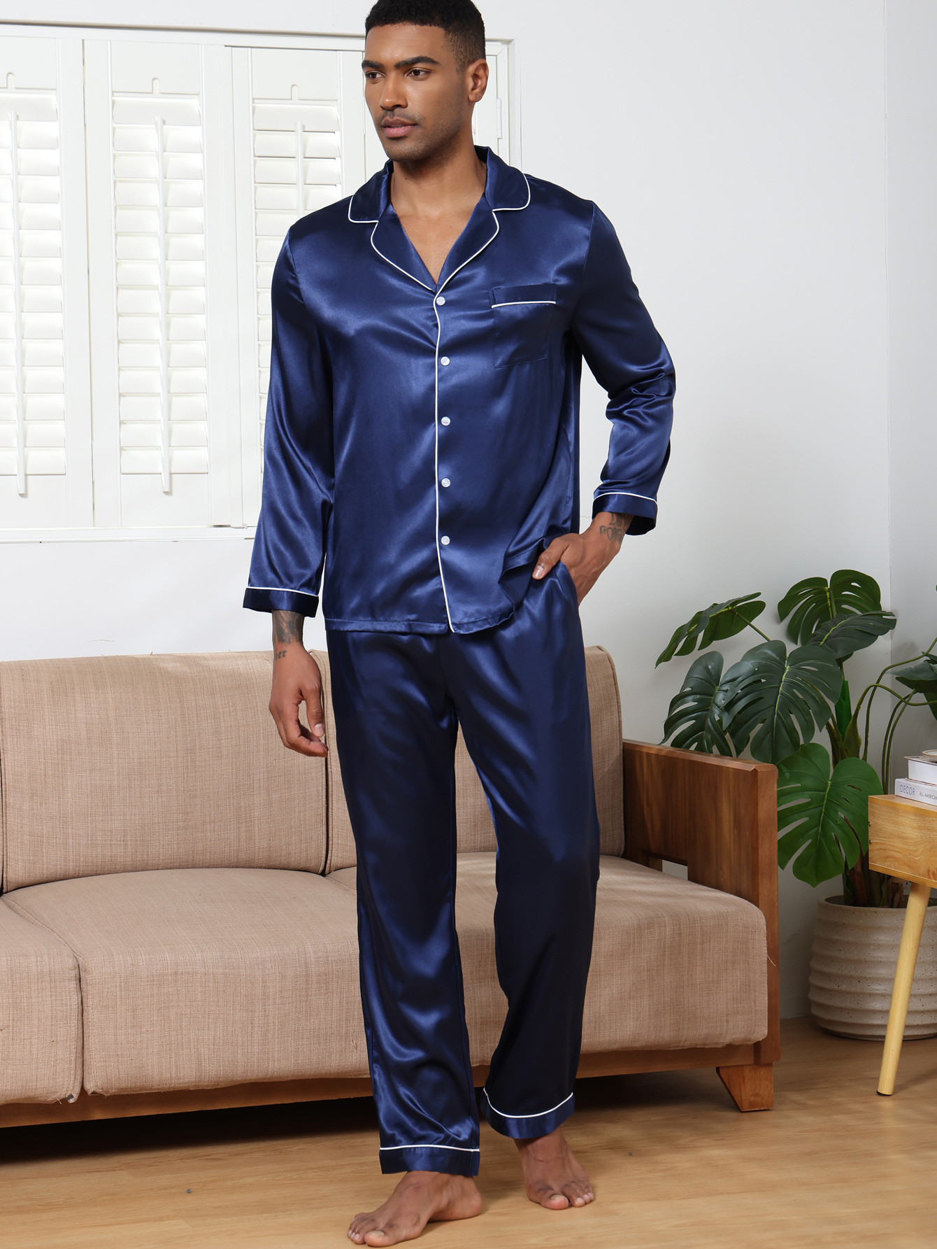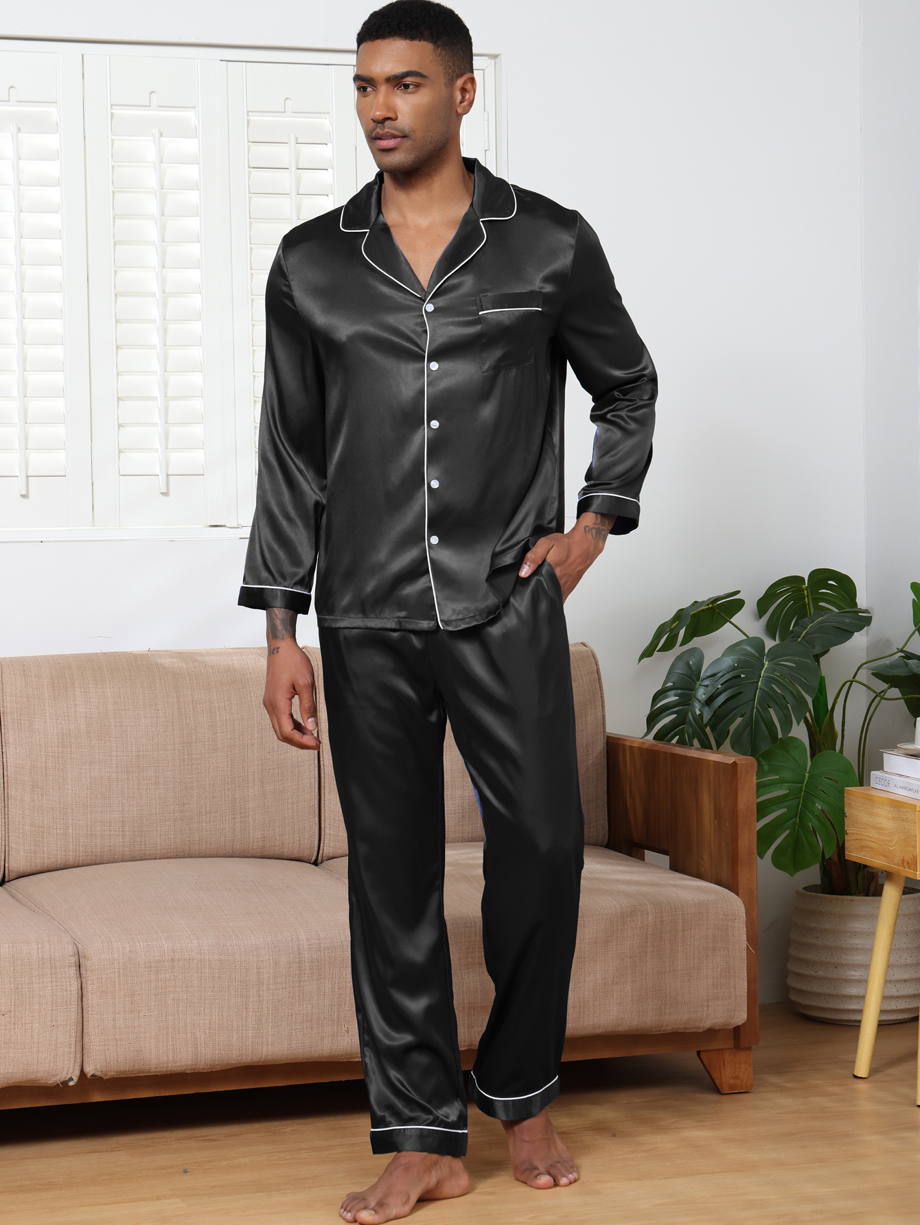 유럽과 미국의 대외 무역 남성 캐주얼 옷깃 캐주얼 봄과 가을 인기 홈웨어 투피스 럭셔리 귀족 잠옷