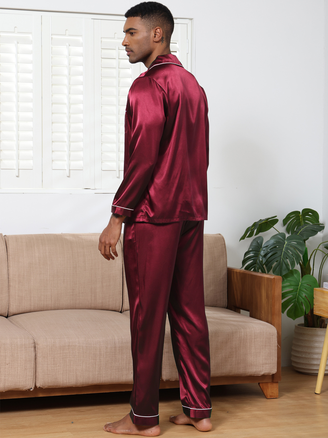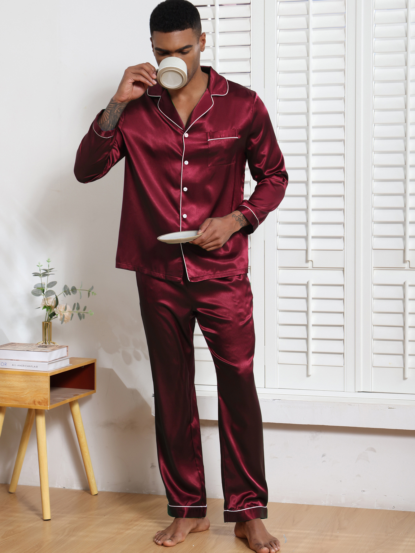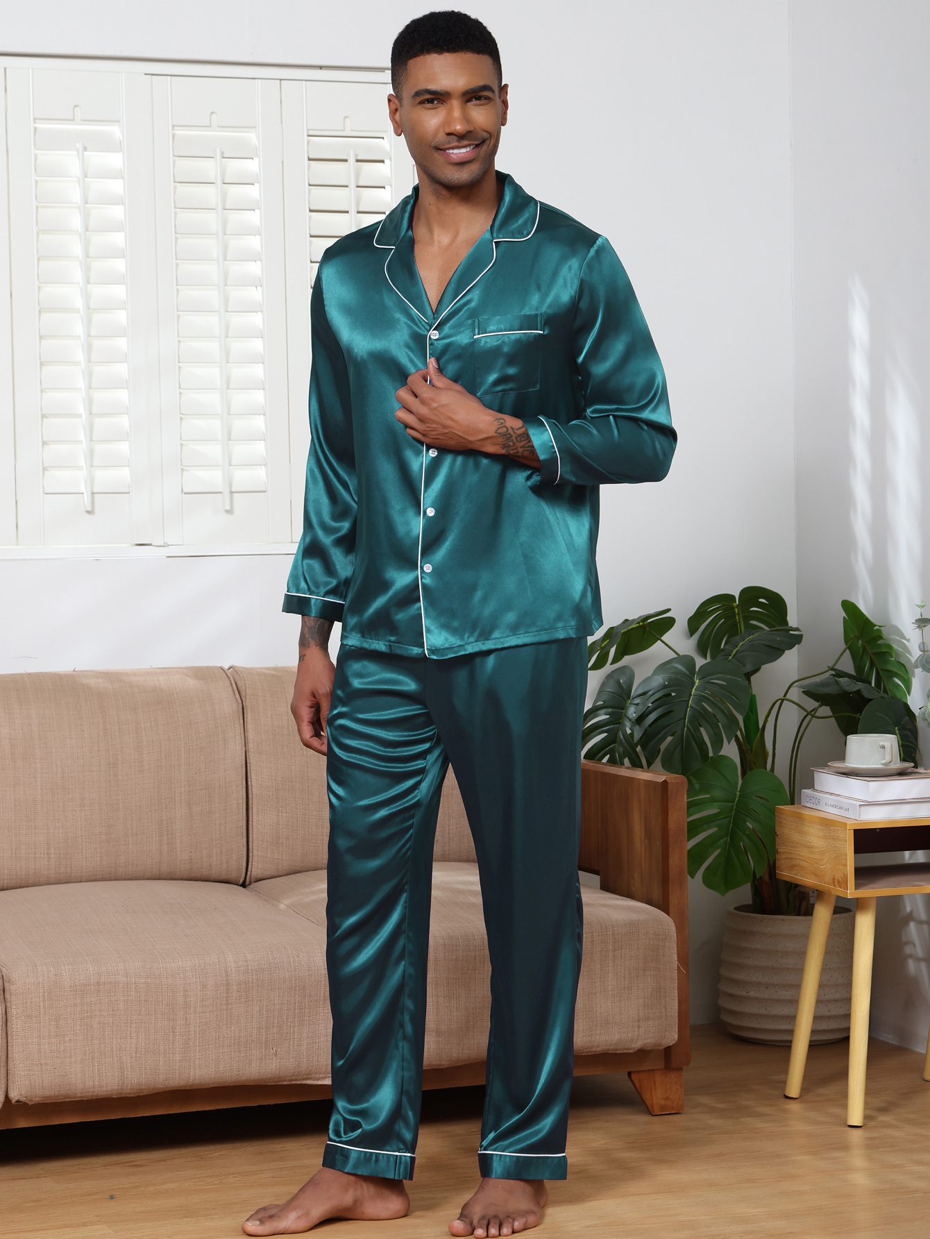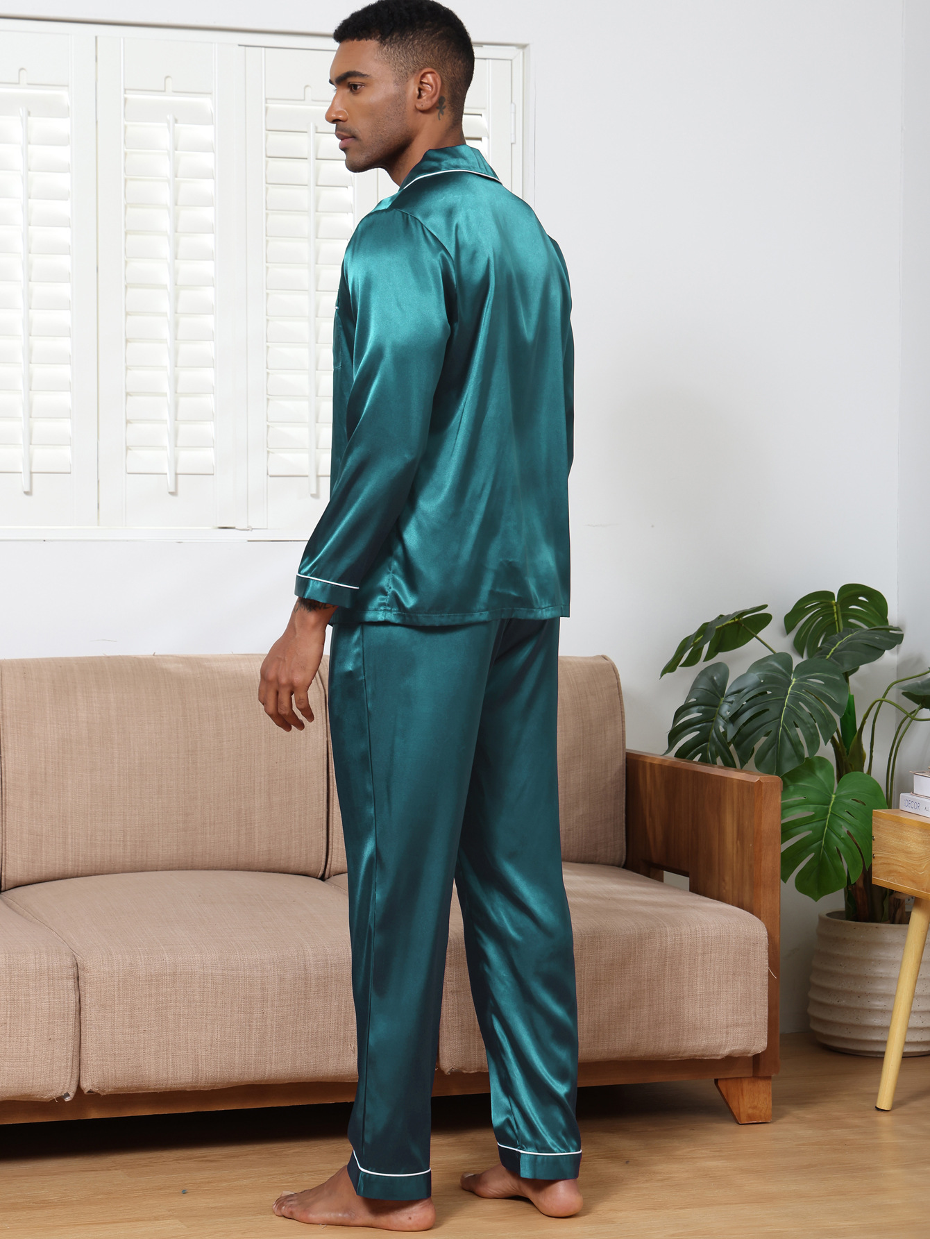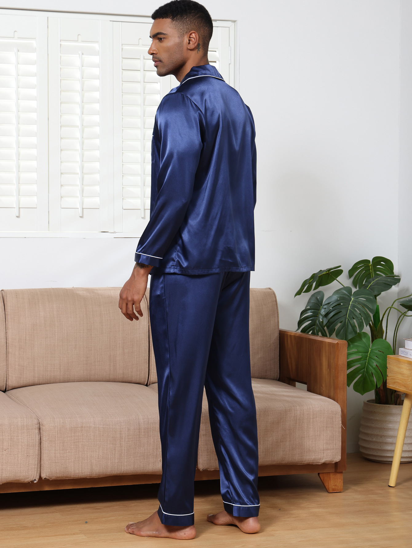 유럽과 미국의 대외 무역 남성 캐주얼 옷깃 캐주얼 봄과 가을 인기 홈웨어 투피스 럭셔리 귀족 잠옷
