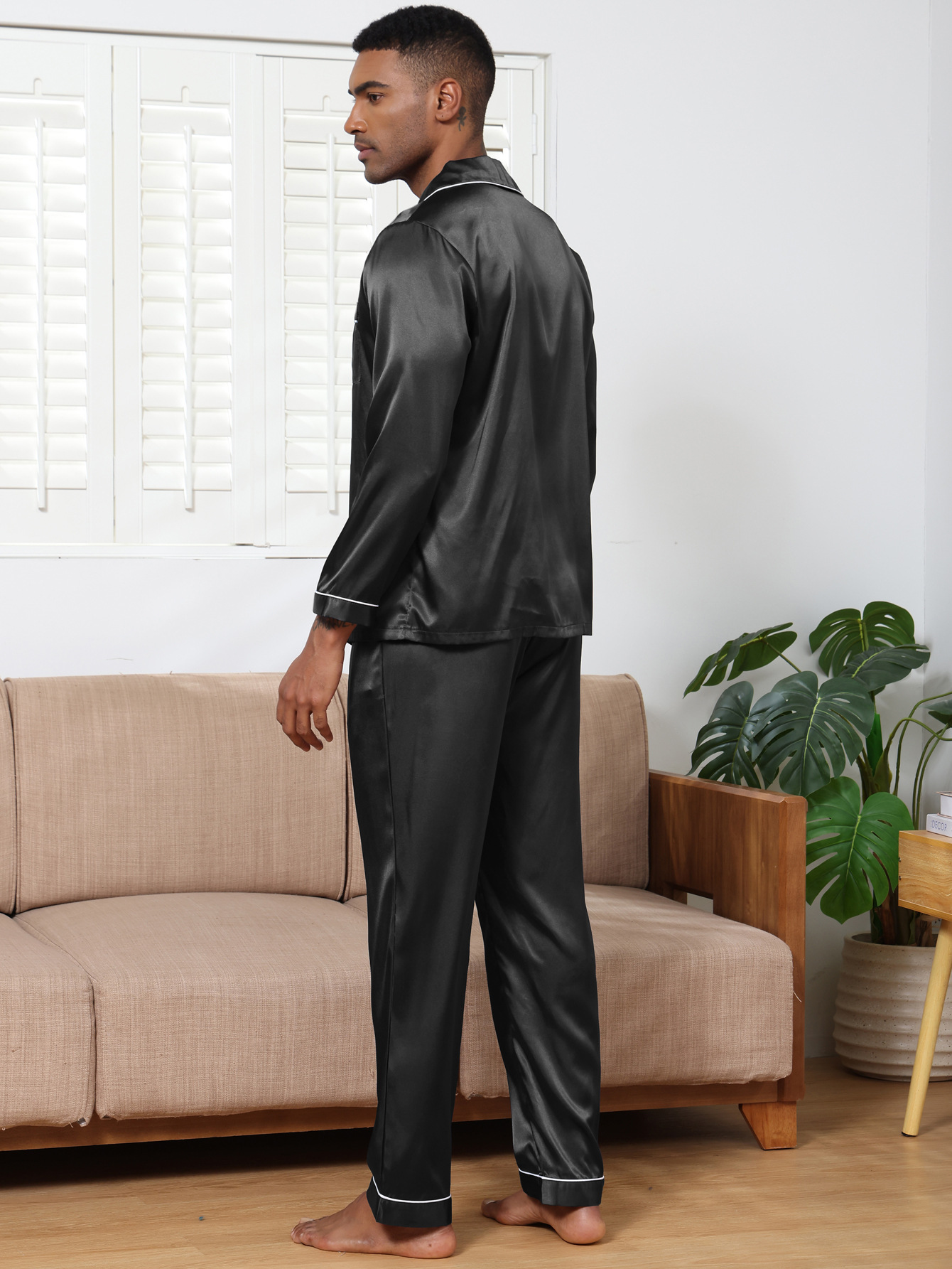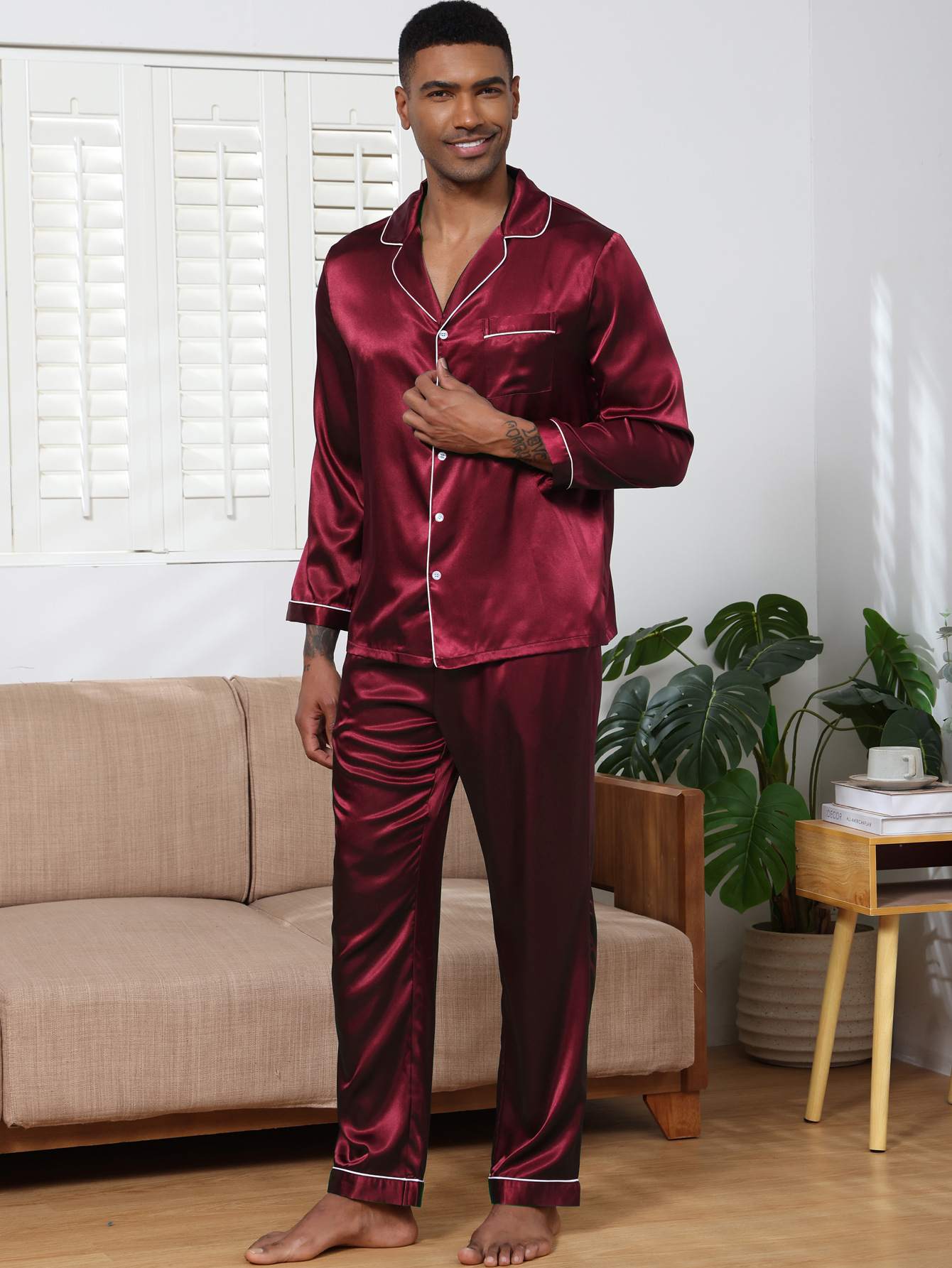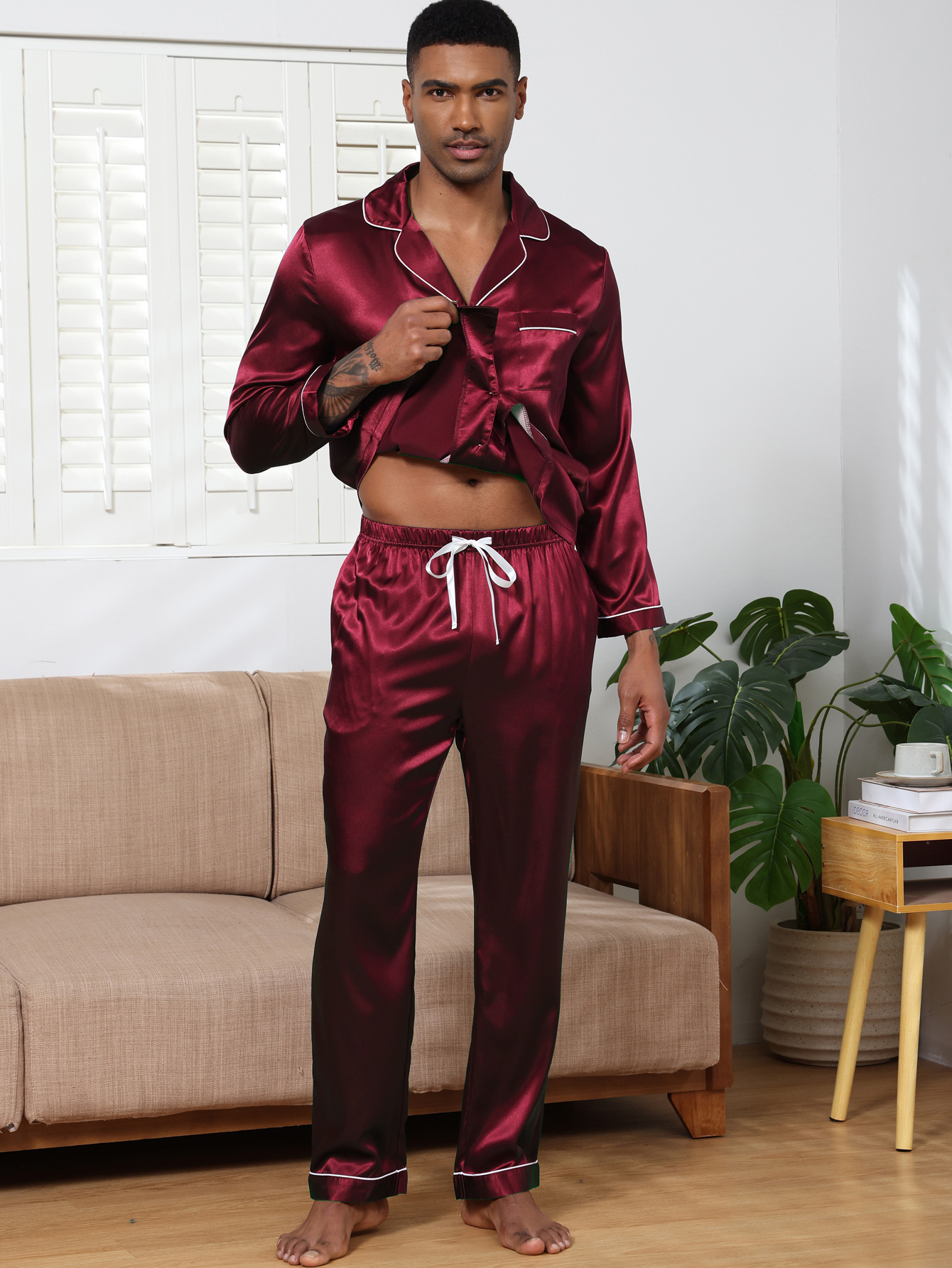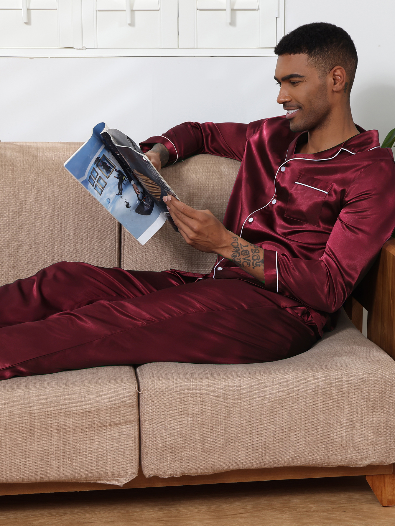 유럽과 미국의 대외 무역 남성 캐주얼 옷깃 캐주얼 봄과 가을 인기 홈웨어 투피스 럭셔리 귀족 잠옷
