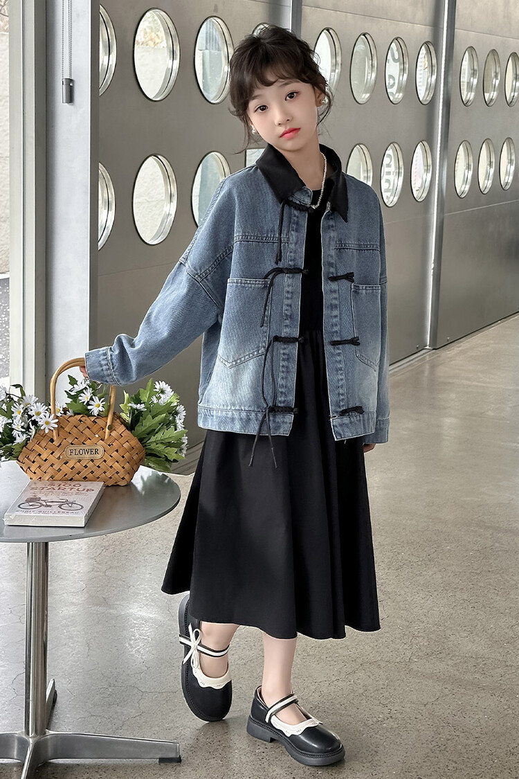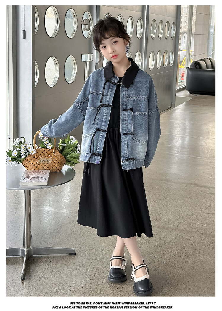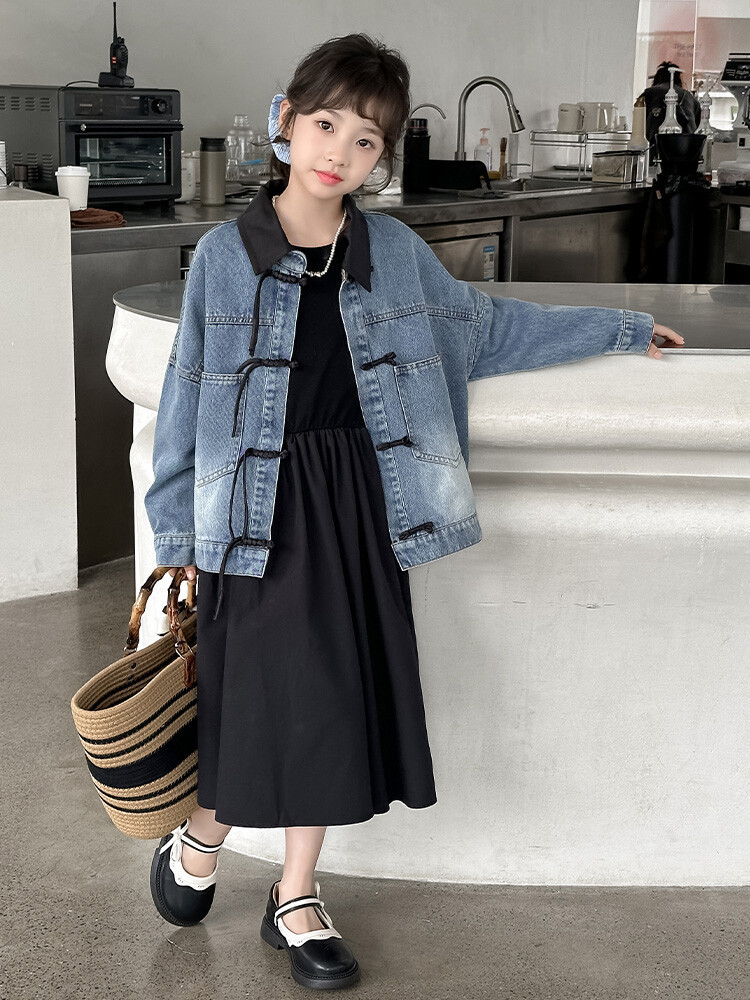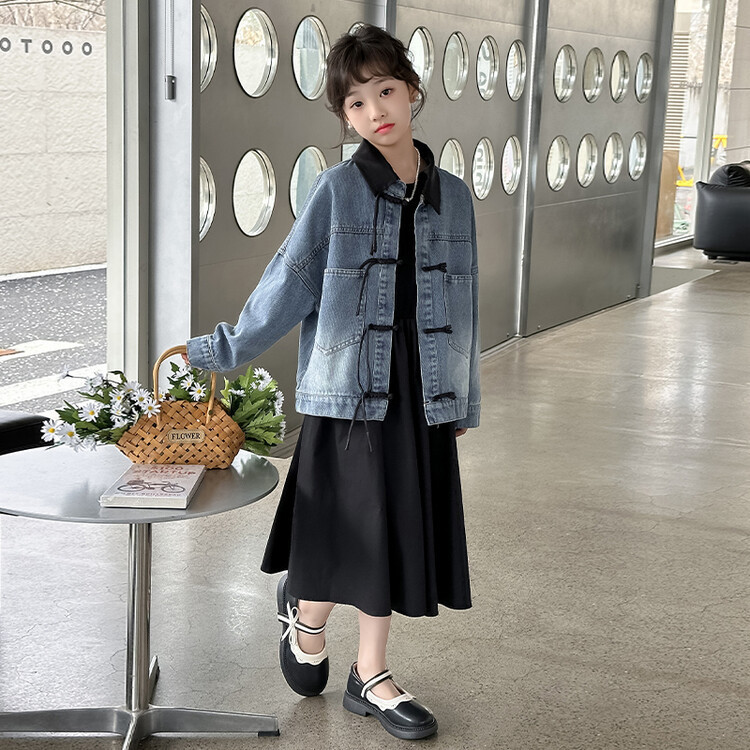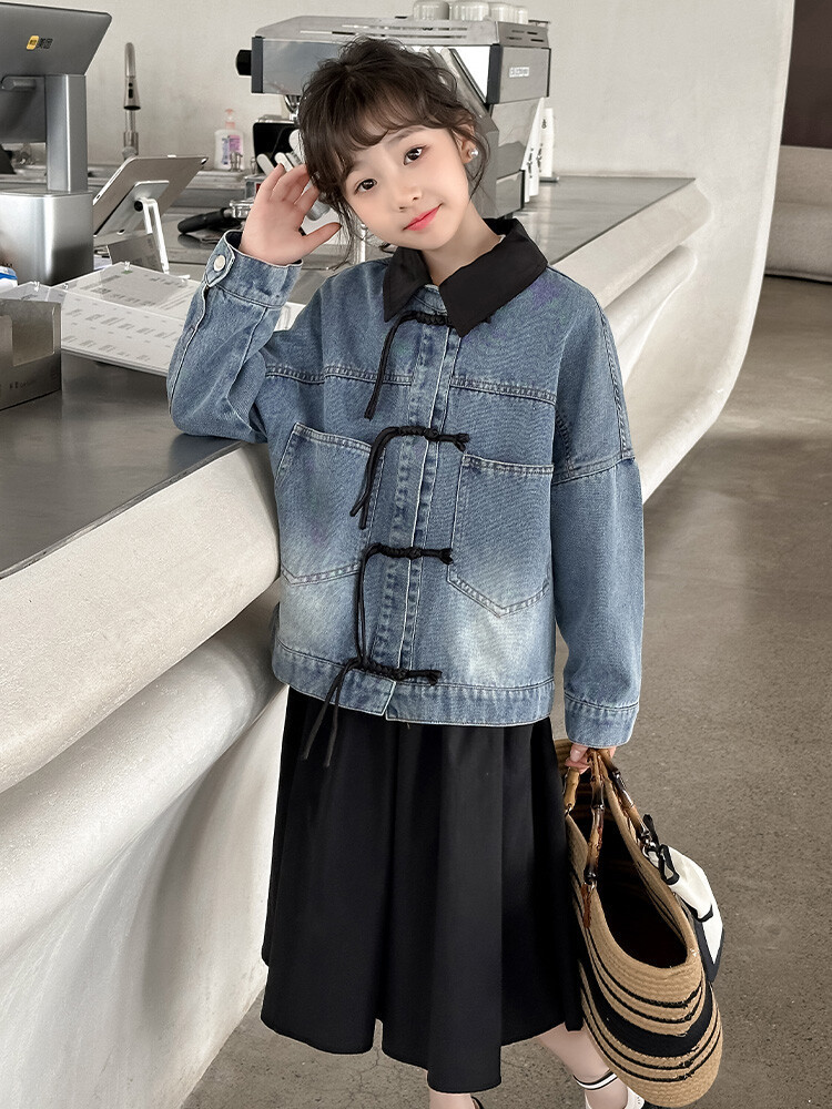 여아 중국식 버튼 코트 봄 패션 아동 데님 탑 2025 새로운 어린 소녀 한국 스타일 서양식 봄