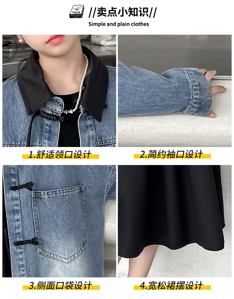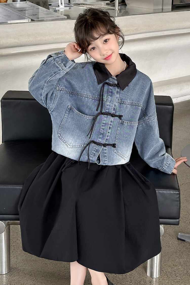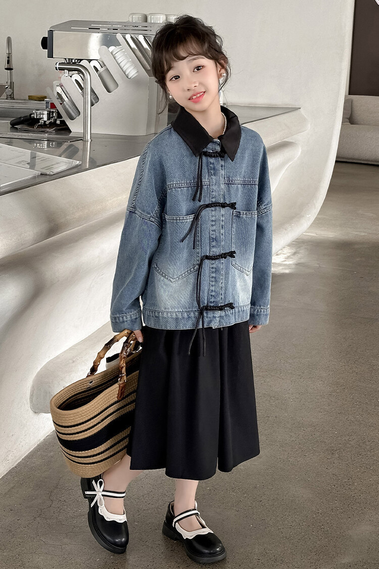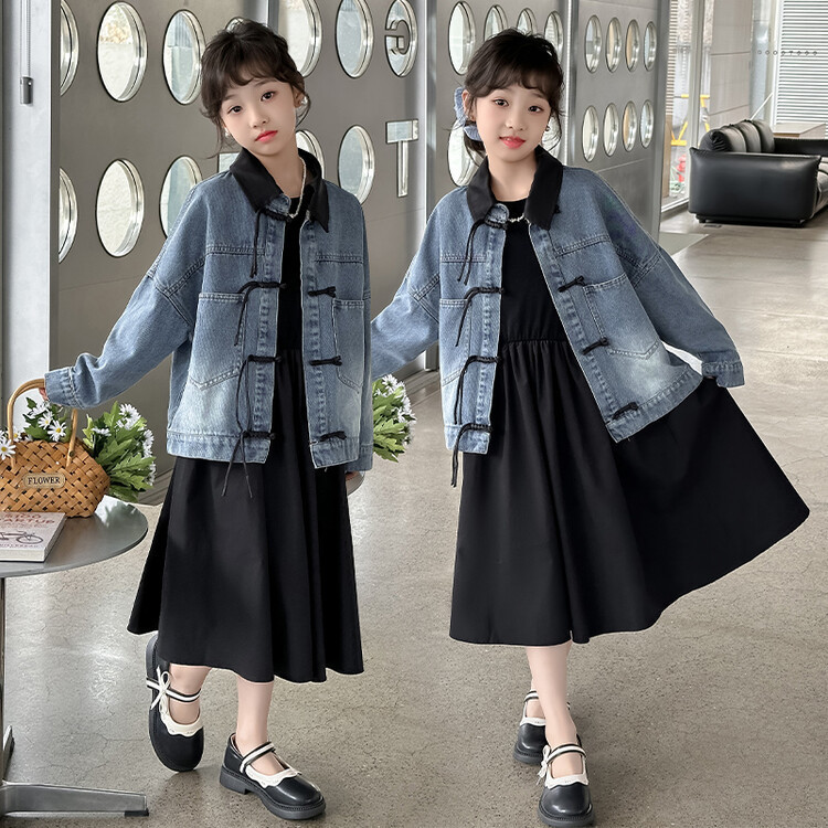 여아 중국식 버튼 코트 봄 패션 아동 데님 탑 2025 새로운 어린 소녀 한국 스타일 서양식 봄