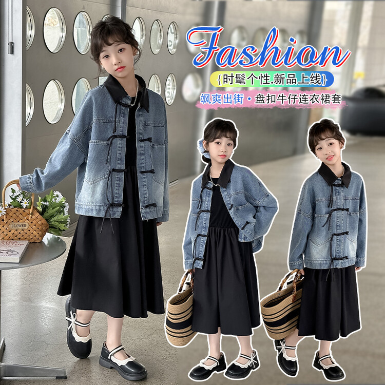 여아 중국식 버튼 코트 봄 패션 아동 데님 탑 2025 새로운 어린 소녀 한국 스타일 서양식 봄스토어 가기