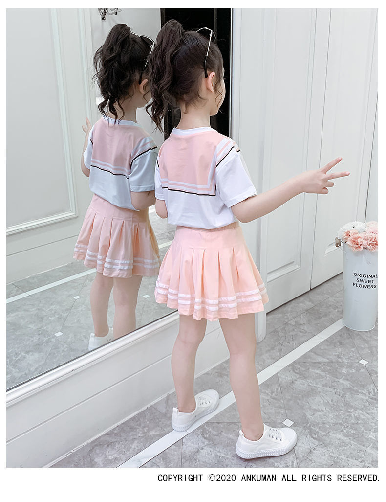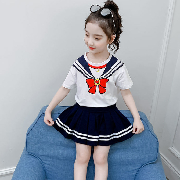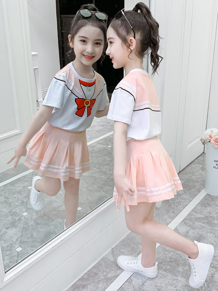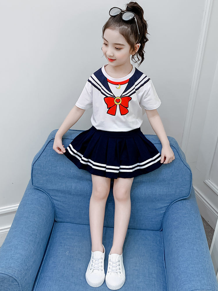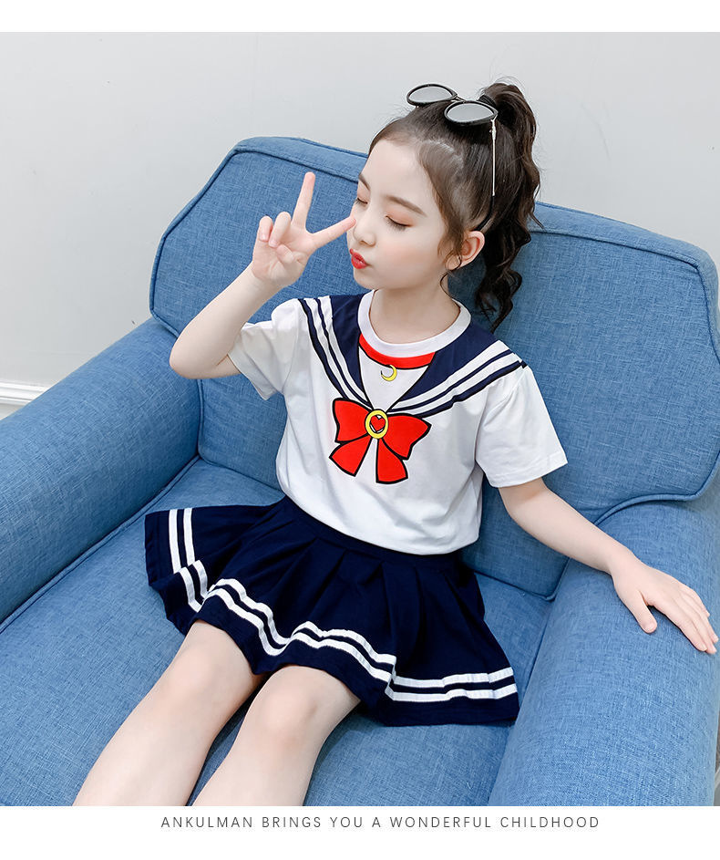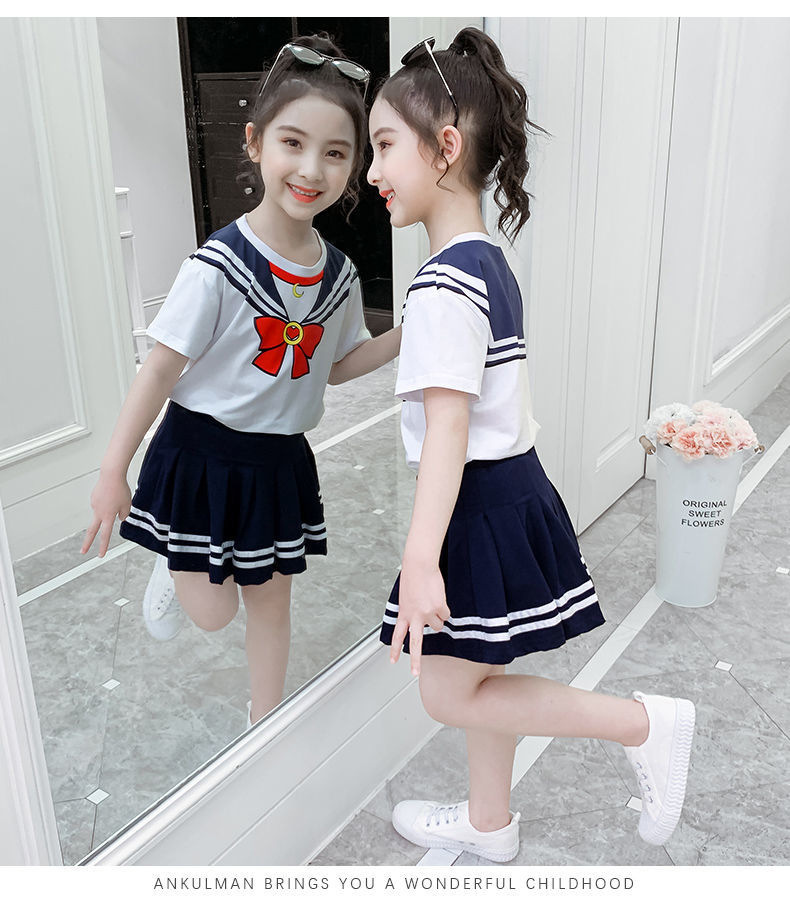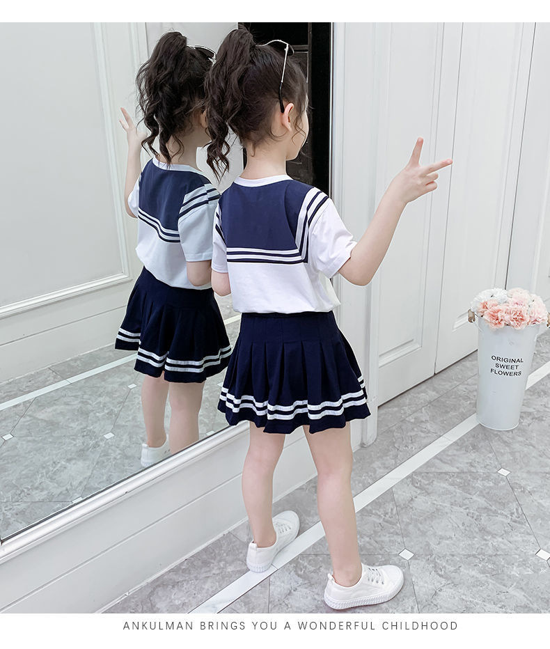 소녀 세트 여름 옷 2024 새로운 온라인 유명인 반팔 어린이 대학 스타일 서양식 JK 유니폼 투피스 플리츠 스커트스토어 가기