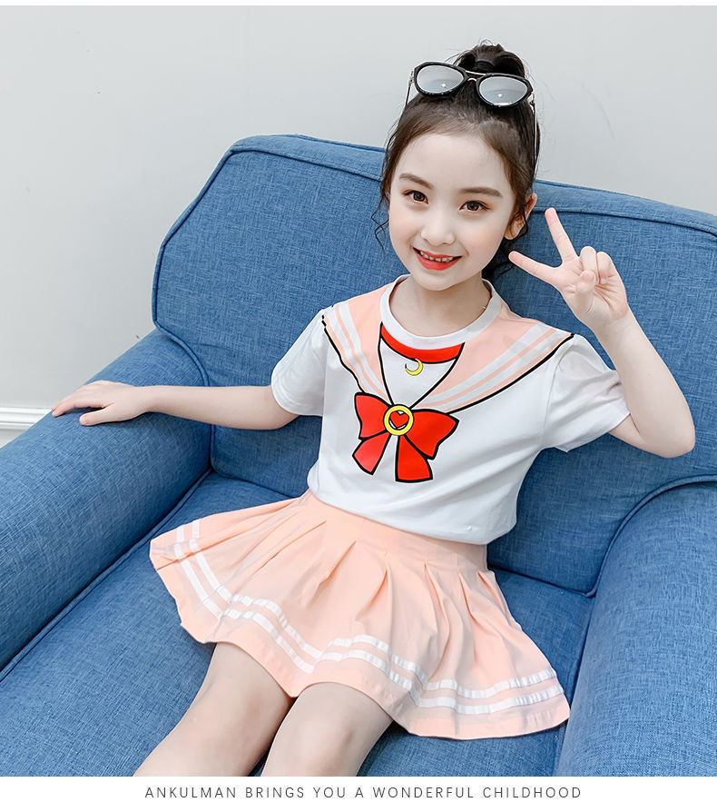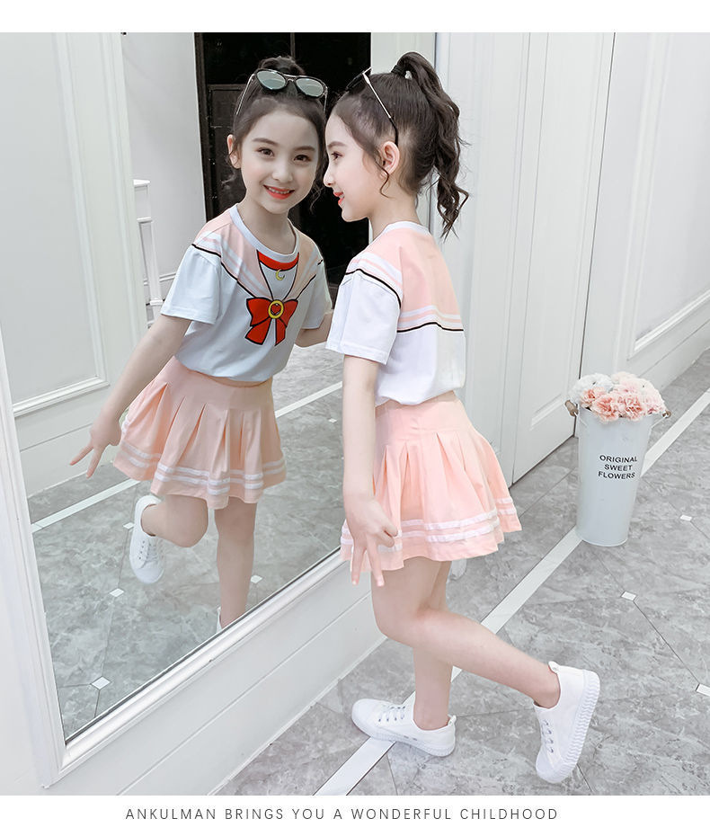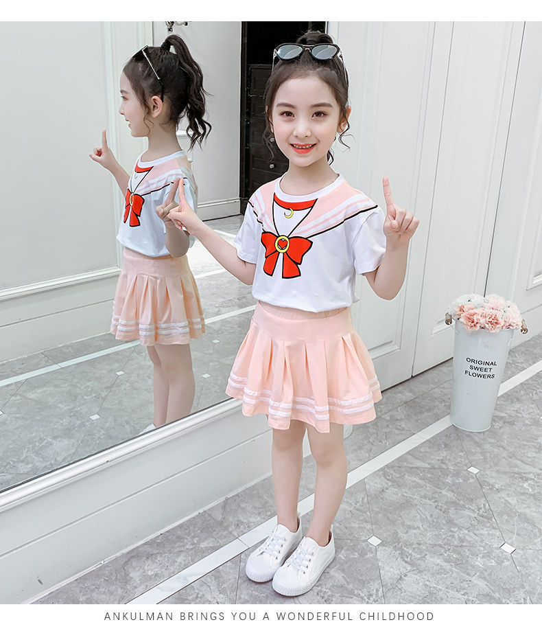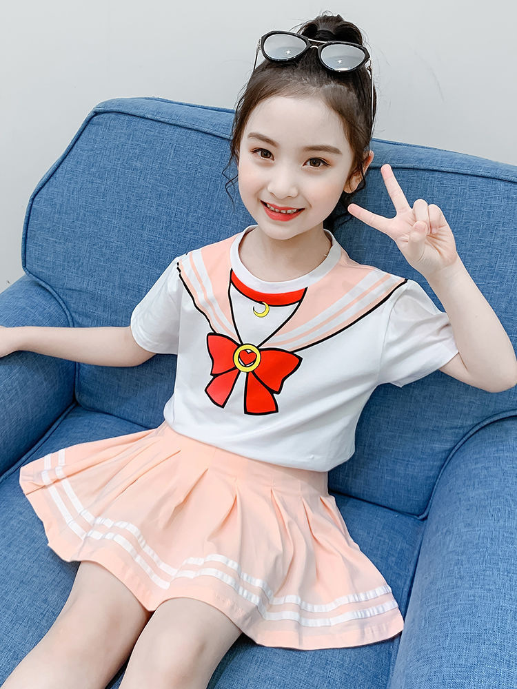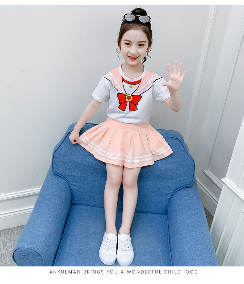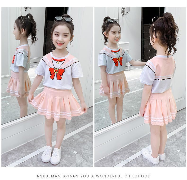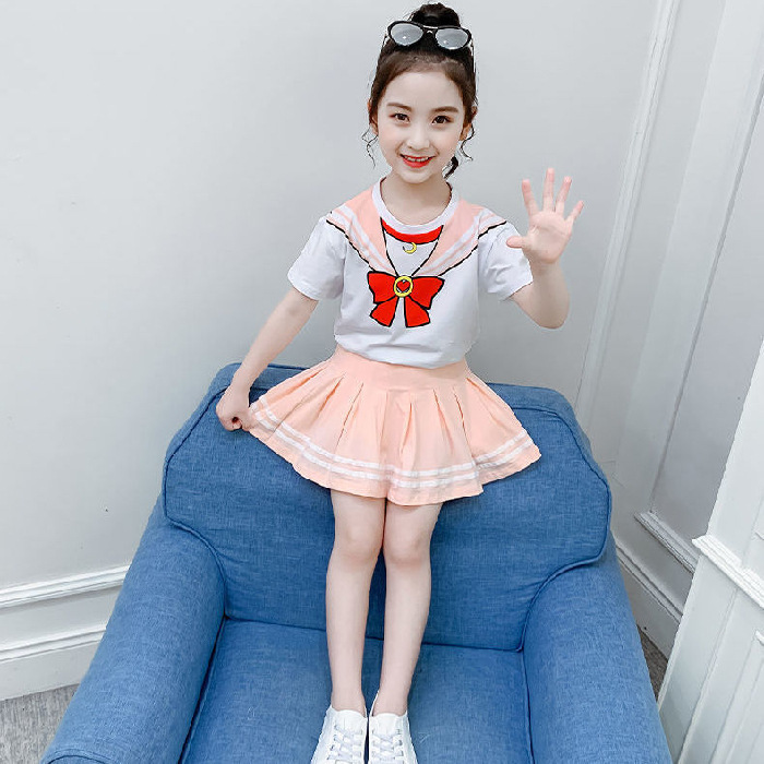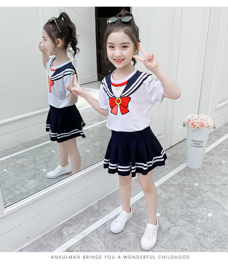 소녀 세트 여름 옷 2024 새로운 온라인 유명인 반팔 어린이 대학 스타일 서양식 JK 유니폼 투피스 플리츠 스커트스토어 가기