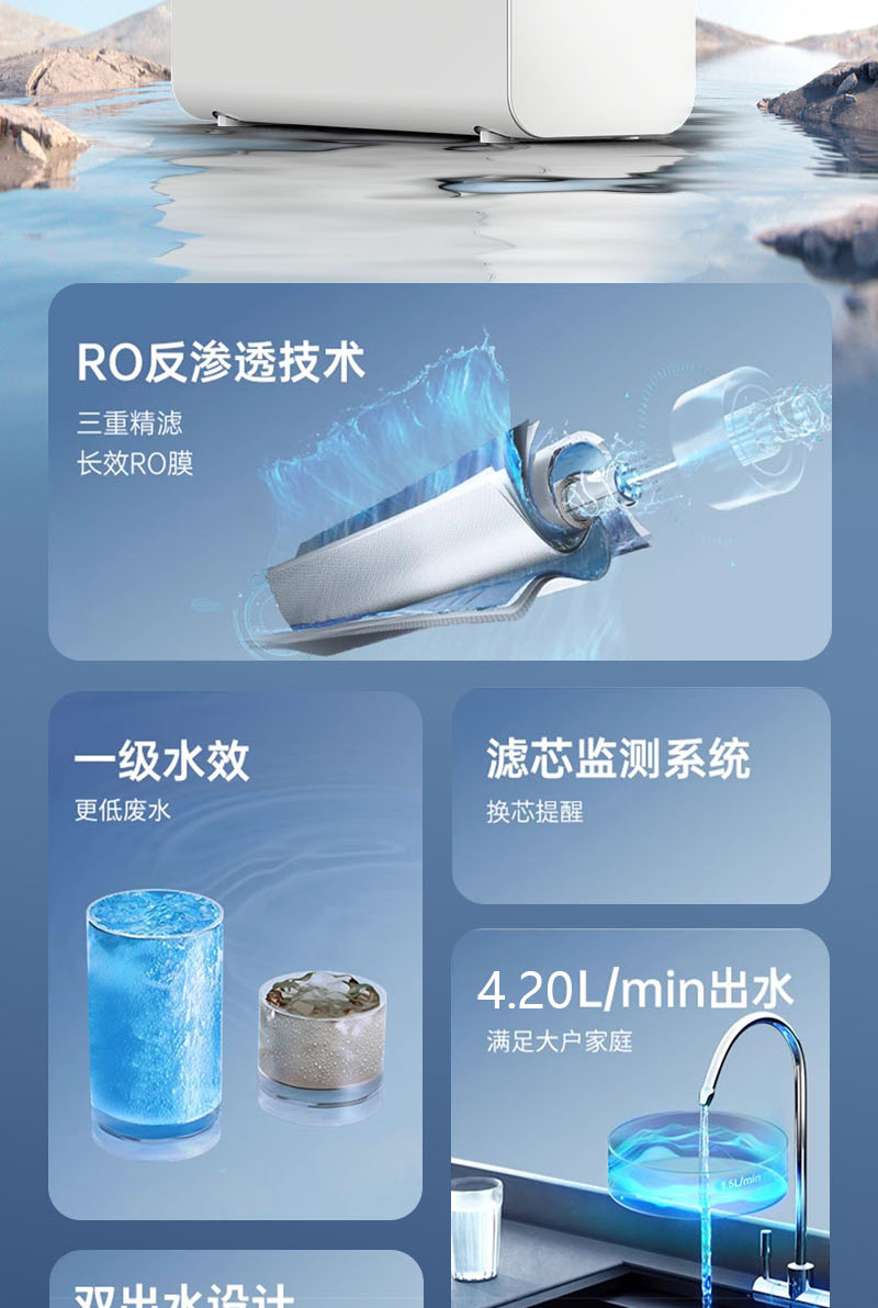 대형 흐름 비 배럴 가정용 RO 역삼 투 직접 음료 필터 8001000G 순수한 물 기계 정수기 원피스 배달스토어 가기