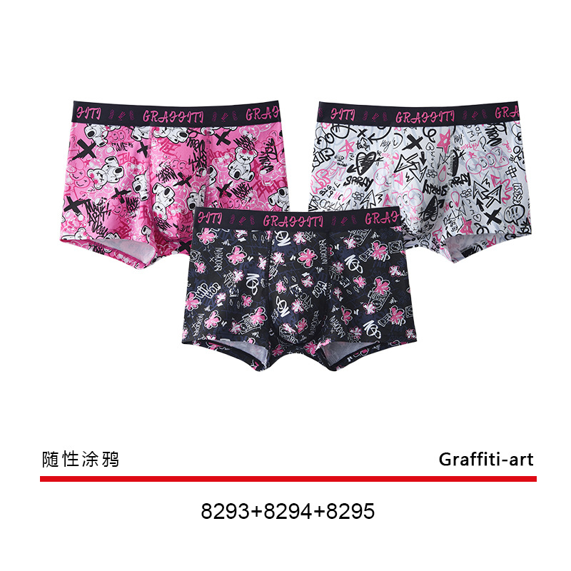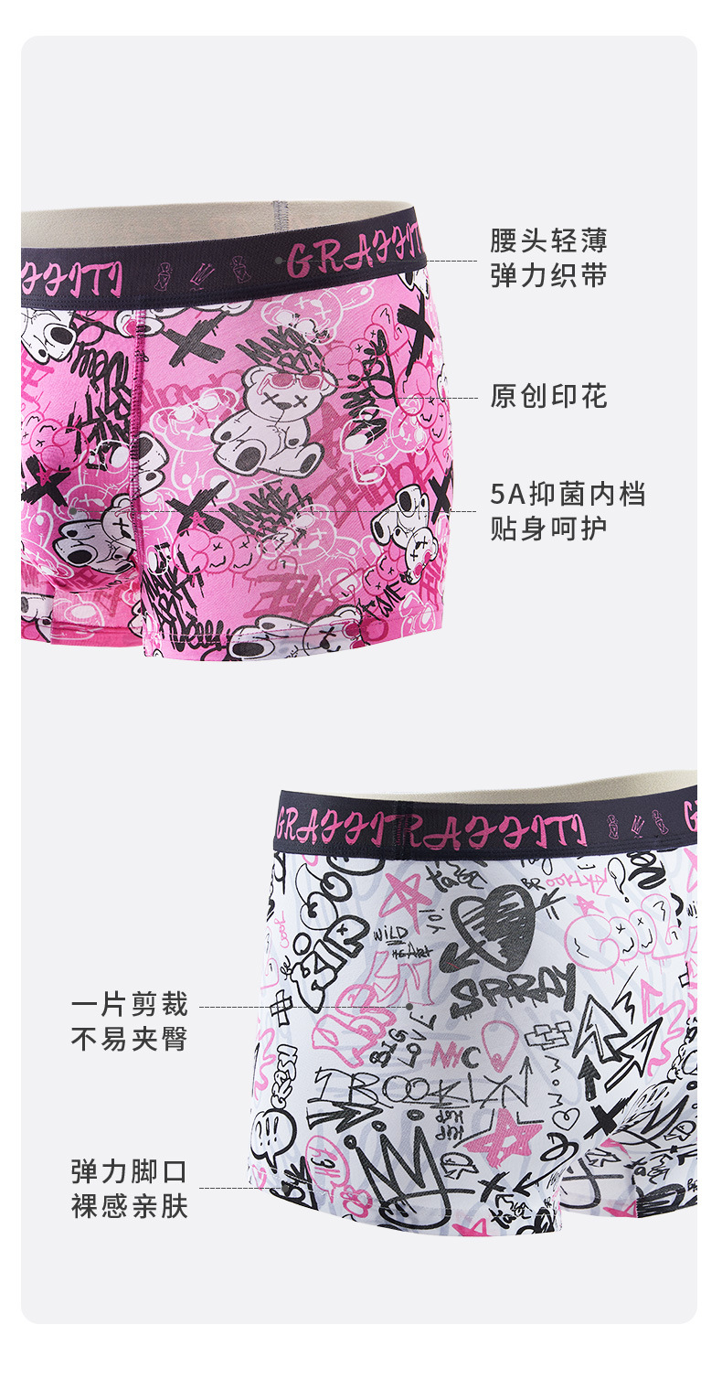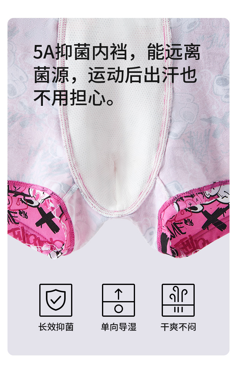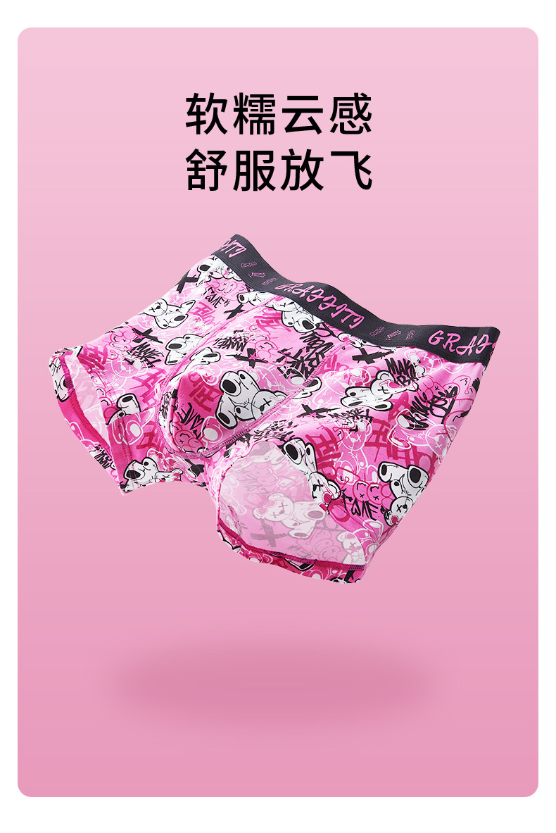 남자 속옷 순면 핑크 남자 만화는 남자 친구 플러스 사이즈 권투 선수를위한 4 코너 항균 성격 트렌드를 인쇄했습니다.