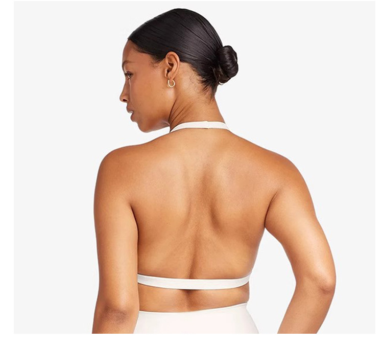 통기성과 충격 방지 기능을 갖춘 유럽 및 미국 스타일의 브이넥 홀터넥 디자인으로 등이 아름다운 여성용 속건성 피트니스 요가 브라 스포츠 브라스토어 가기