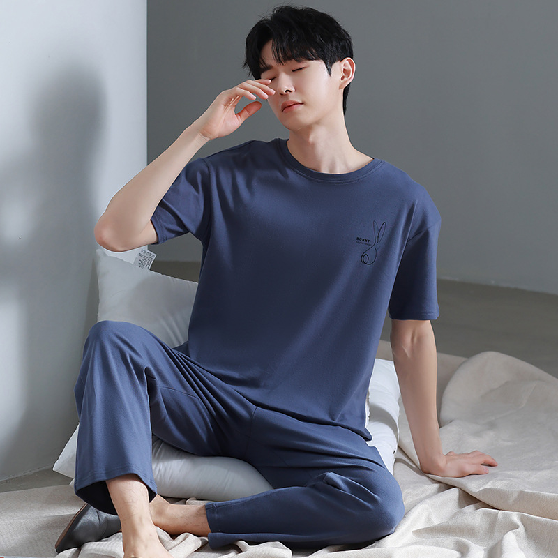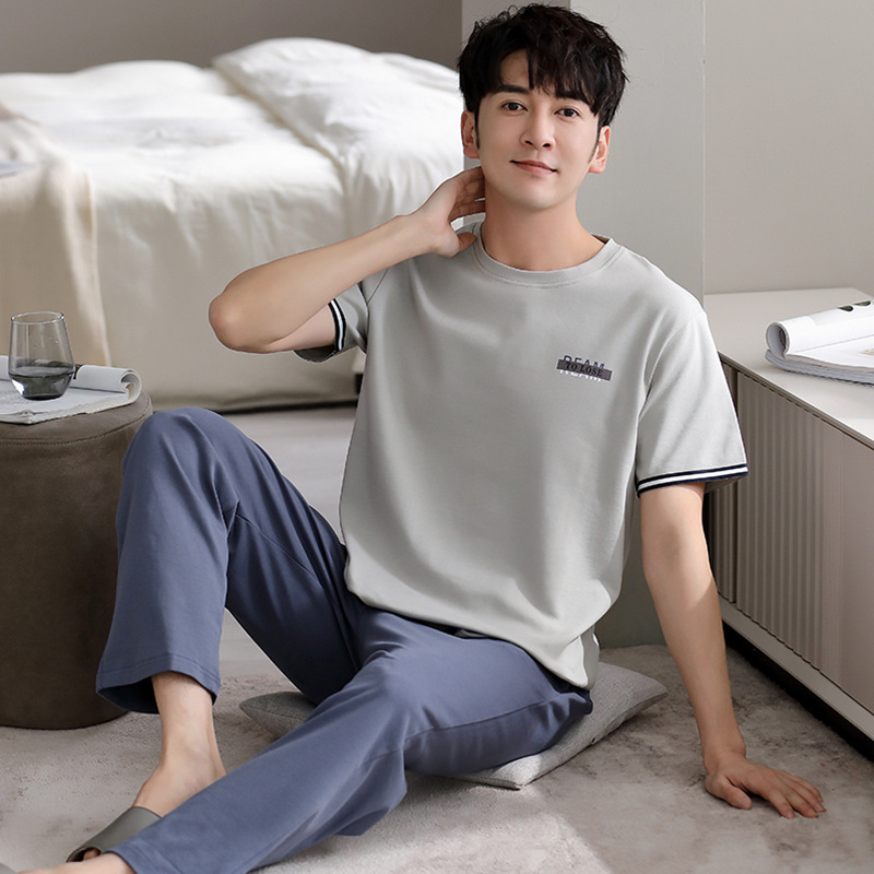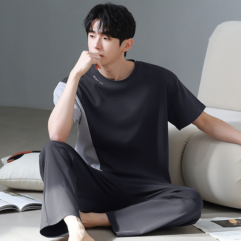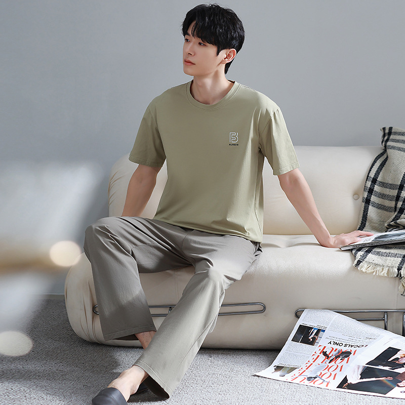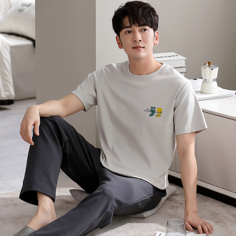 여름 새로운 공장 재고 직접 남성면 잠옷 캐주얼 간단한 느슨한 편안한 홈 웨어는 외부에서 착용 할 수 있습니다스토어 가기