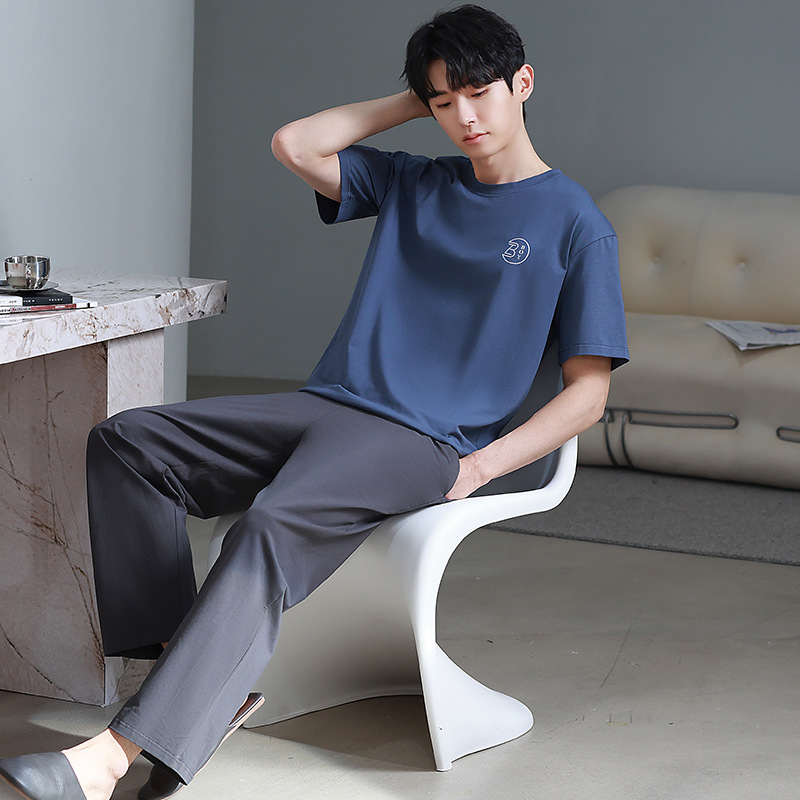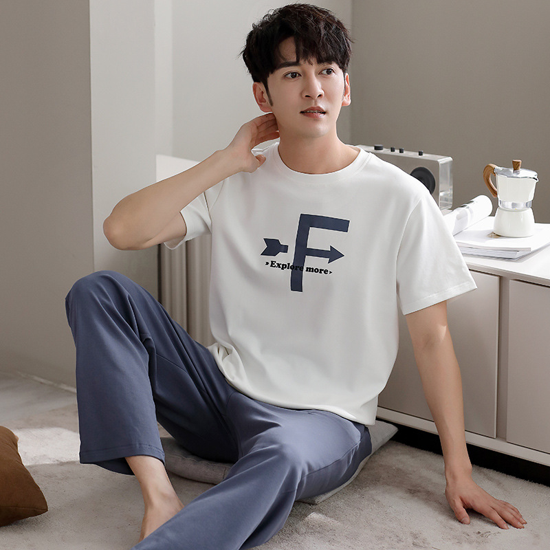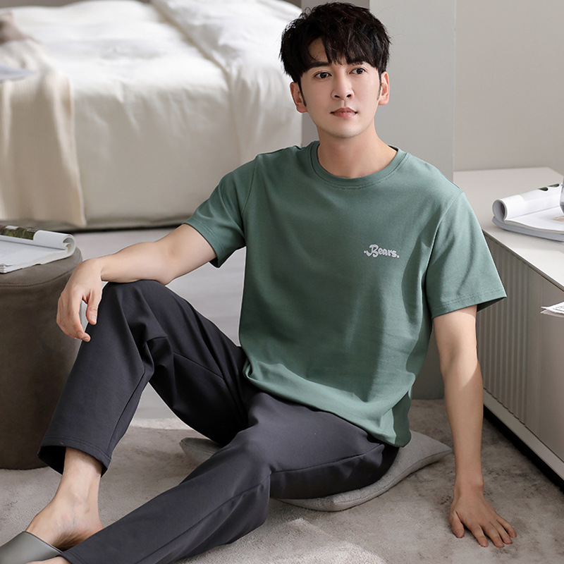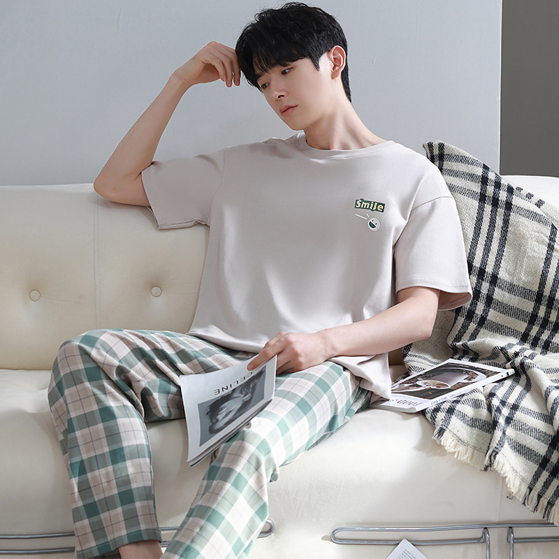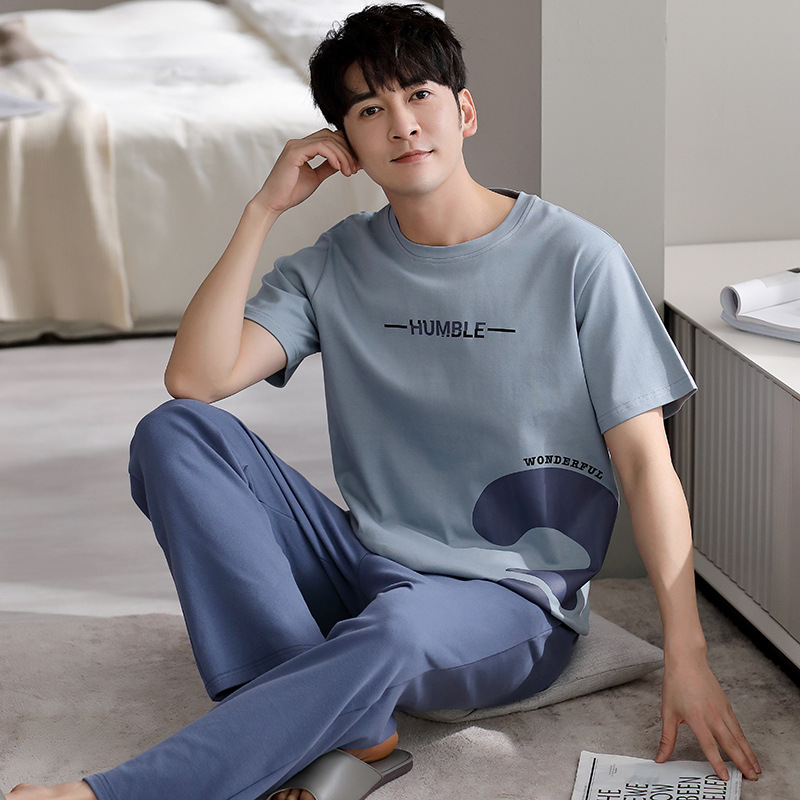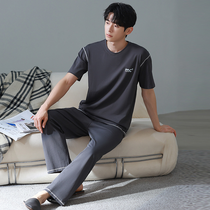 여름 새로운 공장 재고 직접 남성면 잠옷 캐주얼 간단한 느슨한 편안한 홈 웨어는 외부에서 착용 할 수 있습니다스토어 가기