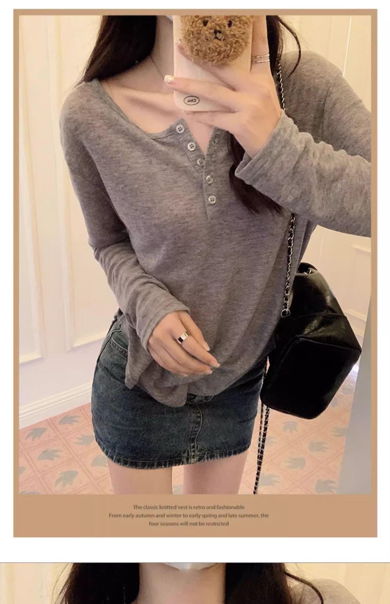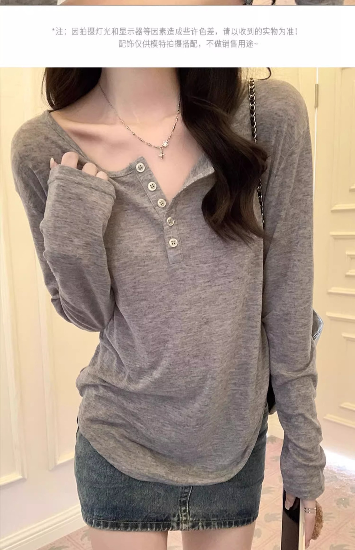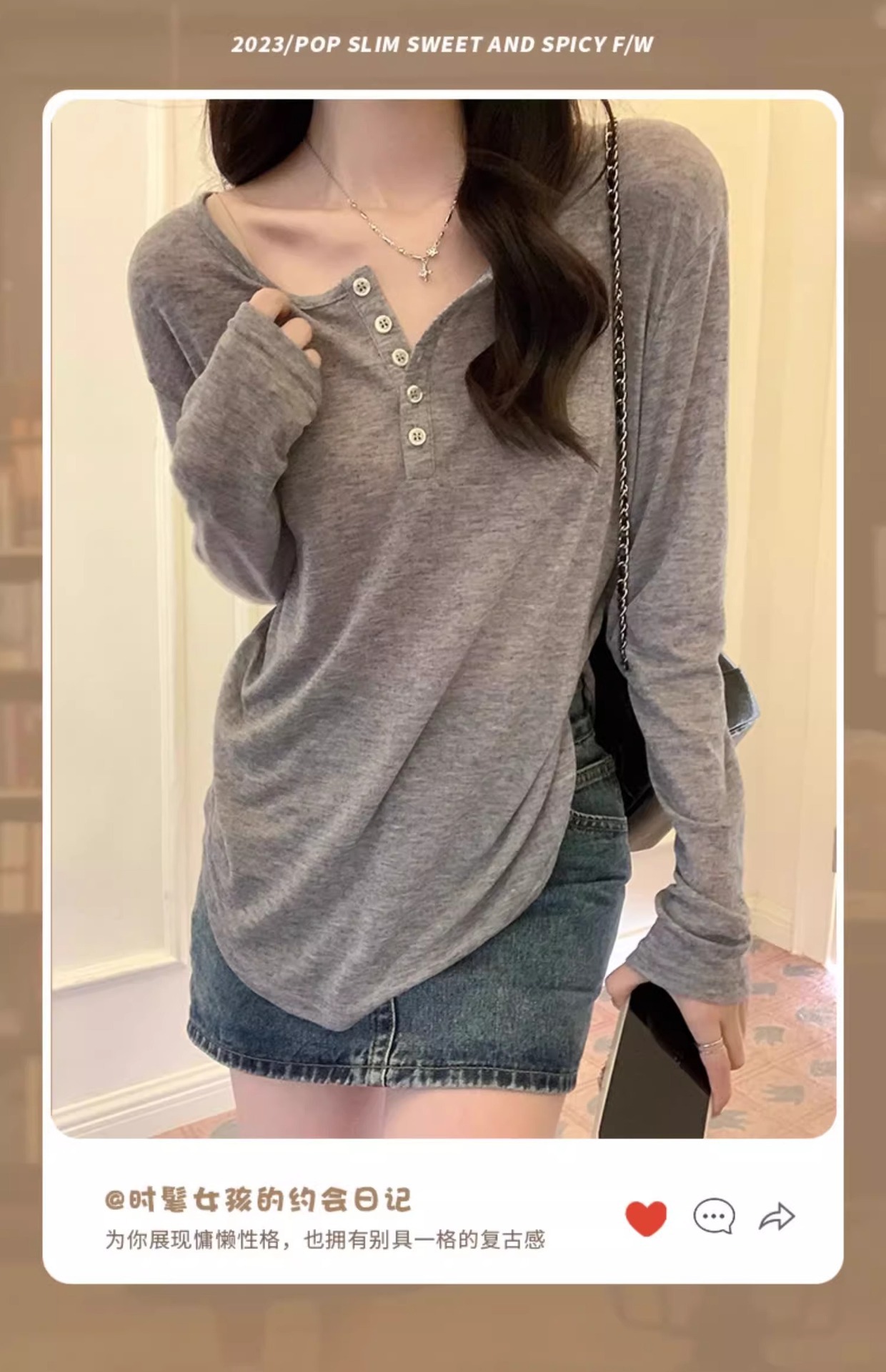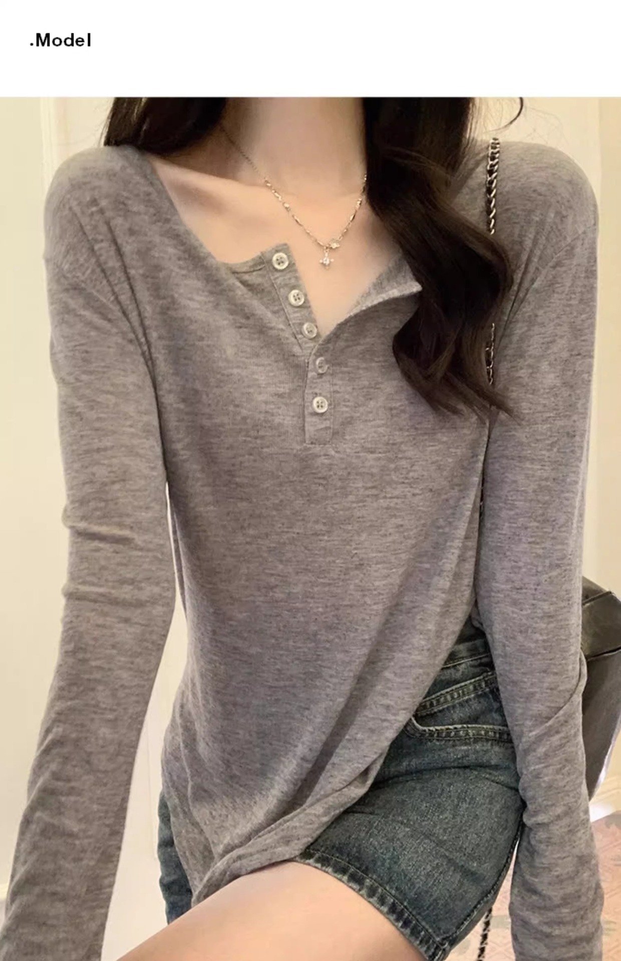 한국식 느슨한 게으른 스타일 긴팔 티셔츠 여성 봄과 여름 새로운 디자인 감각 반 오픈 칼라 섹시한 순수한 겉옷을 입고 싶어스토어 가기