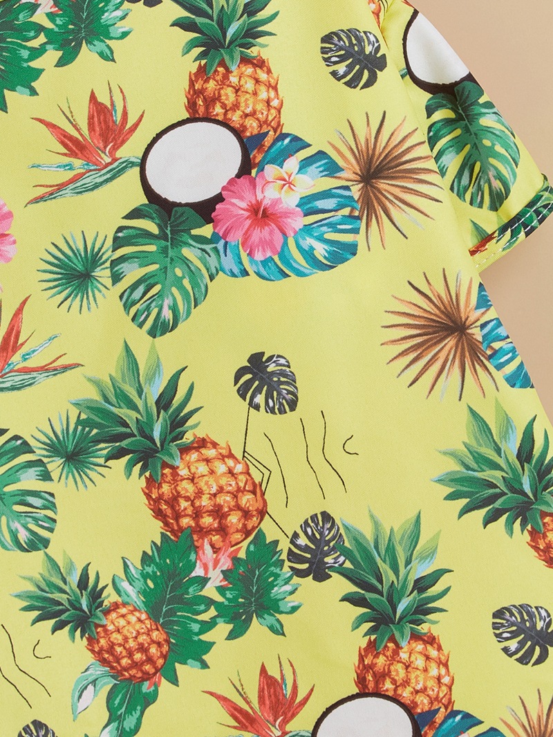 产品介绍:夏威夷衬衫,宽松舒适廓形,翻领领口设计