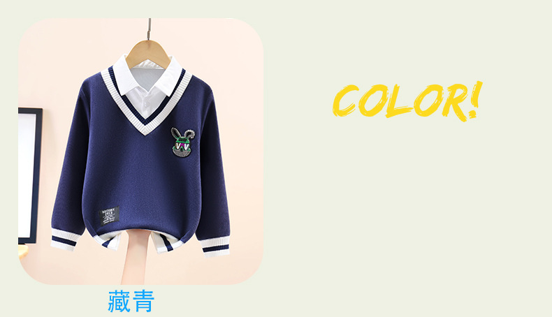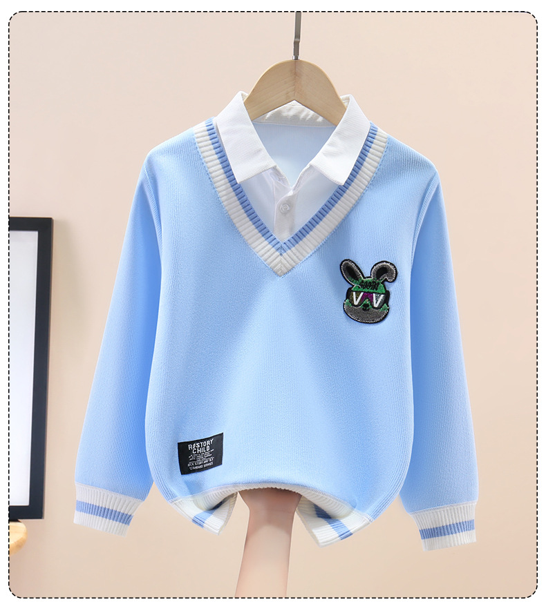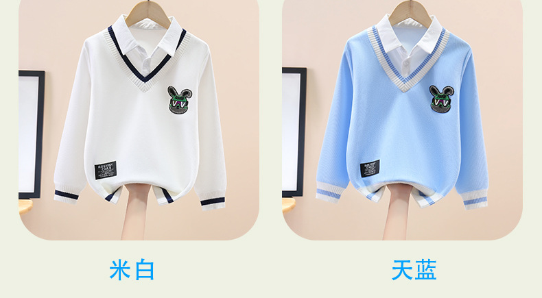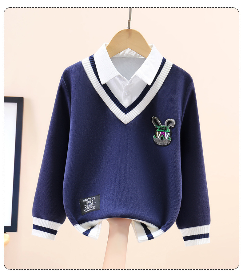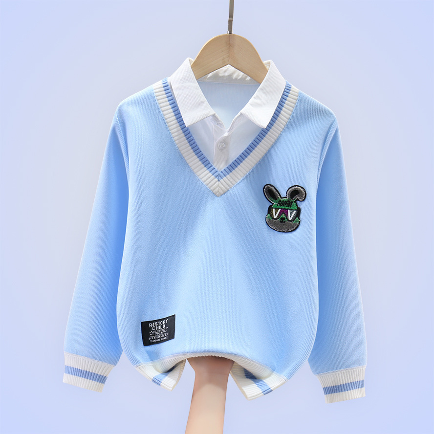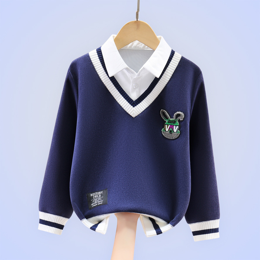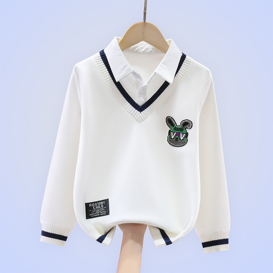 어린이 스웨터 소년의 가짜 투피스 잘 생긴 소년의 봄과 가을 스웨터 칼라 풀오버 바닥 셔츠 2024스토어 가기