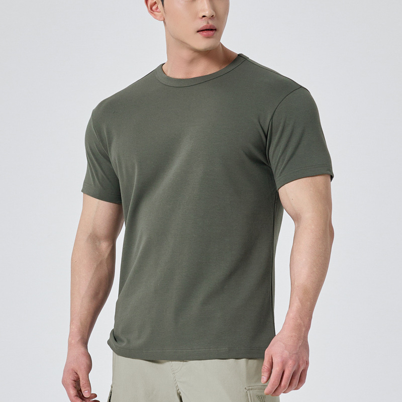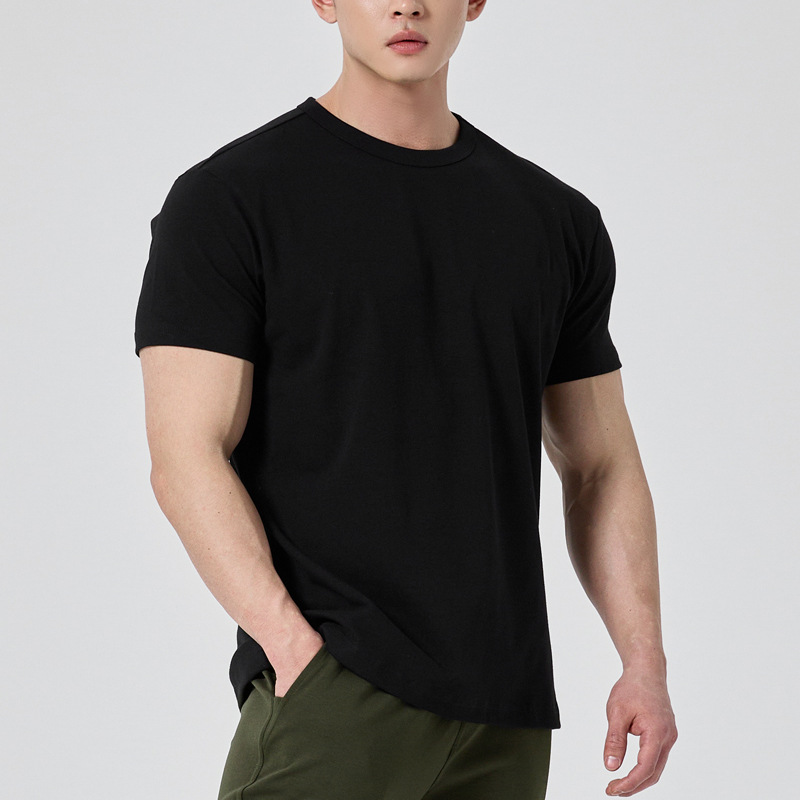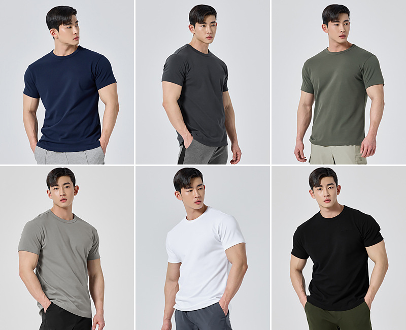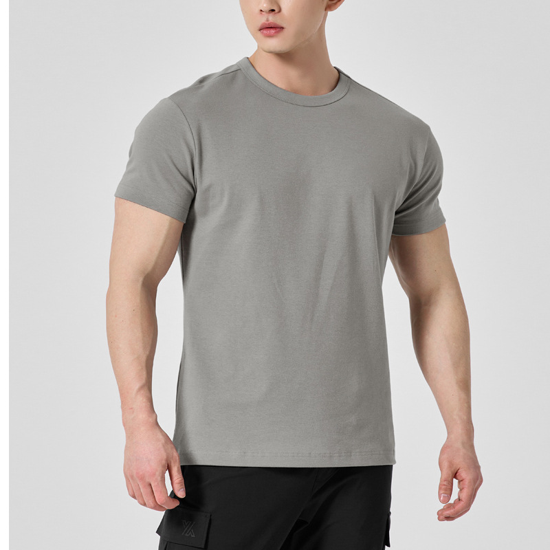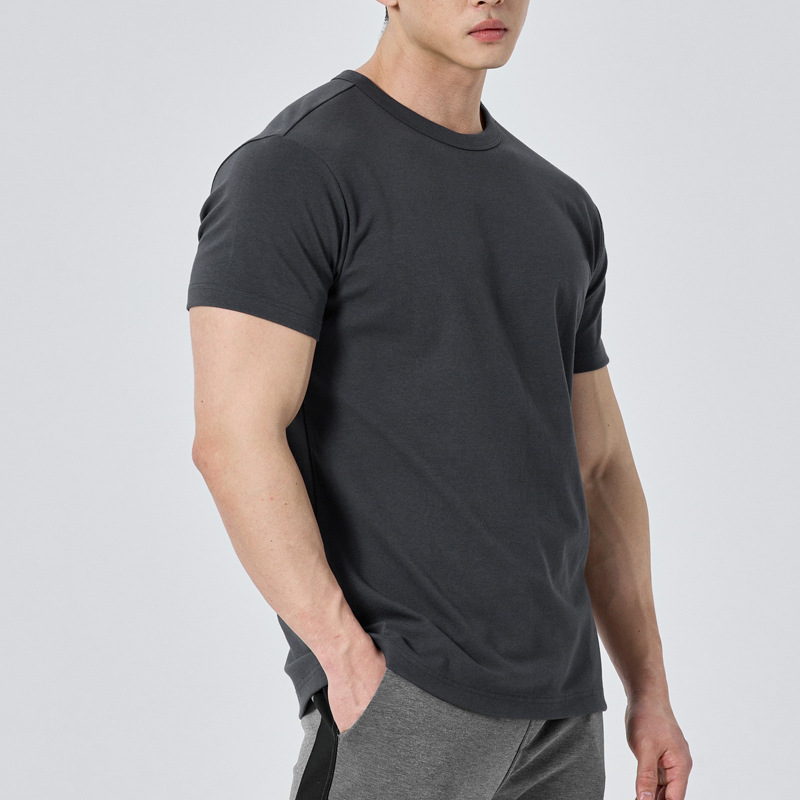 피트니스 스포츠 라운드 넥 남성용 짧은 소매 스트레칭 슬림 핏 슬림 핏 코튼 티셔츠 야외 운동 쿼터 슬리브스토어 가기