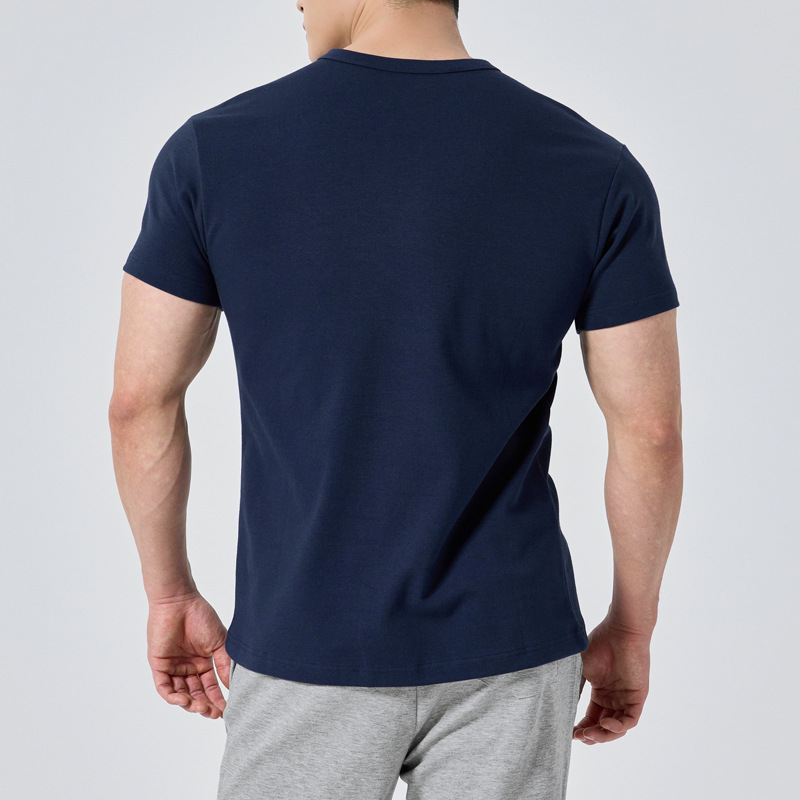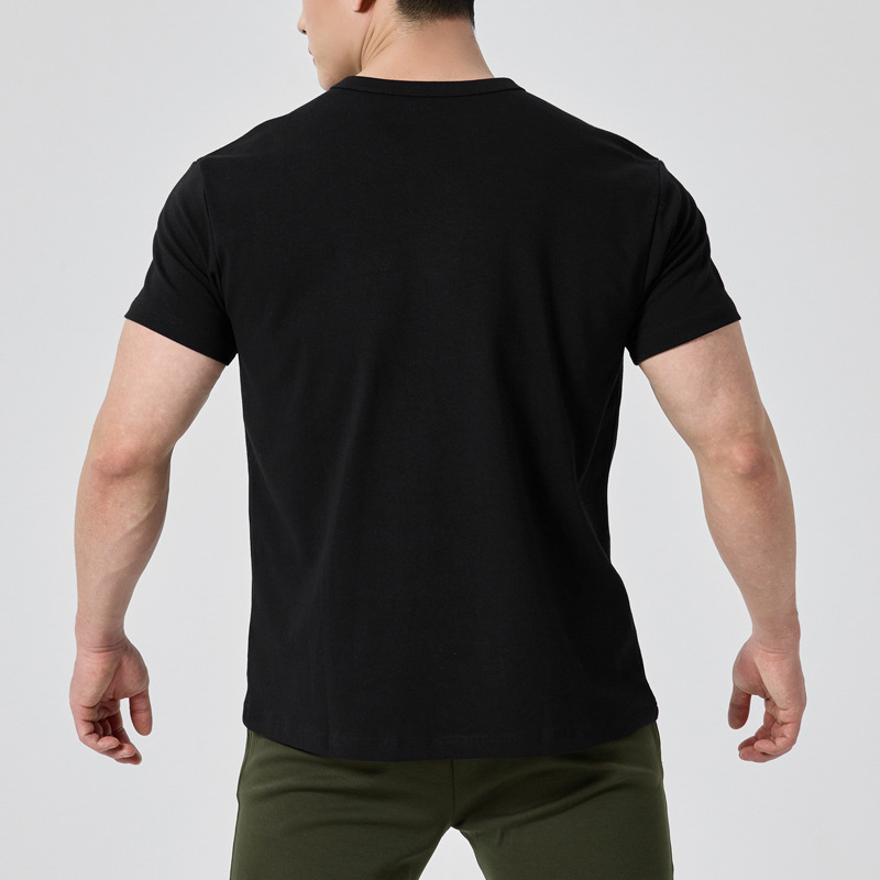 피트니스 스포츠 라운드 넥 남성용 짧은 소매 스트레칭 슬림 핏 슬림 핏 코튼 티셔츠 야외 운동 쿼터 슬리브