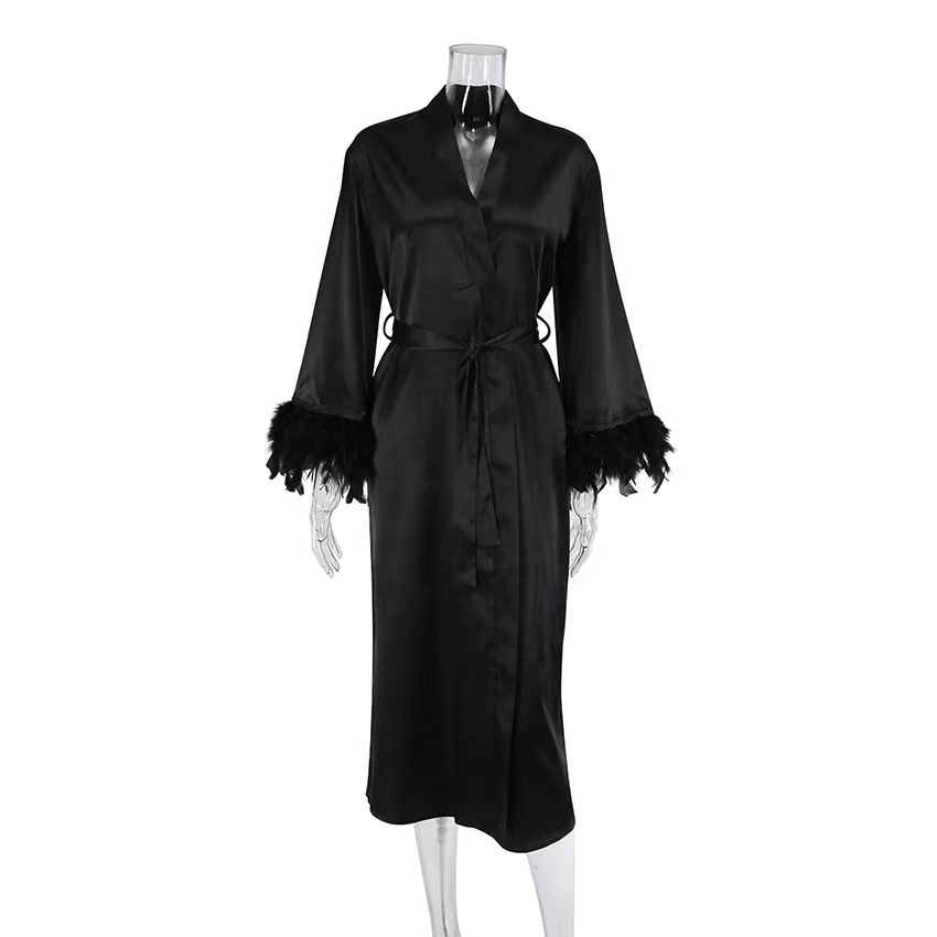 2024 국경 전자 상거래 아마존 V-넥 패션 캐주얼 여성 의류 새로운 단색 깃털 기질 캐주얼 원피스스토어 가기
