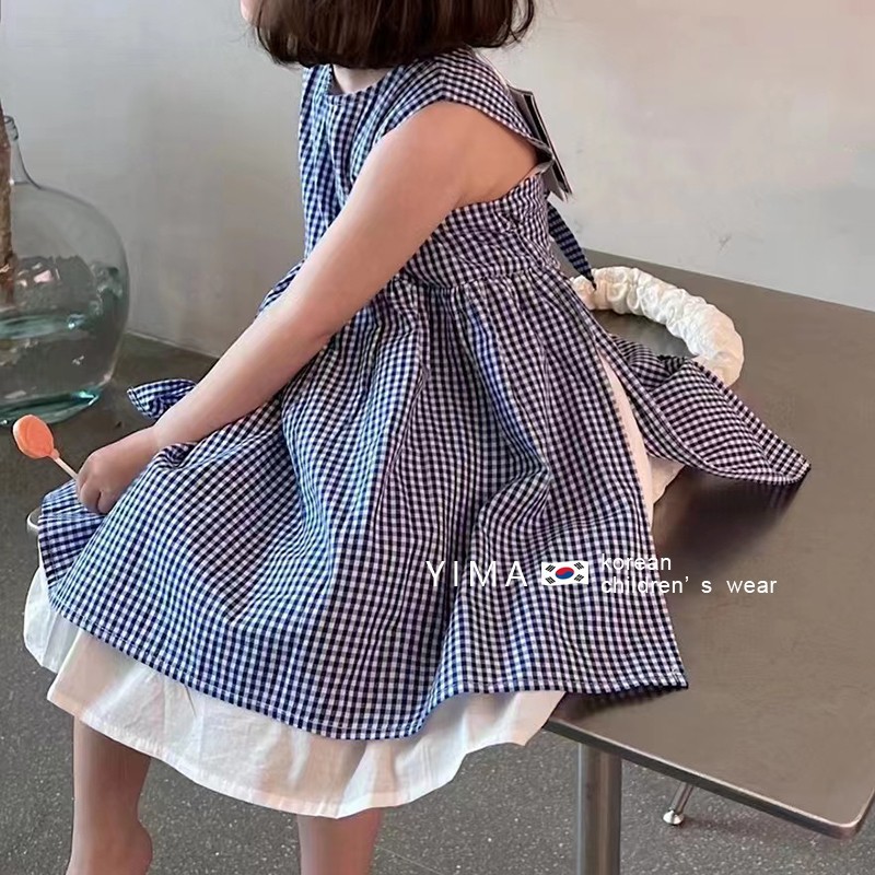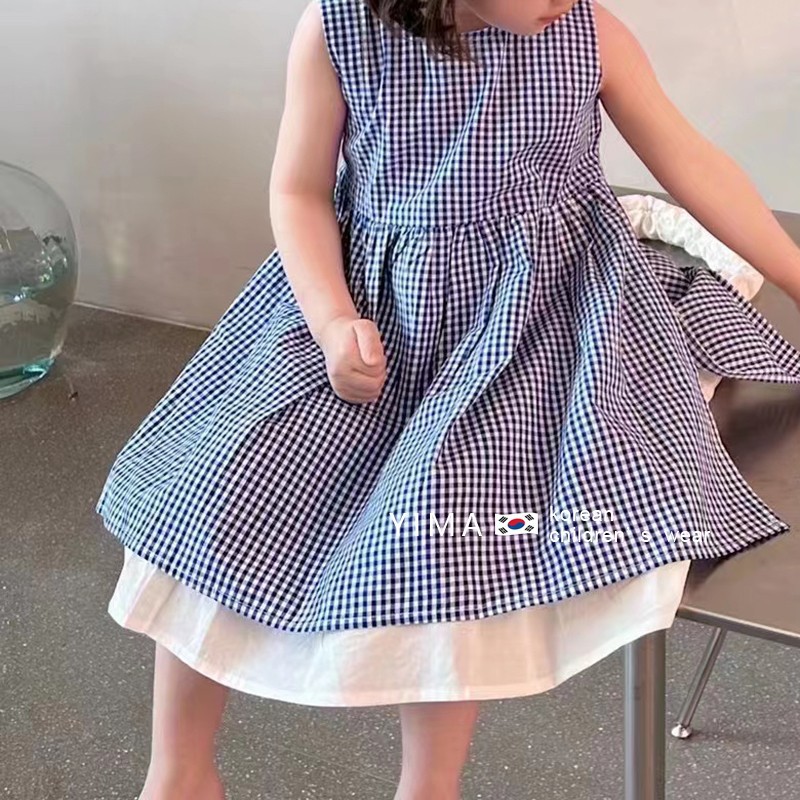 핑크 하우스 한국 아동복 2024 여름 소녀 서양식 체크 무늬 원피스 조끼 치마 어린이 귀여운 치마스토어 가기