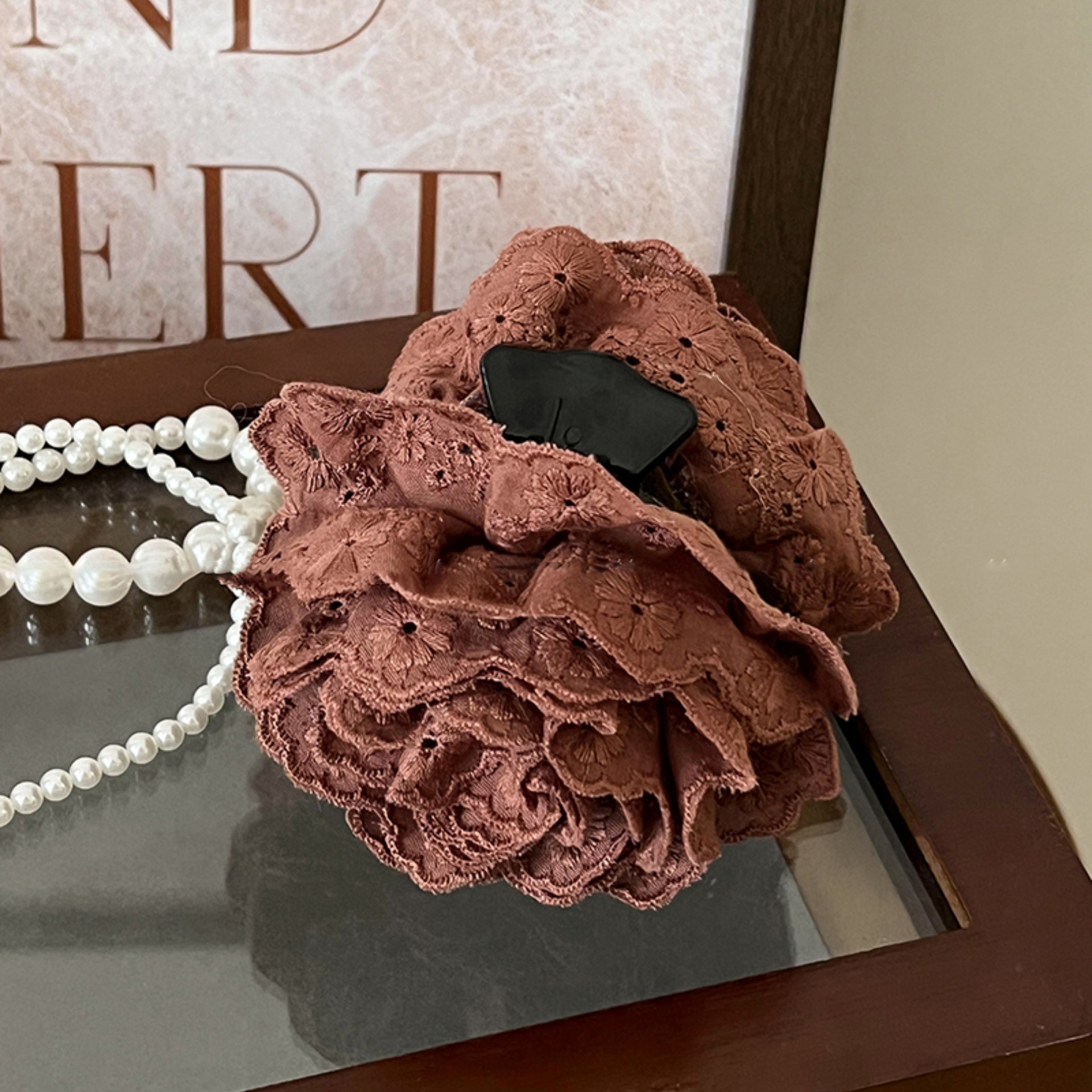 한국식 인터넷 인기 카로 로즈 그랩 클립 여성 2025 신식 꽃 상어 클립 고급 센스 헤어 클립 헤드웨어