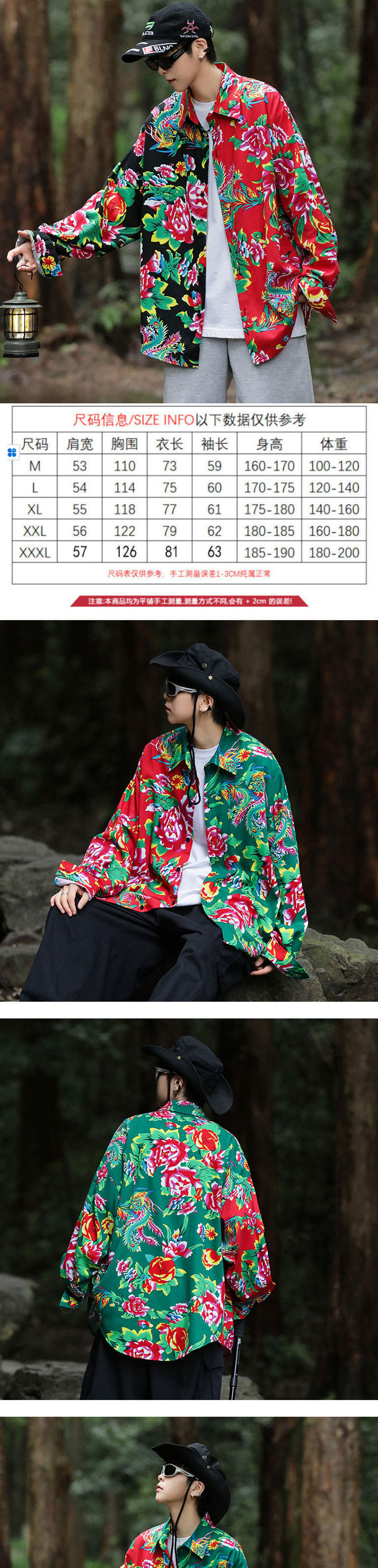 PC203 남성 캐주얼 북동부 대형 꽃 스플 라이스 긴팔 셔츠 재킷 남성과 여성의 느슨한 인치 옷 Hanfu 의상스토어 가기