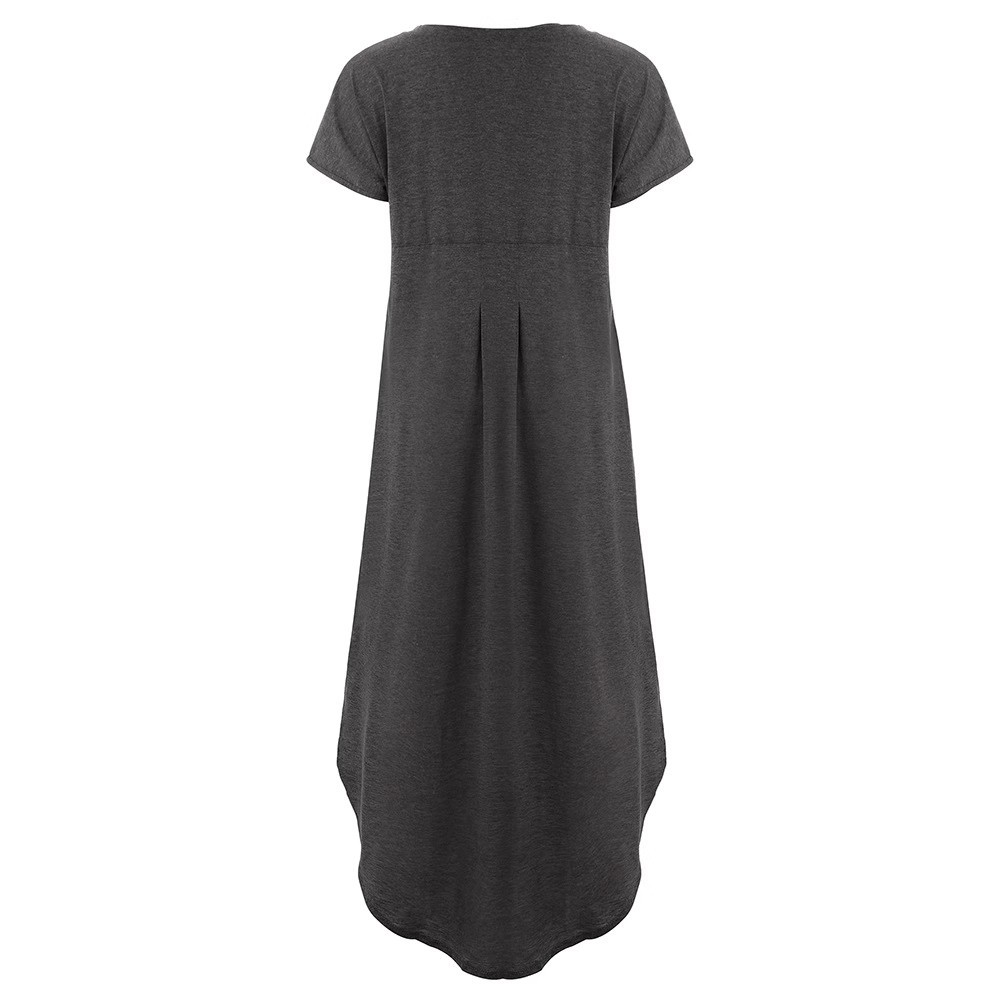 2024 AliExpress 아마존 유럽과 미국의 단색 스티칭 짧은 소매 V-neck 스플릿 큰 스윙 원피스 원피스 재고